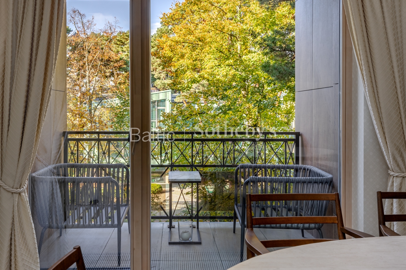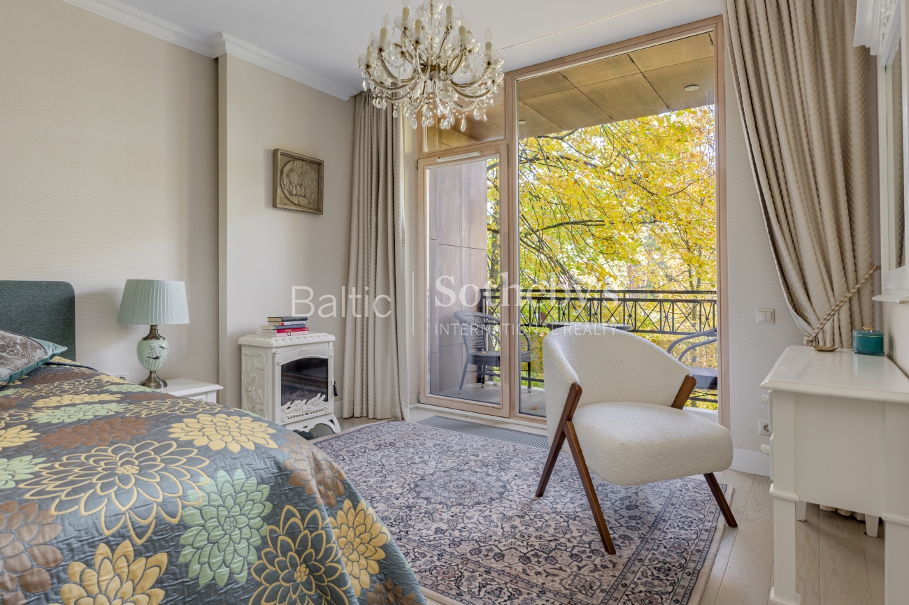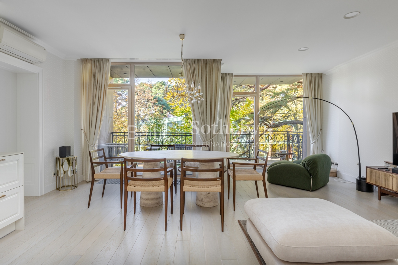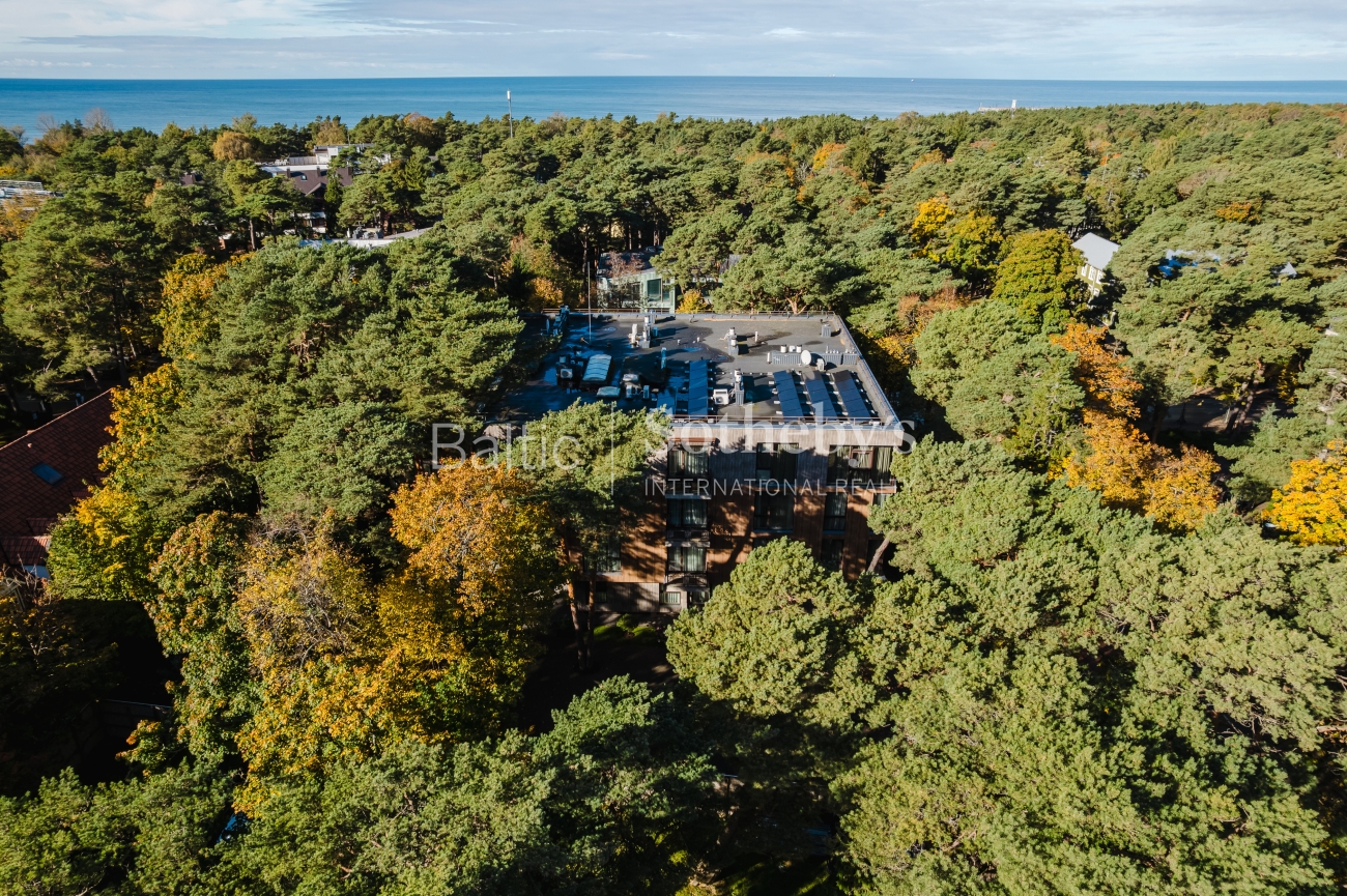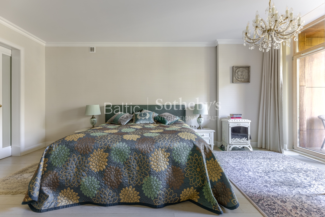 The modern interior of the apartment stands out for its stunning views — from every window, you can enjoy mature pine trees and the refreshing coastal air. Natural sunlight fills the space throughout the day, creating a warm and inviting atmosphere. The apartment features two separate bedrooms, a children’s room, and two bathrooms.