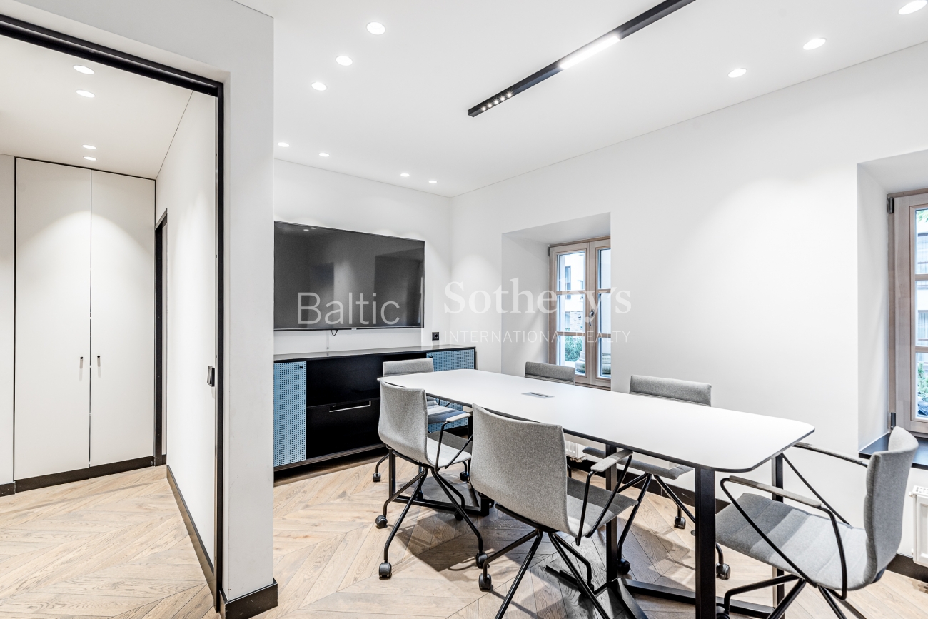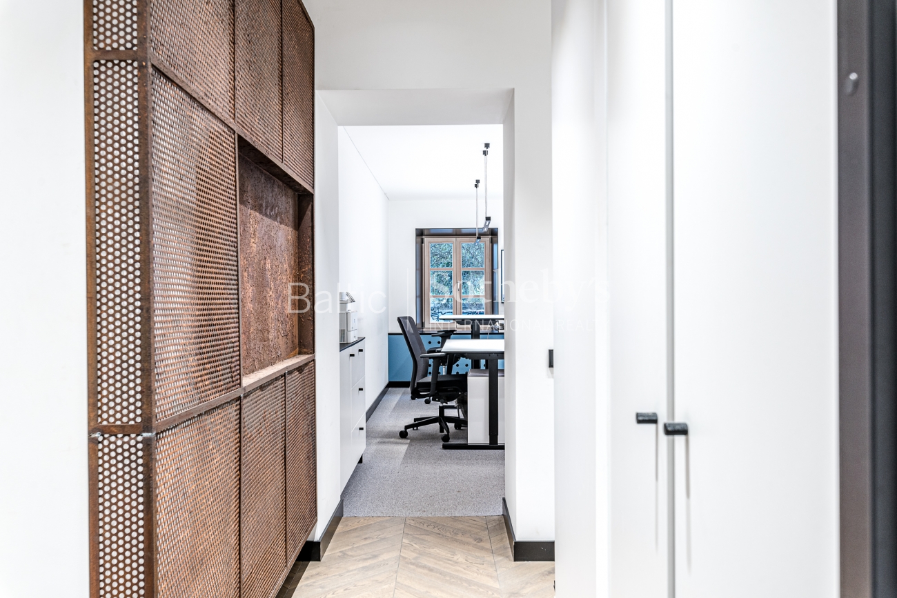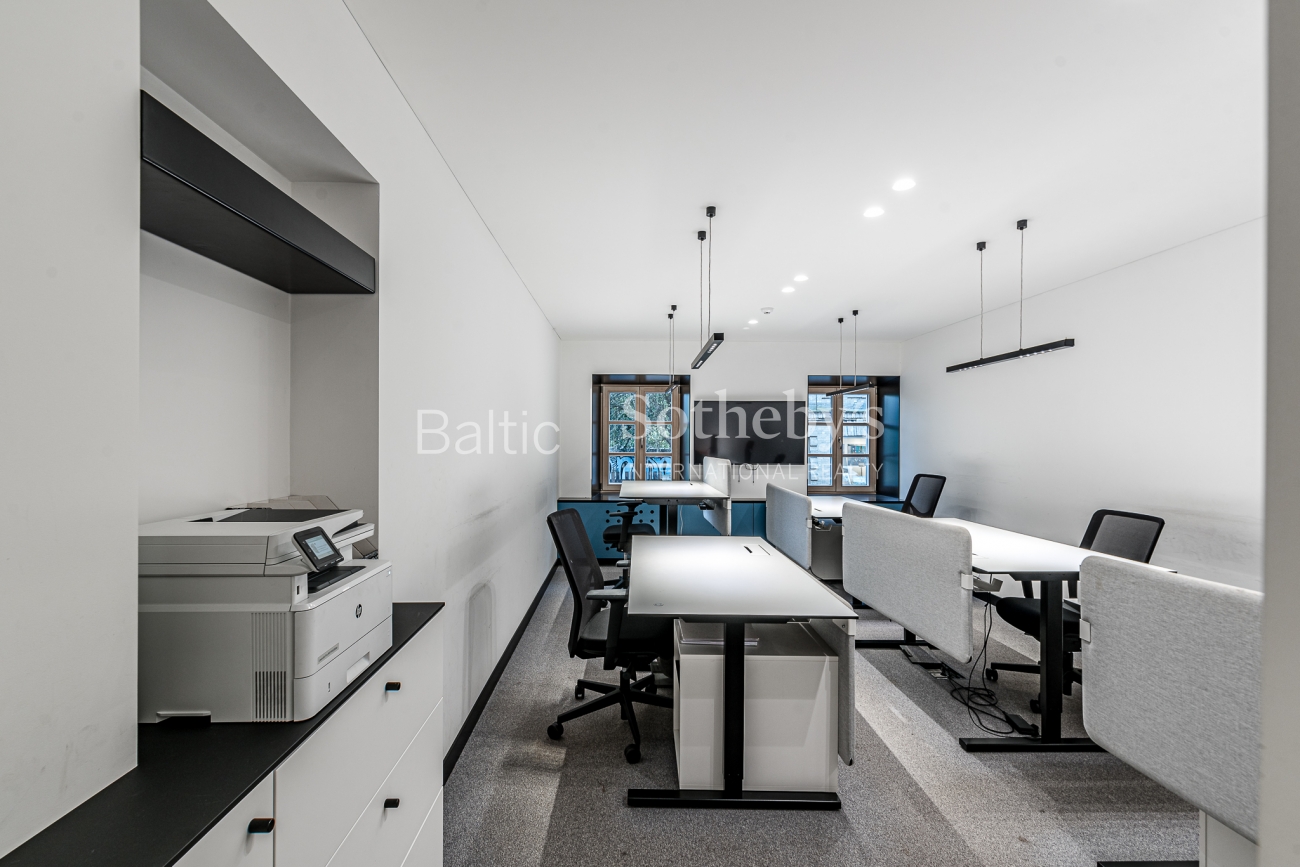 You can enter the premises through a separate entry in the closed courtyard on the first floor. The modern office is divided into three working spaces: the main space with five ergonomic workstations, a conference room and a relaxation/rest area. You will also find a kitchenette and a sanitary unit. The windows overview the street and the closed cosy courtyard, therefore, sufficient natural light is ensured in the premises.