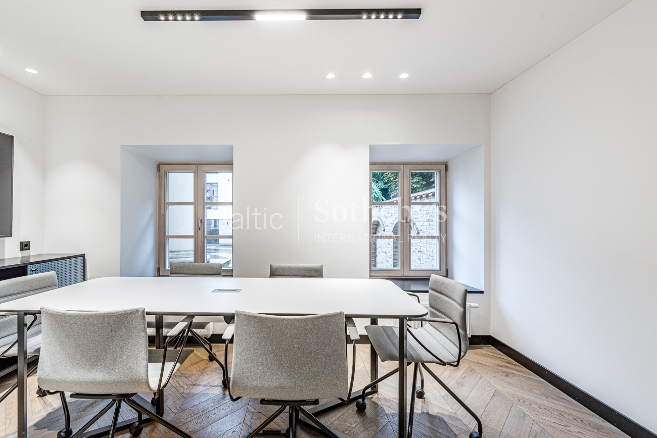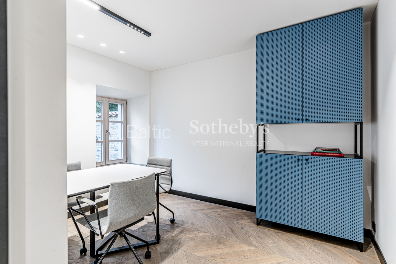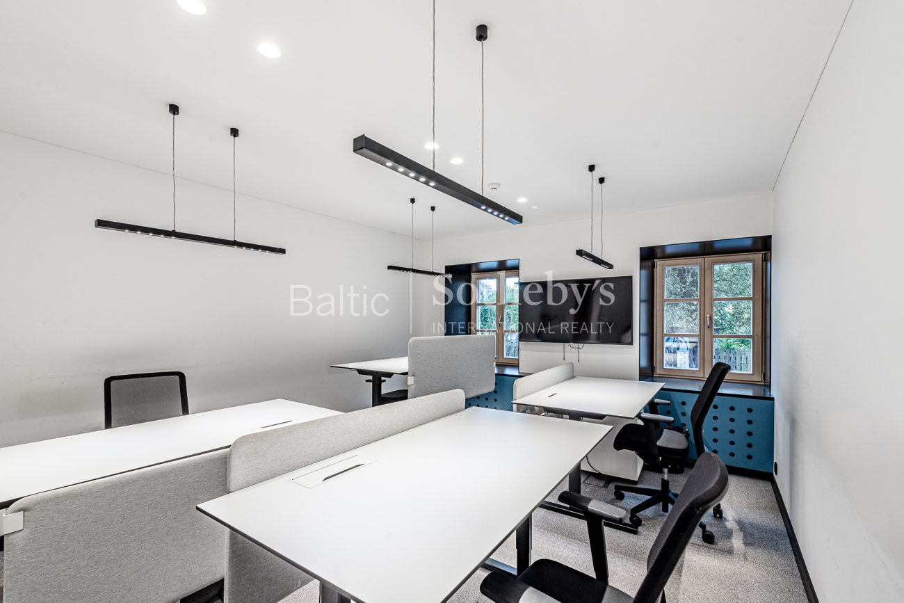 You can enter the premises through a separate entry in the closed courtyard on the first floor. The modern office is divided into three working spaces: the main space with five ergonomic workstations, a conference room and a relaxation/rest area. You will also find a kitchenette and a sanitary unit. The windows overview the street and the closed cosy courtyard, therefore, sufficient natural light is ensured in the premises.