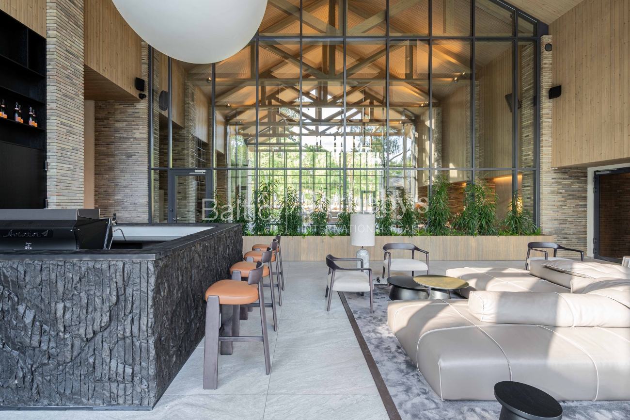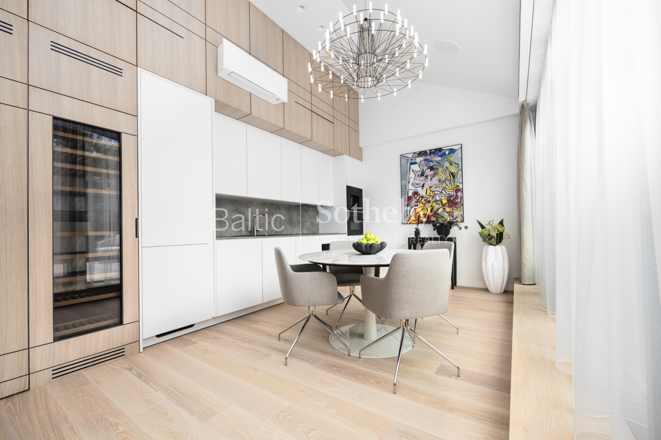 The kitchen is fully integrated and thoughtfully designed, featuring high-quality built-in appliances and refined finishes that balance functionality with understated aesthetics. Climate comfort is ensured by an efficient air-conditioning system, while discreet integrated audio enhances the atmosphere without interrupting the clean architectural lines.