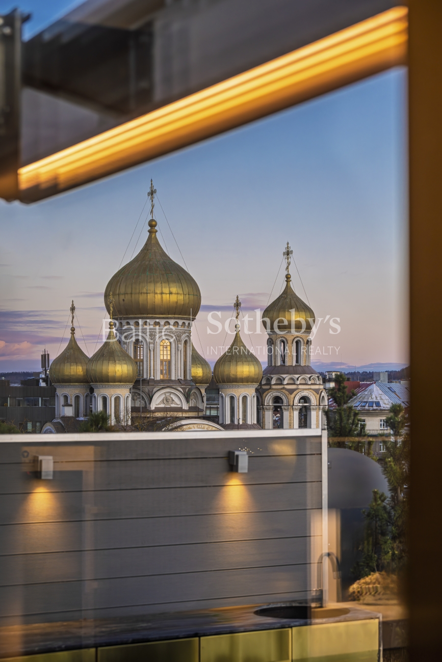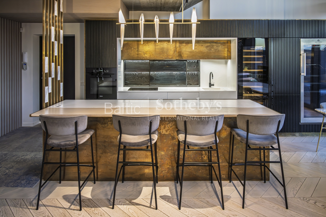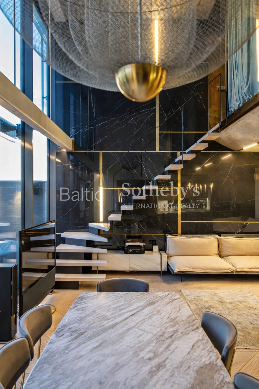 A rare opportunity to acquire penthouse-style apartments featuring two terraces and a balcony overlooking an impressive panorama of the Old Town. The apartment stands out for its modern interior and remarkable sense of space, highlighted by large floor-to-ceiling windows and a living room ceiling height reaching up to 5.5 meters. The property has been finished to a high standard with comfort in mind: underfloor heating, aluminum windows, and a fully installed air-conditioning system. Decorative materials dominate the interior design – copper panels and natural wood parquet flooring – adding both character and warmth to the space.