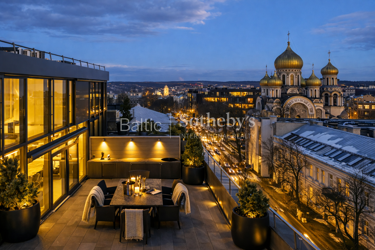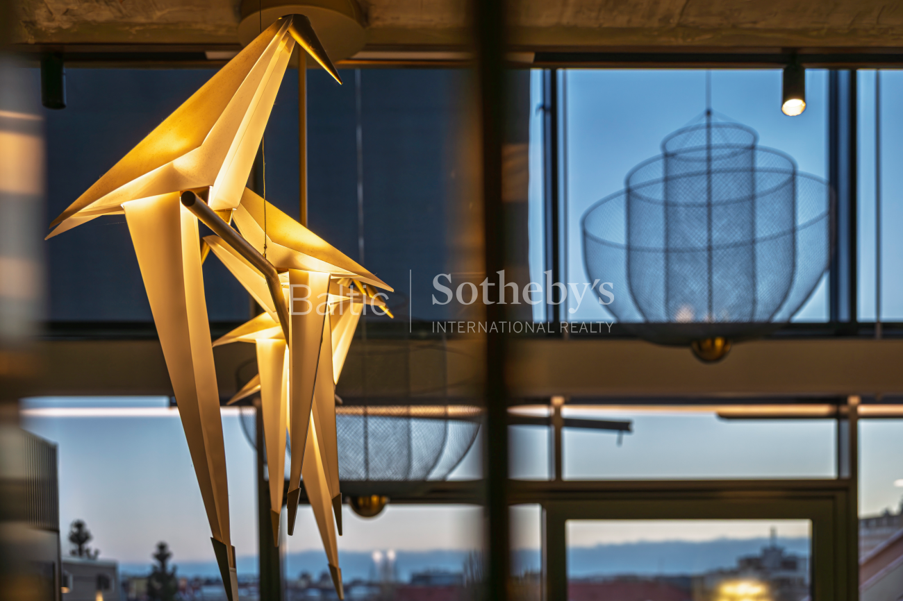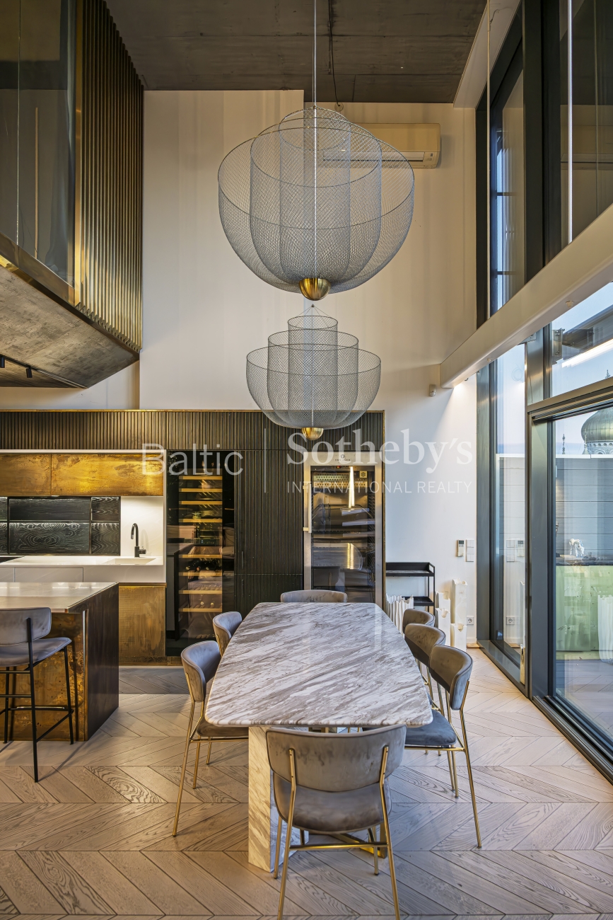 A rare opportunity to acquire penthouse-style apartments featuring two terraces and a balcony overlooking an impressive panorama of the Old Town. The apartment stands out for its modern interior and remarkable sense of space, highlighted by large floor-to-ceiling windows and a living room ceiling height reaching up to 5.5 meters. The property has been finished to a high standard with comfort in mind: underfloor heating, aluminum windows, and a fully installed air-conditioning system. Decorative materials dominate the interior design – copper panels and natural wood parquet flooring – adding both character and warmth to the space.