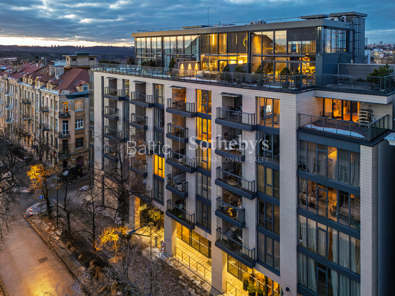 The building is located at the intersection of the Naujamiestis and Old Town districts. From here, both green spaces and the modern restaurants of Naujamiestis, as well as the historic landmarks of the Old Town, are within easy reach. The newly planned National Concert Hall is just a three-minute walk away, while Gediminas Avenue can be reached on foot in only ten minutes. This location allows you to enjoy the dynamic rhythm of the city while still offering moments of relaxation and retreat. The building’s modern architecture reflects quality and comfort. High ceilings, spacious balconies, and inspiring city panoramas allow you to enjoy urban living at its finest.