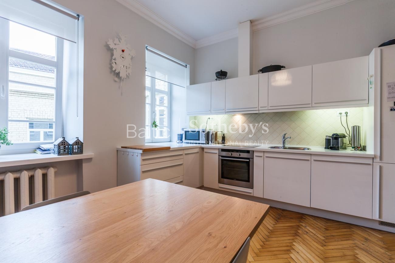 Just a block away from the Cathedral square, in the Old Town of Vilnius, the apartment house is really exceptional with the beautifully renovated staircase. The history of more than one hundred years, high ceilings, spacious rooms, authentic doors and floorings create the atmosphere of exclusivity. On the first floor of the apartment you find spacious living room suitable for hosting many guests, guest bedroom, fully equiped kitchen and bathroom. On the second floor there are three bedrooms, bathroom with sauna, convenient laundry room and TV space with entrance to terrace where you can enjoy views of Vilnius. The third floor is excellent for a studio or library. This place is perfect for busy people as well as for families, as Bernardinu park is nearby and romantic streets of the Old Town are right here. There is also one parking place in the inner yard. The apartment has it all! Don't spend time in the traffic jams – spend it with your loved ones! The Real estate - worth your attention.