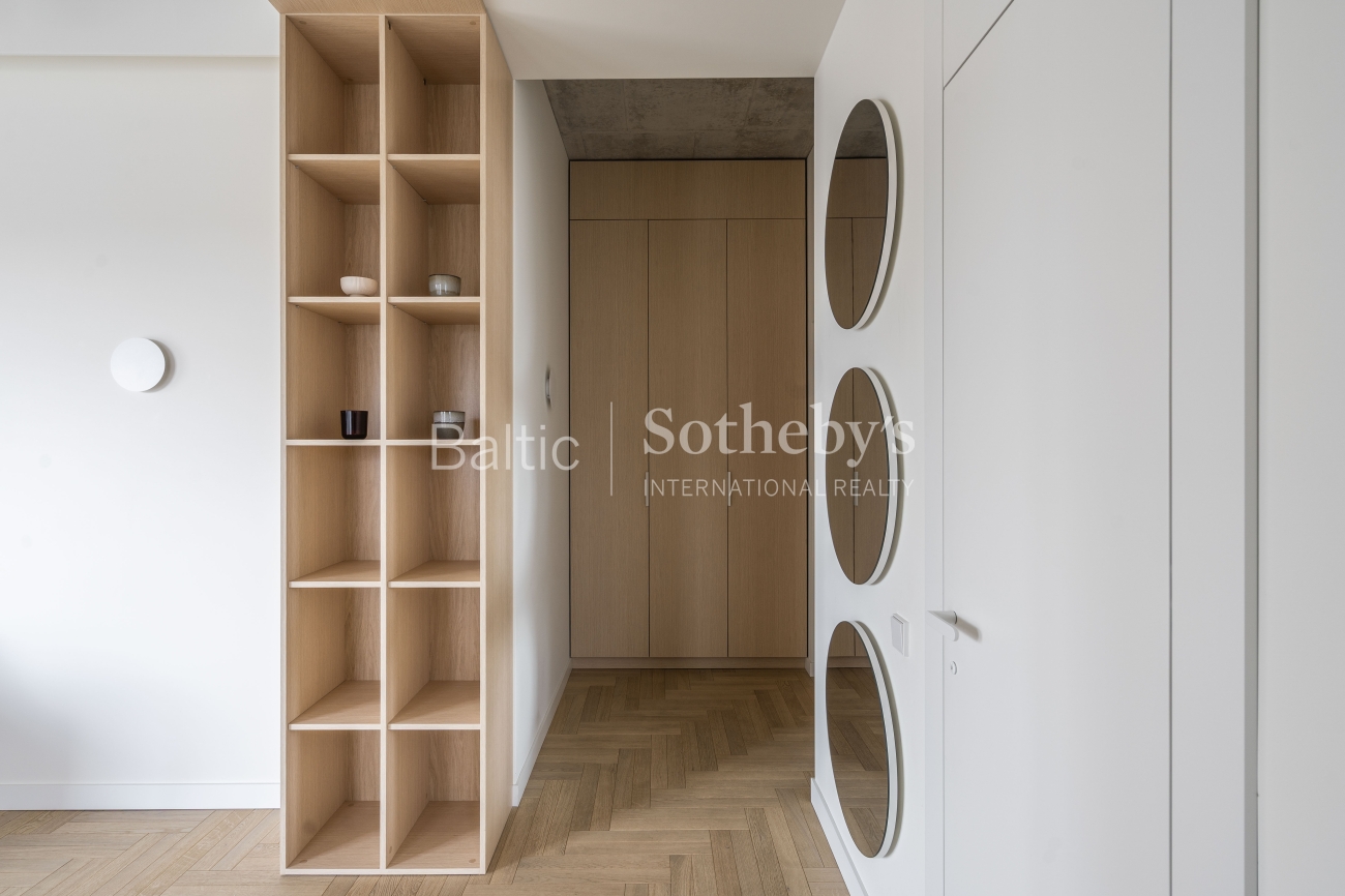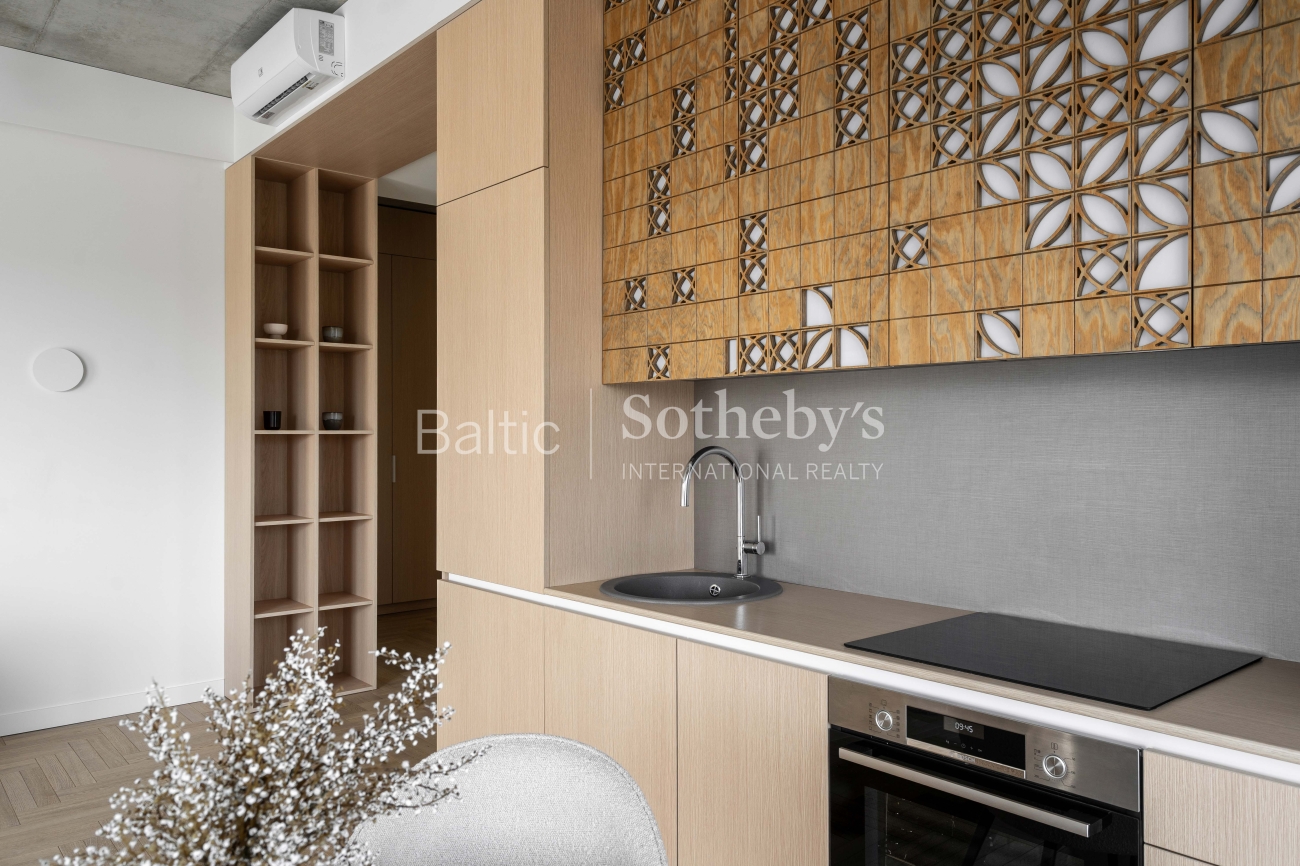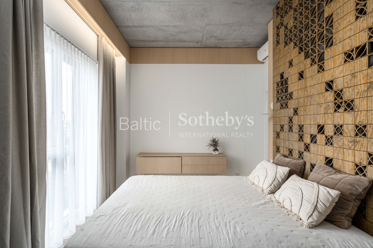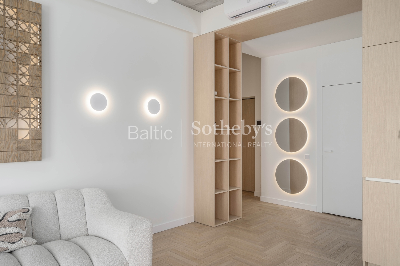 For sale: a designer-furnished, modern two-room apartment in the prestigious “Žvėryno Lapės” project. This is a spacious and bright home where high-quality materials, contemporary design, and functionality harmoniously blend. High ceilings enhance the sense of space, while natural tones and carefully selected furniture create a cozy atmosphere. Large wooden windows provide an abundance of natural light, and access to a spacious 10 sq. m balcony allows for fresh air and tranquility.