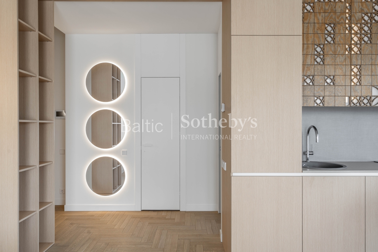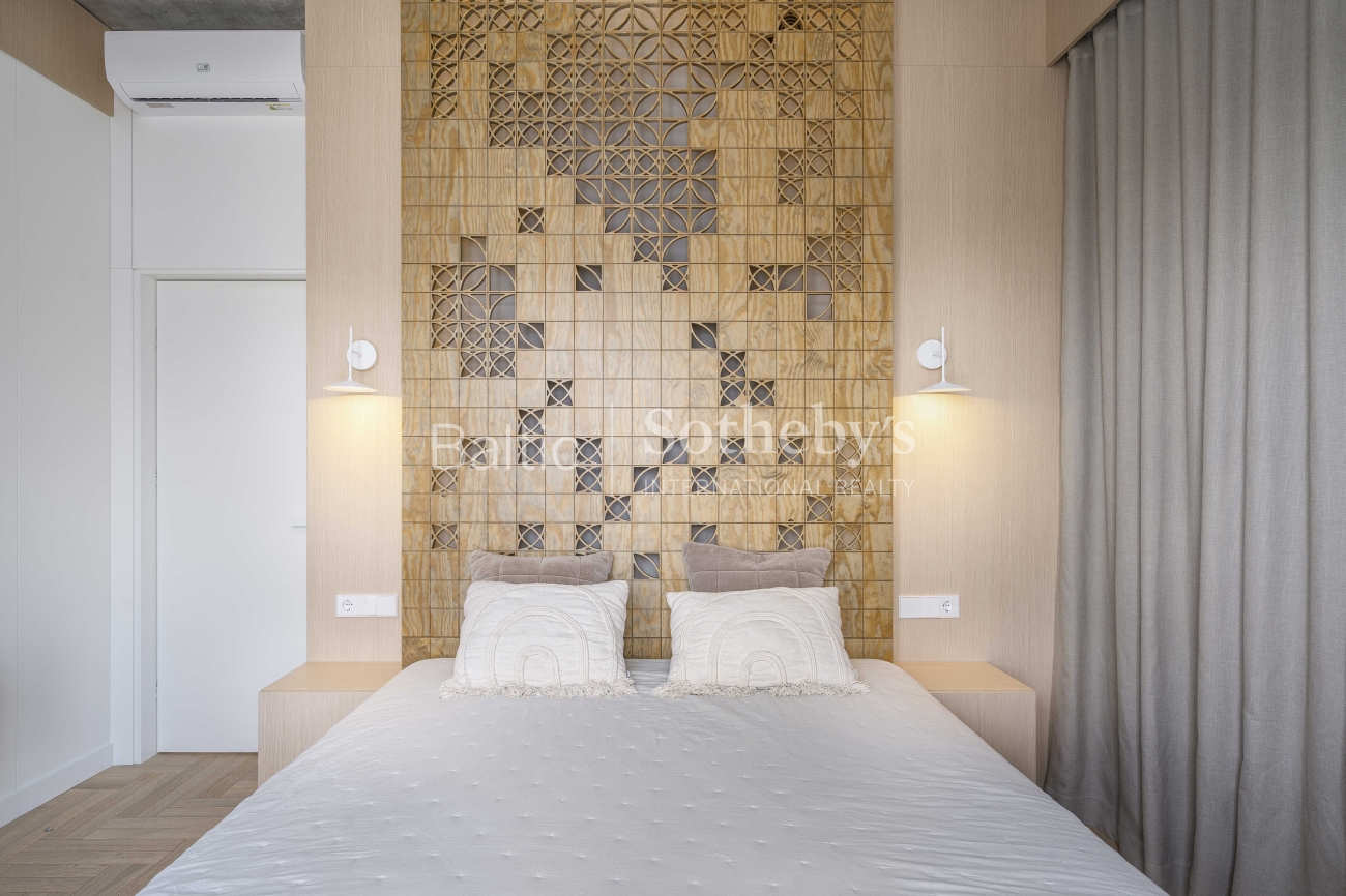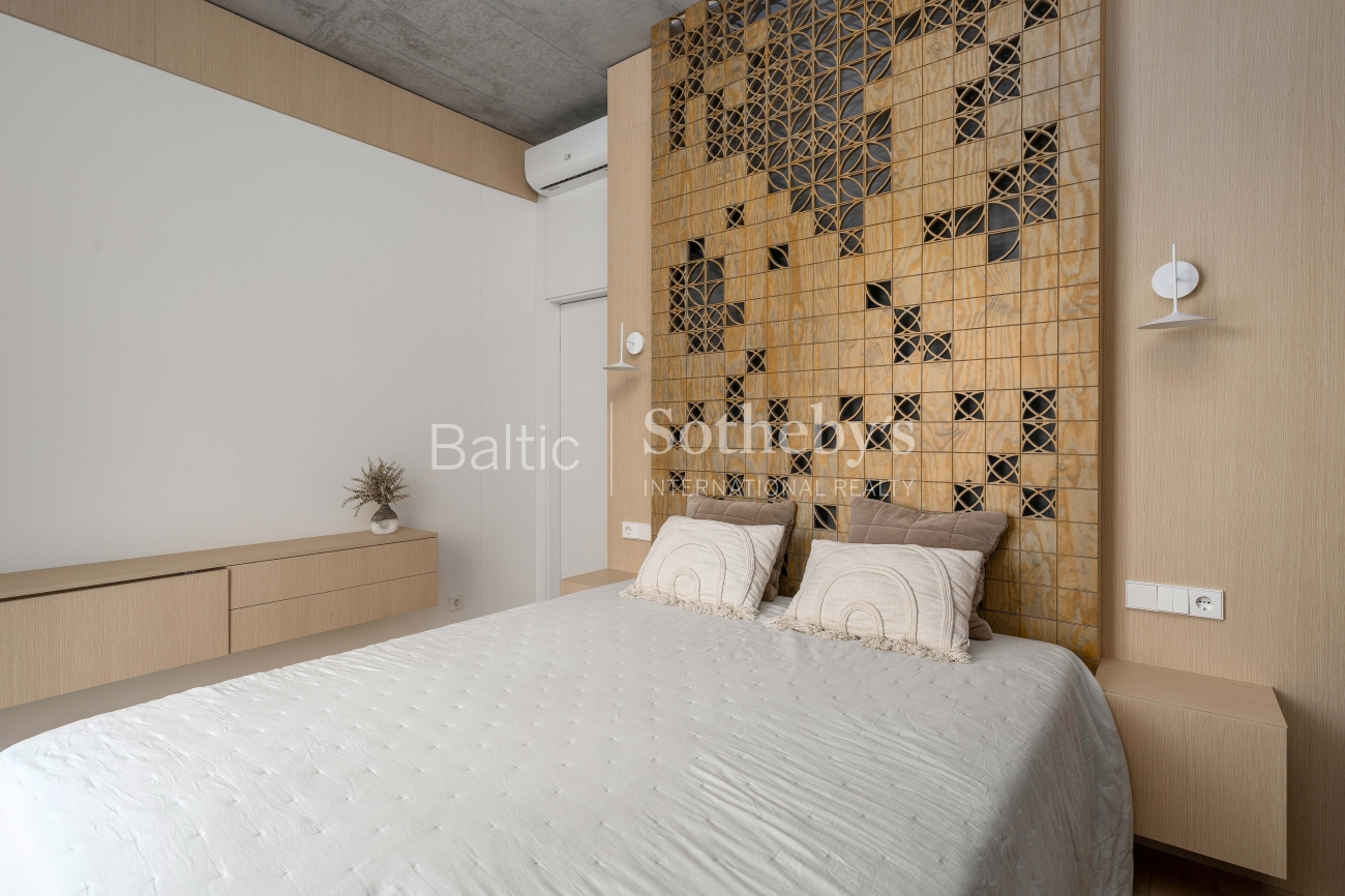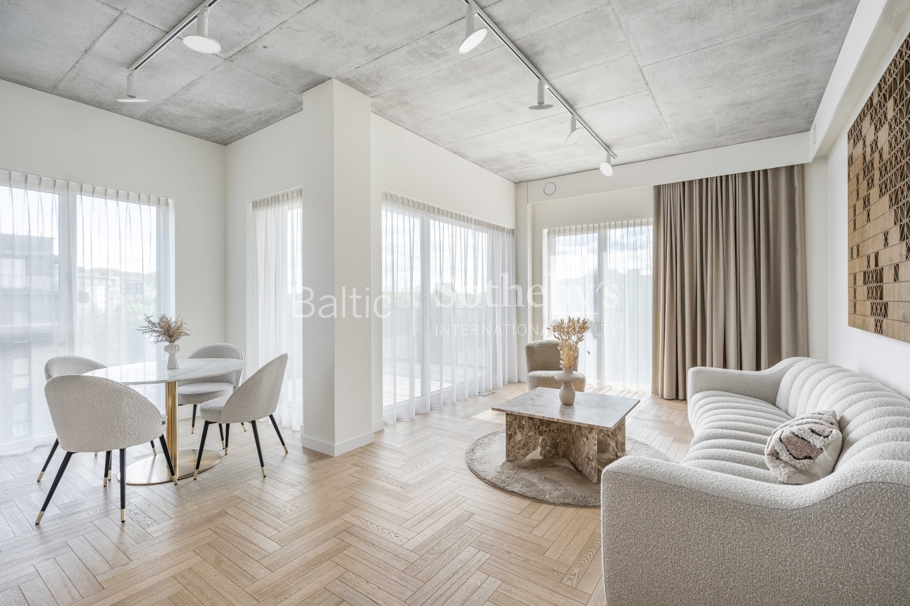 For sale: a designer-furnished, modern two-room apartment in the prestigious “Žvėryno Lapės” project. This is a spacious and bright home where high-quality materials, contemporary design, and functionality harmoniously blend. High ceilings enhance the sense of space, while natural tones and carefully selected furniture create a cozy atmosphere. Large wooden windows provide an abundance of natural light, and access to a spacious 10 sq. m balcony allows for fresh air and tranquility.