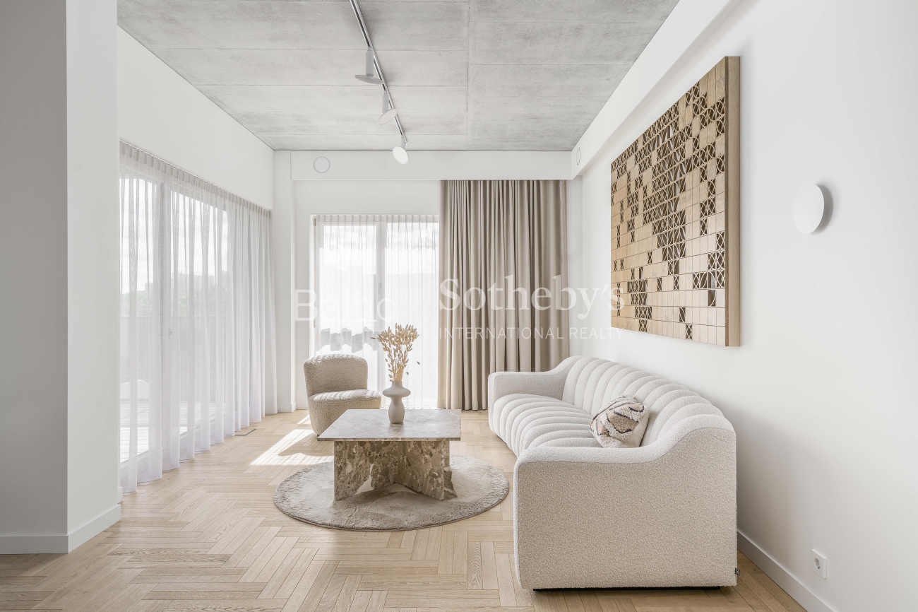 Only top-quality materials and household appliances were used in the apartment’s design. The property features underfloor heating with individual thermostats in each room, air conditioning units in the living room and bedroom, and an individually regulated recuperation system that ensures a constant supply of fresh air. The A+ energy efficiency rating guarantees low maintenance costs, making this home not only cozy but also economical.