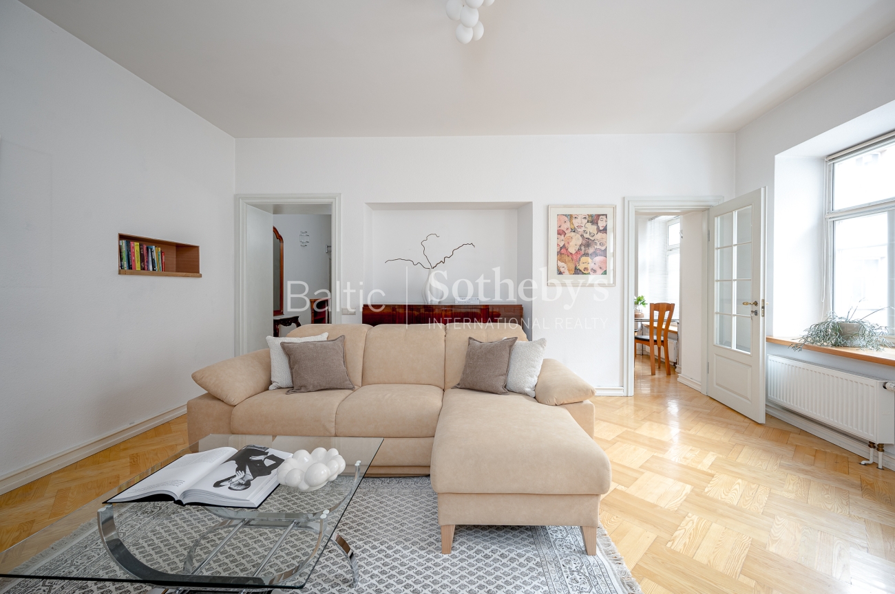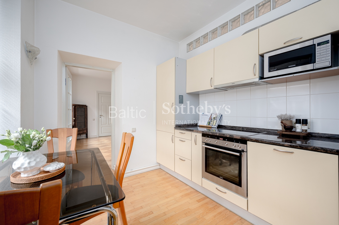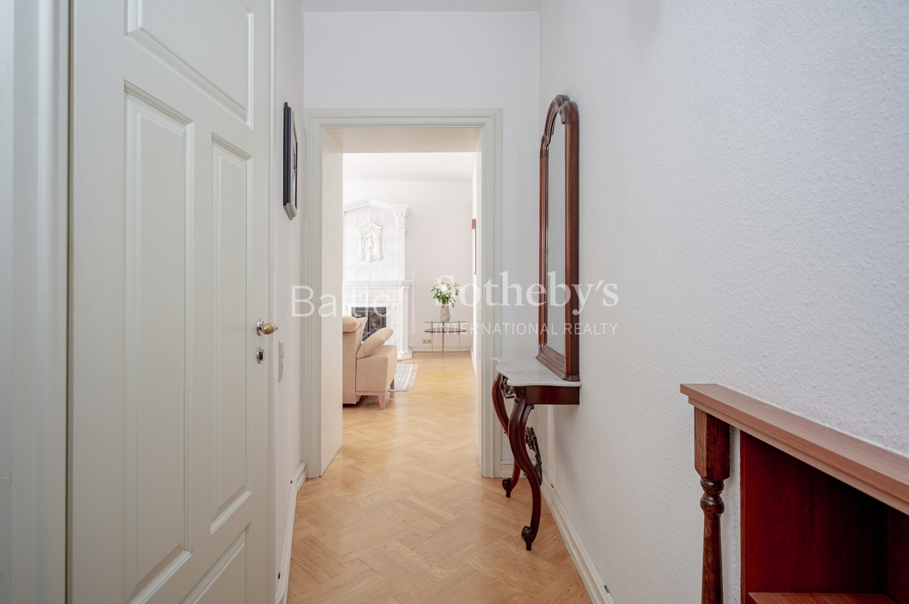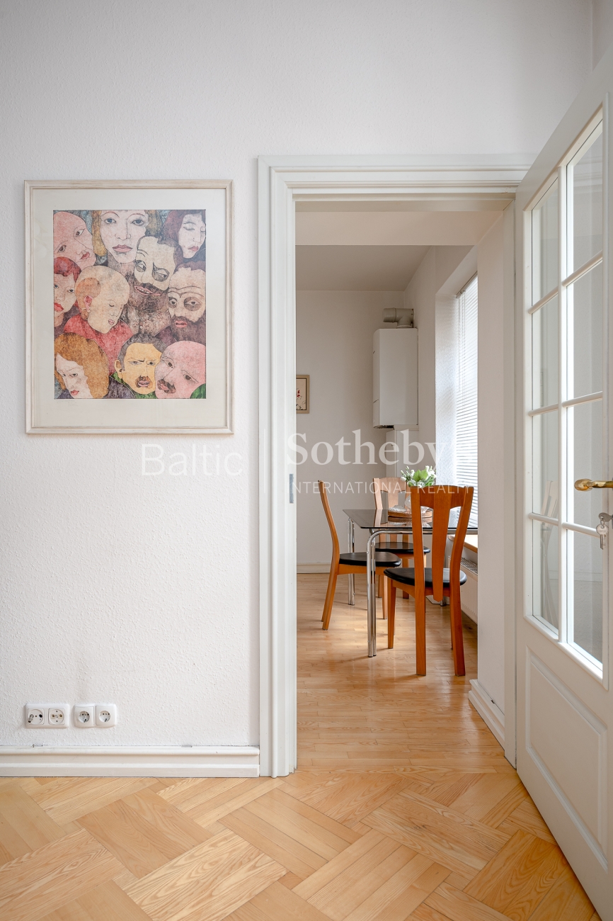 The interior of the apartment is classic, harmoniously in harmony with the historical context of the quarter.