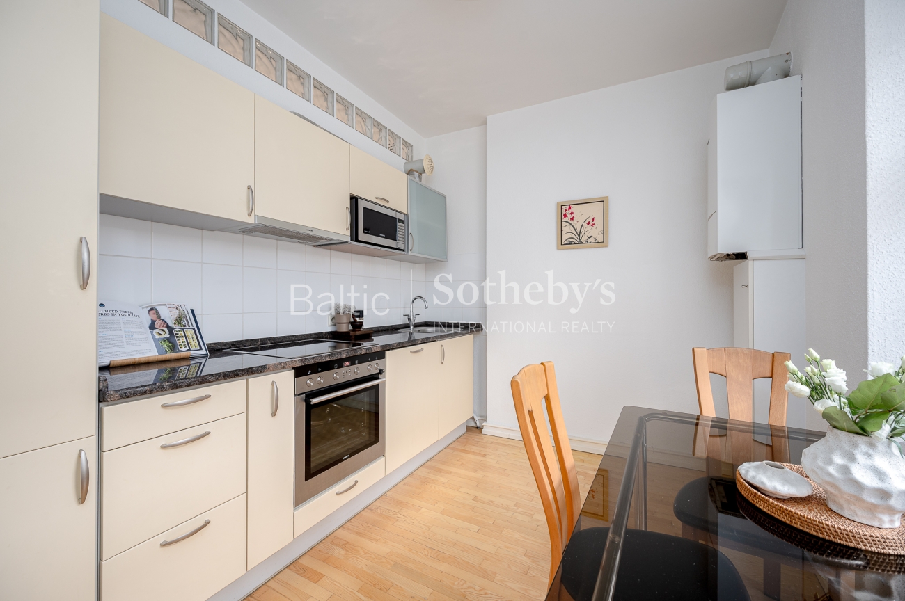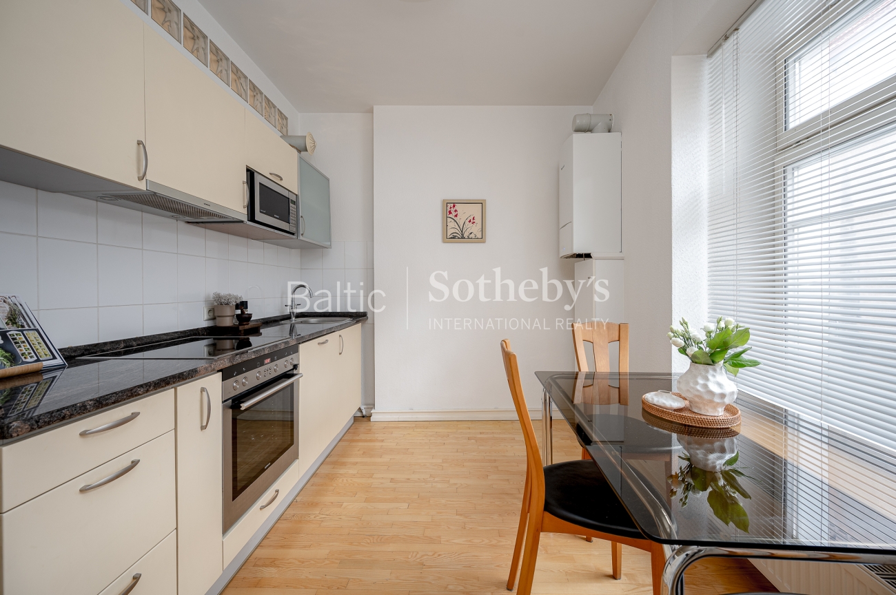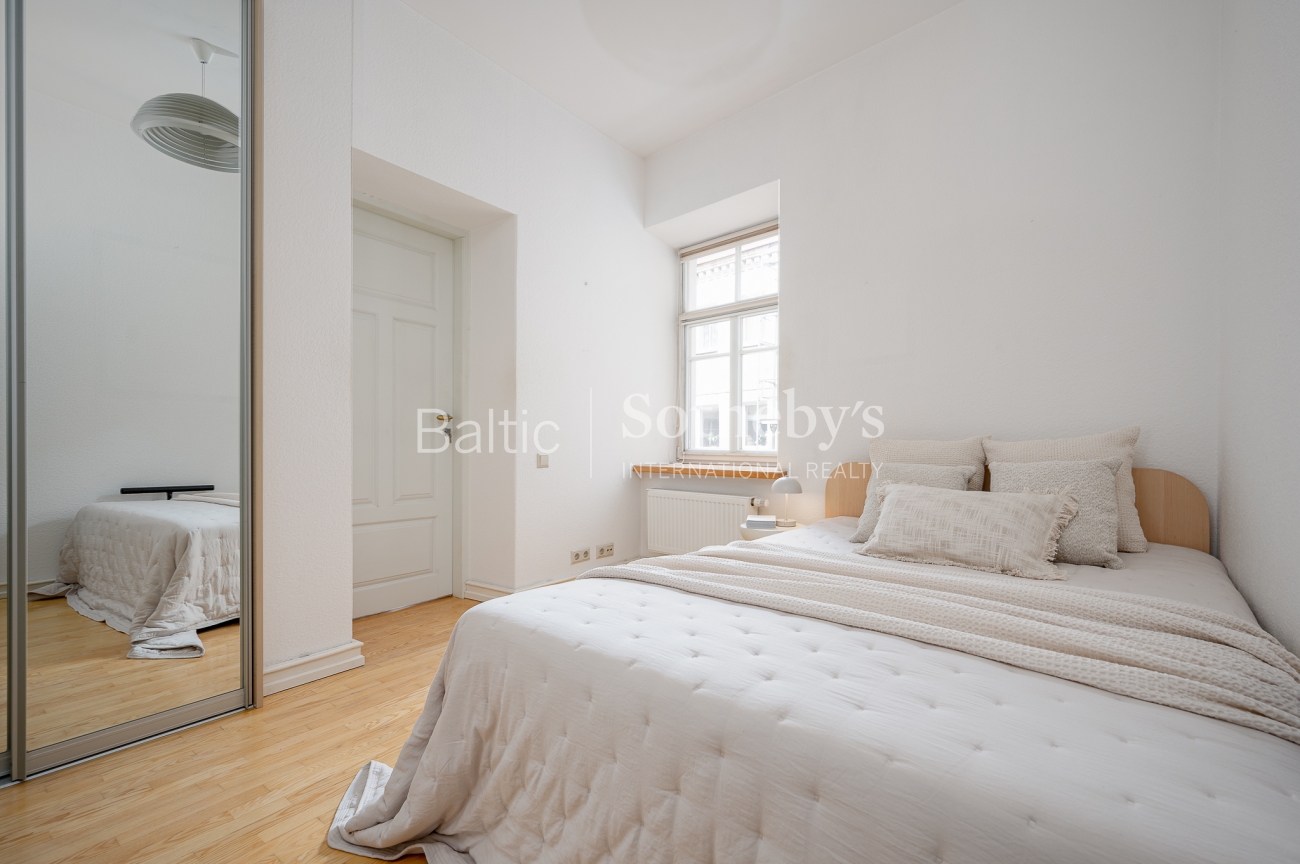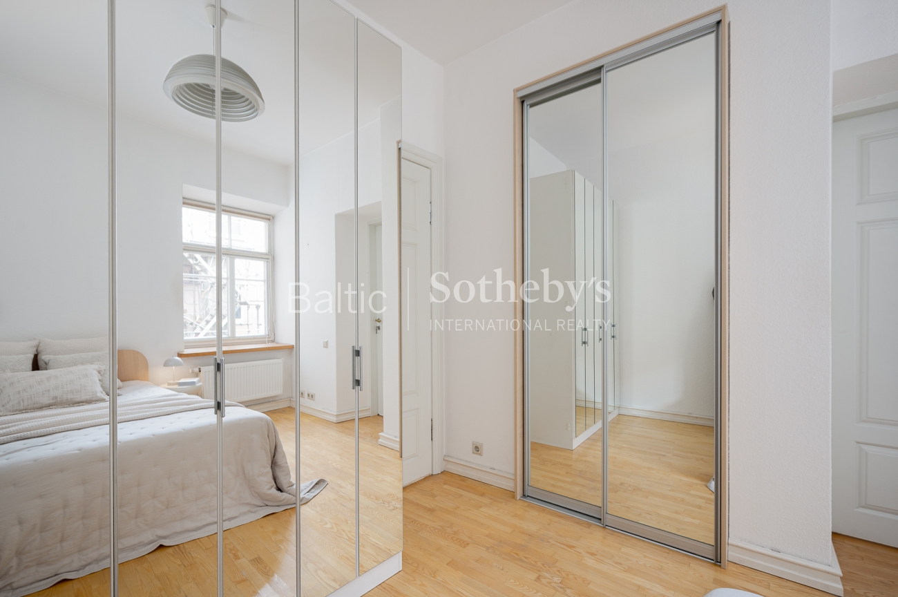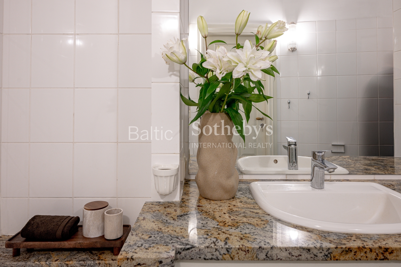 The interior of the apartment is classic, harmoniously in harmony with the historical context of the quarter.