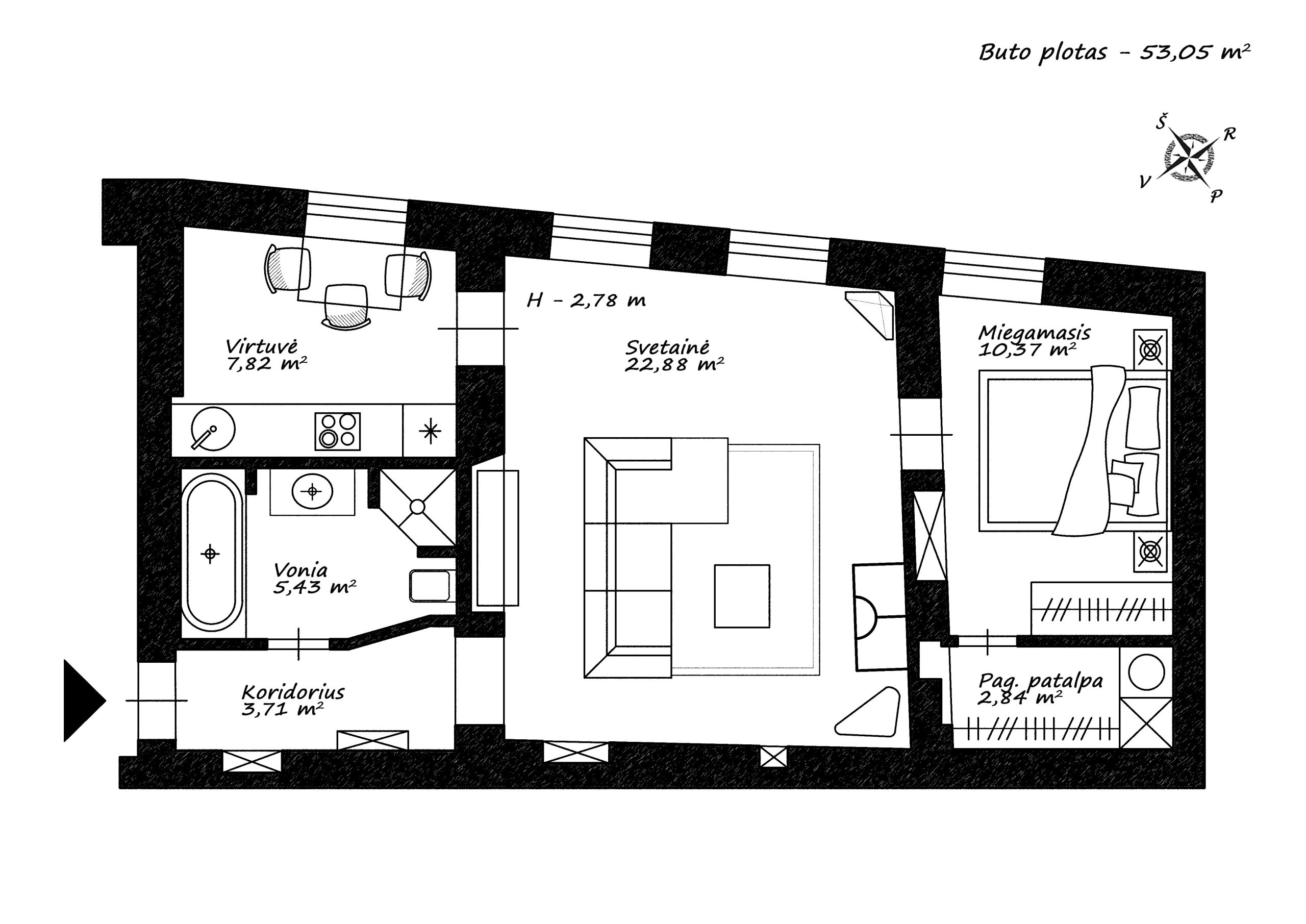 Ceiling height: 2.78 m