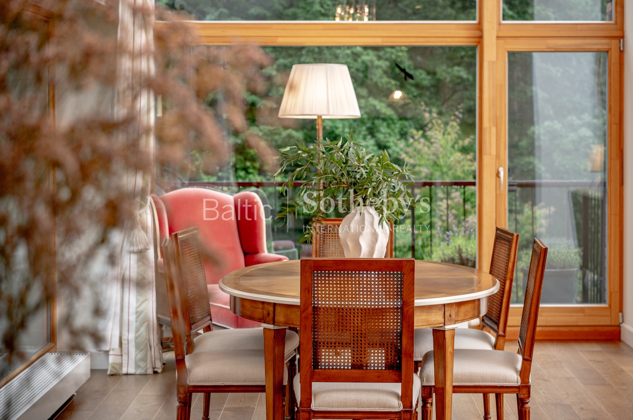 These apartments are located in the prestigious "Verkiai Valley" project, which won the gold medal in the "Product of the Year 2008" competition. This is a closed, safe, 24/7 guarded settlement of eight houses, located in a unique location - Verkiai Regional Park, on a quiet bend of the Neris River.