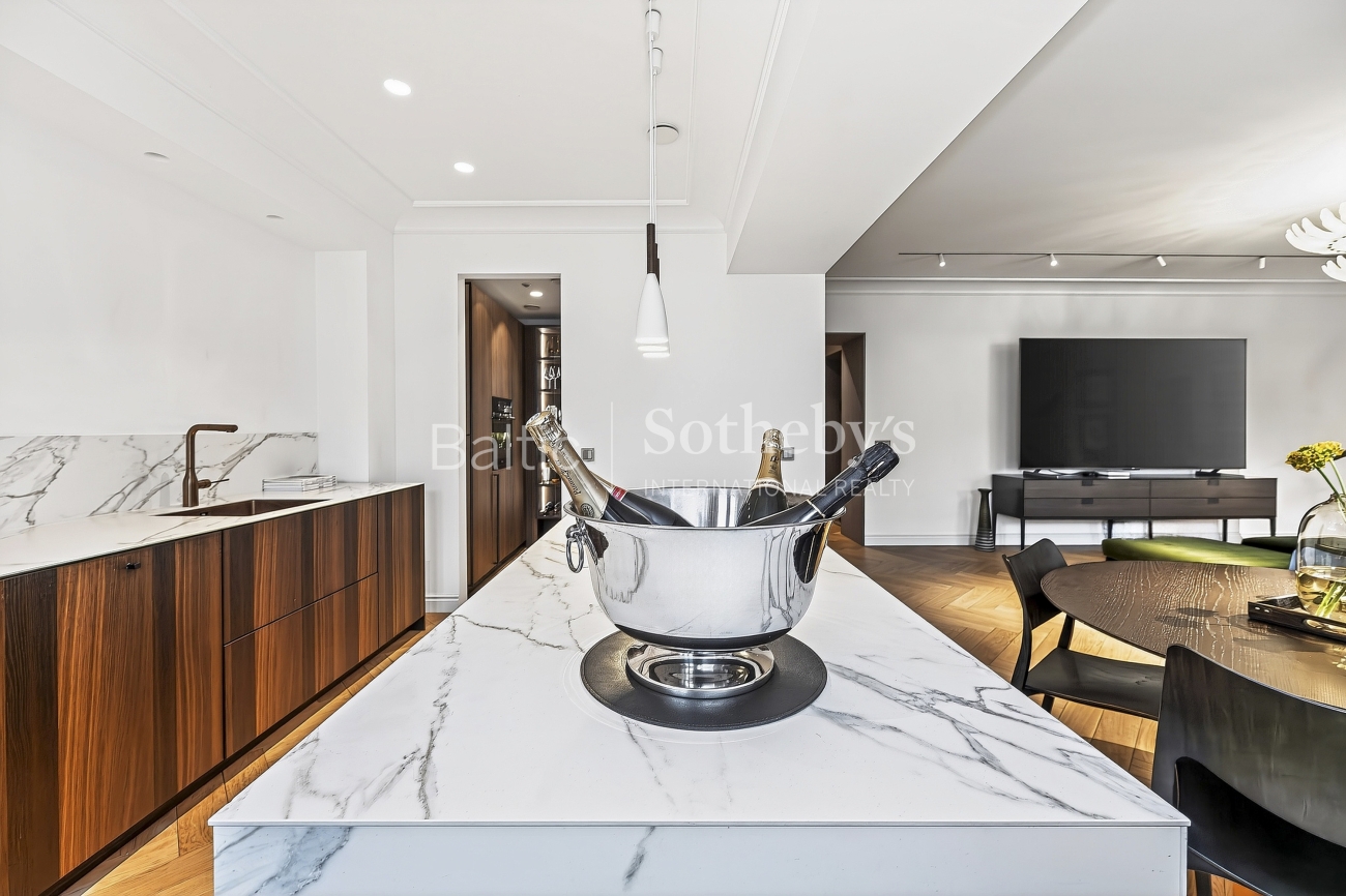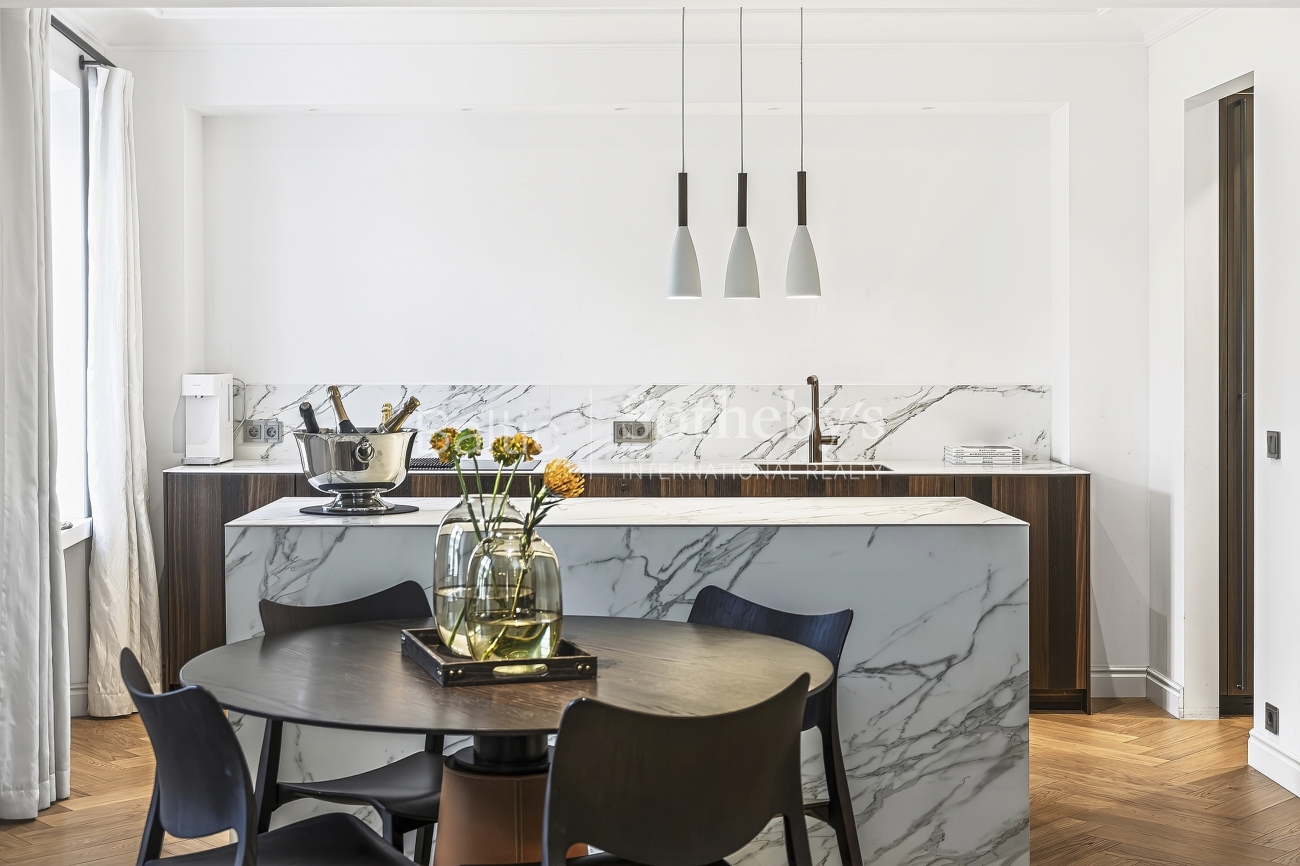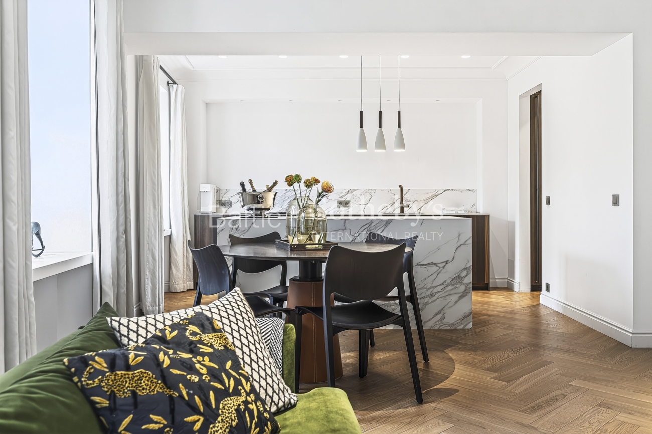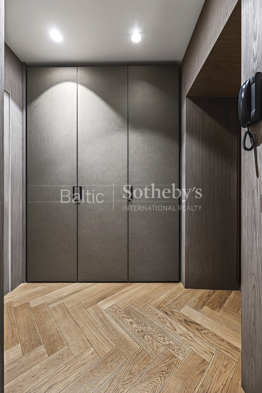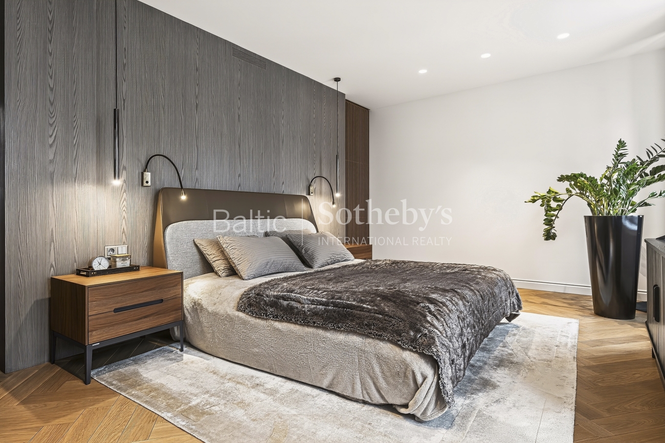 Reflecting the spirit of the Old Town, the apartments are modernly equipped with underfloor heating, a heat recovery ventilation system, new double-glazed wooden windows, and warm oak floors. The luxurious German SieMatic kitchen comes with built-in appliances, an adjacent storage room, and a wine cooler. Italian furniture and lighting, along with other distinctive interior elements, create an elegant and timeless environment. The spacious bedroom features a private bathroom and a large walk-in closet.