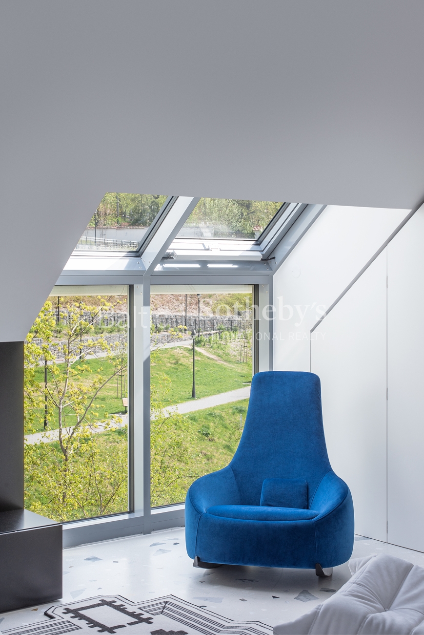 High-end materials and solutions were used throughout: cast concrete floors with stone inlays, carefully selected iconic furniture and designer lighting, and NEFF kitchen appliances. Every detail has been thoughtfully considered to ensure the interior is not only visually striking but also highly functional for everyday living.