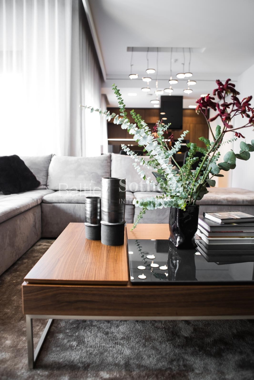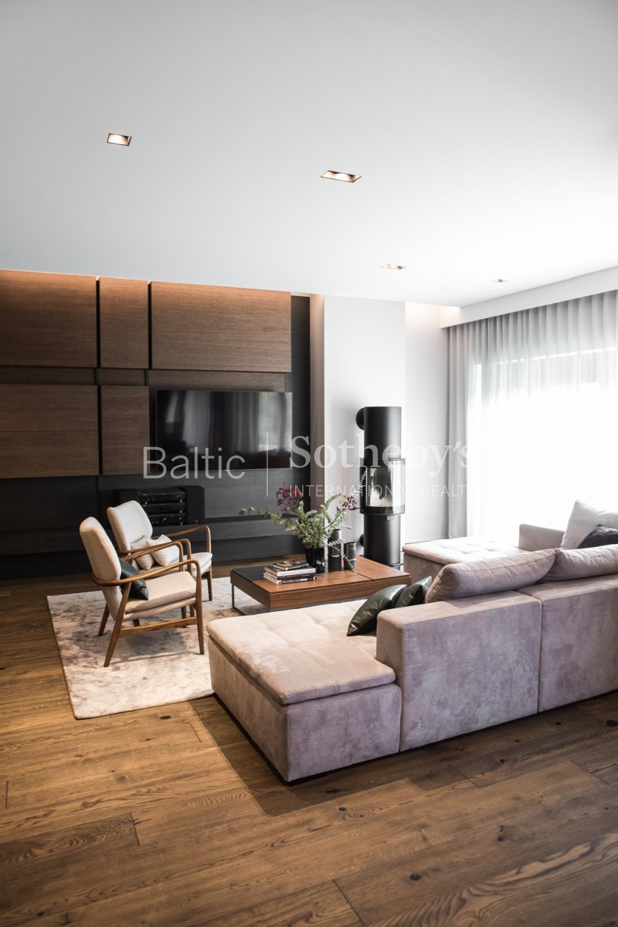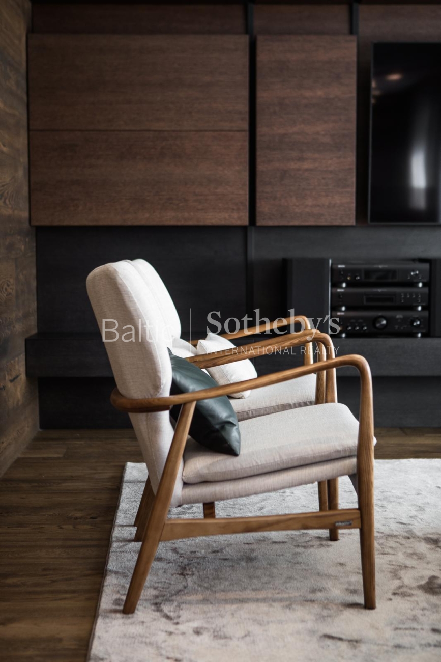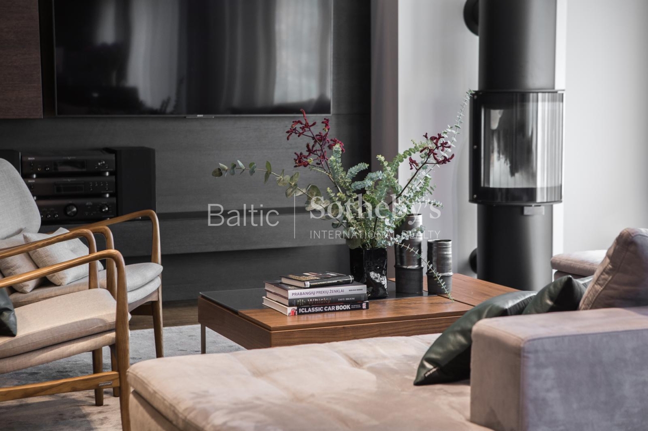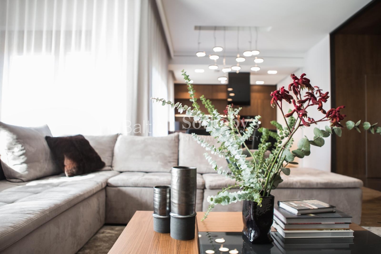 The property is sold fully furnished and ready for immediate occupancy, requiring no additional investment. The interior design concept was created by designer Justina Laurinaitytė, whose work is distinguished by timeless elegance, subtle luxury, and cohesive spatial harmony.