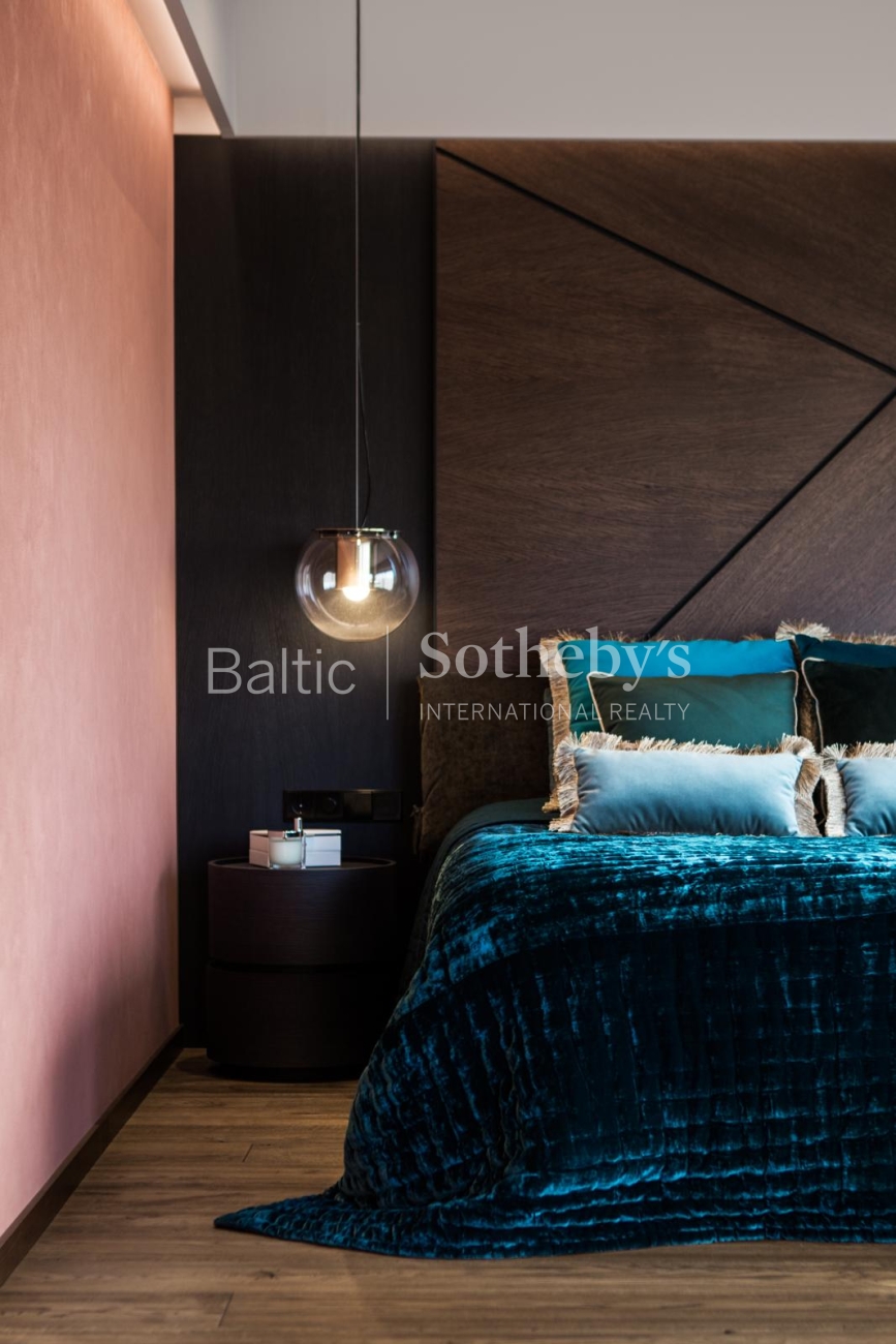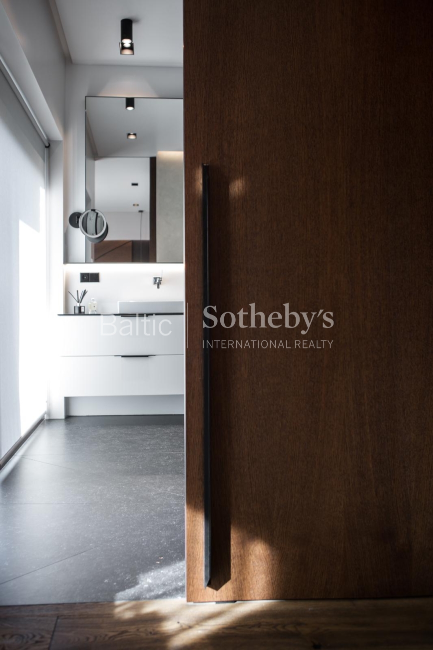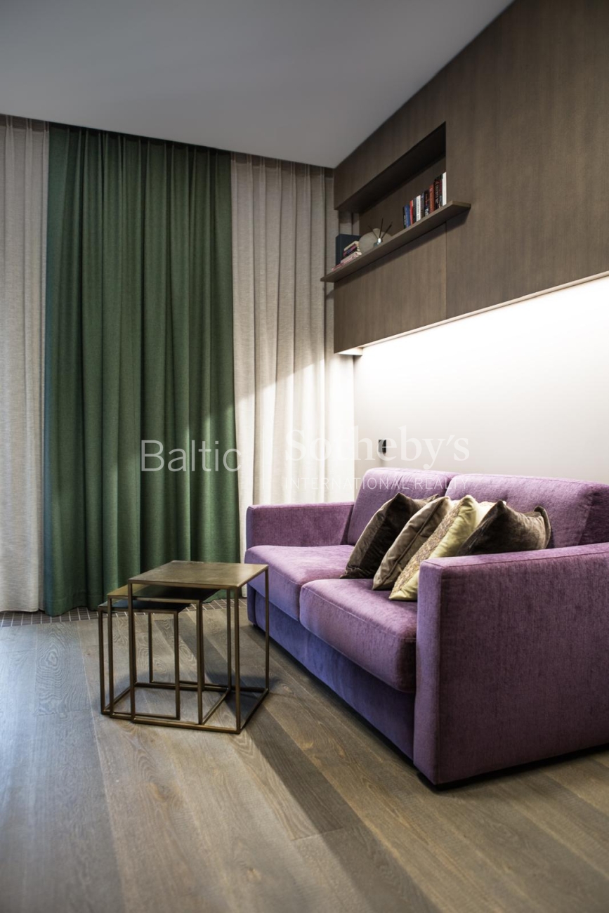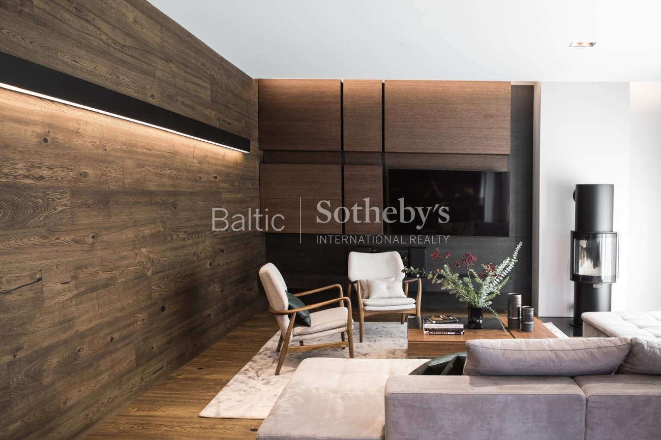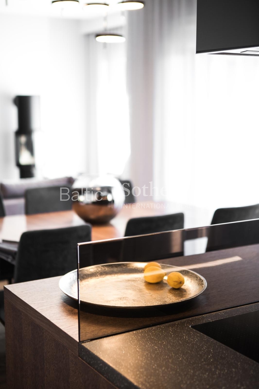 The property is sold fully furnished and ready for immediate occupancy, requiring no additional investment. The interior design concept was created by designer Justina Laurinaitytė, whose work is distinguished by timeless elegance, subtle luxury, and cohesive spatial harmony.
