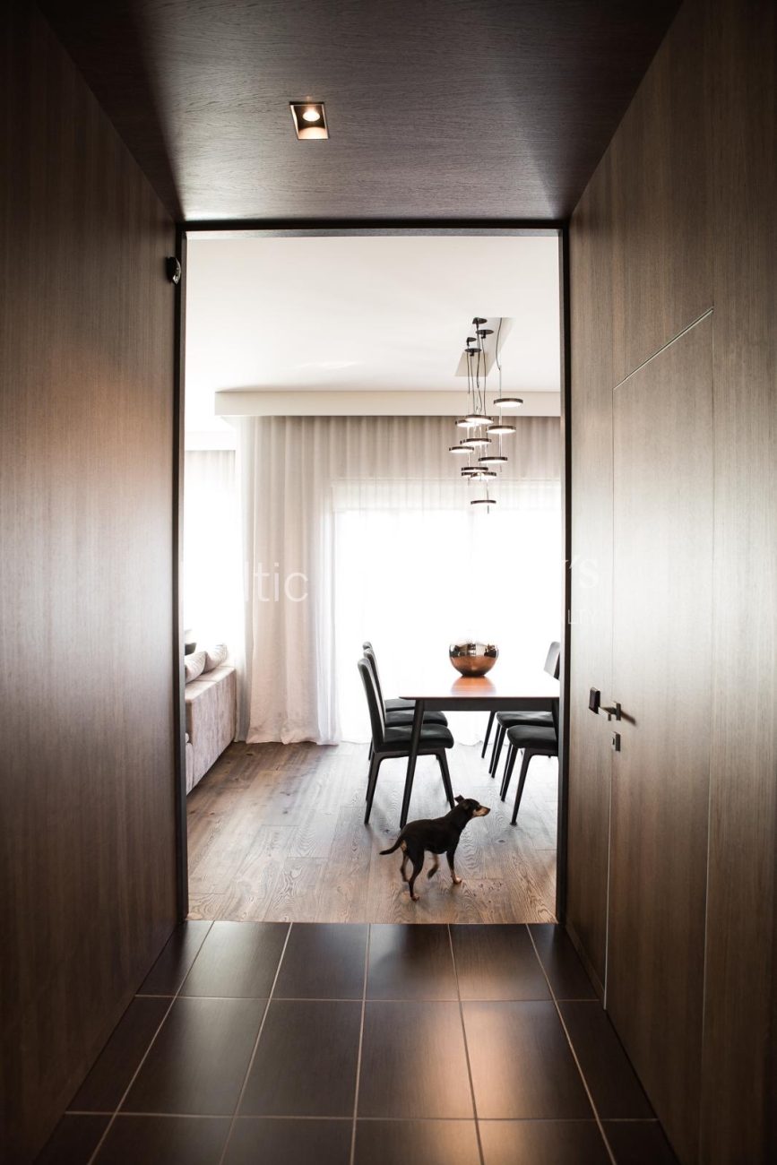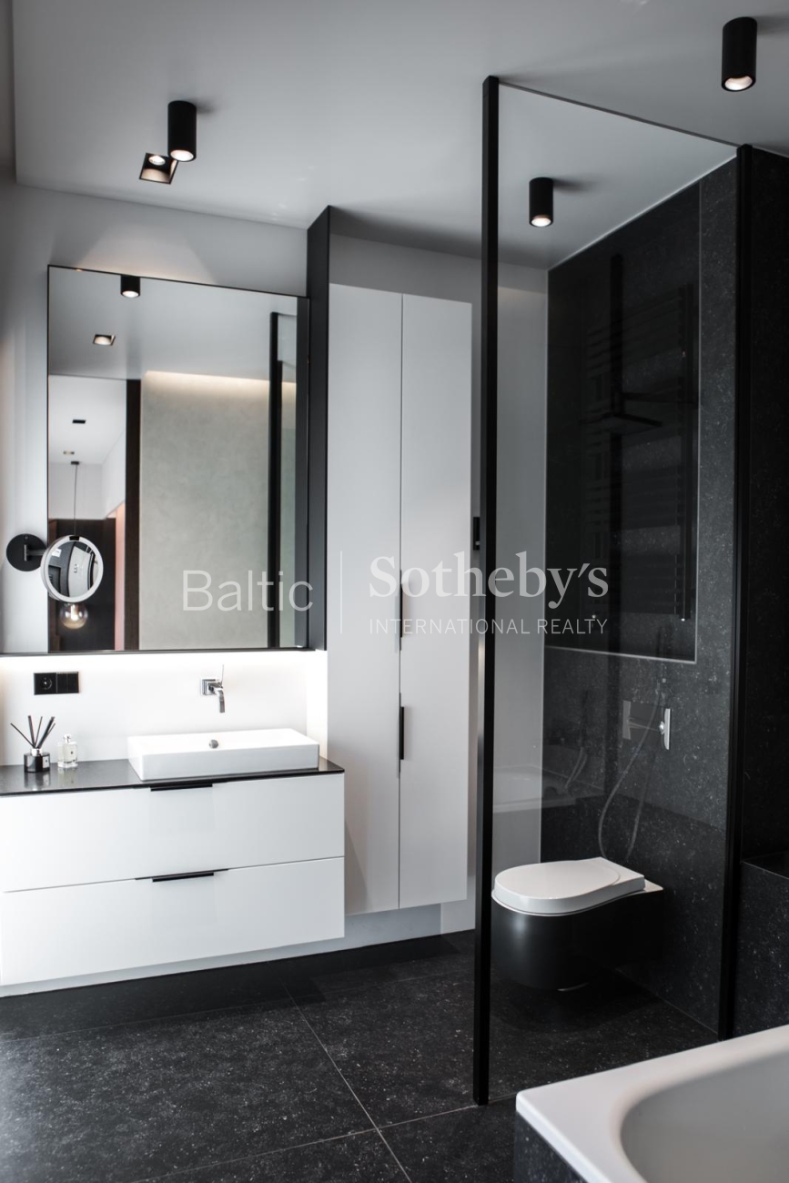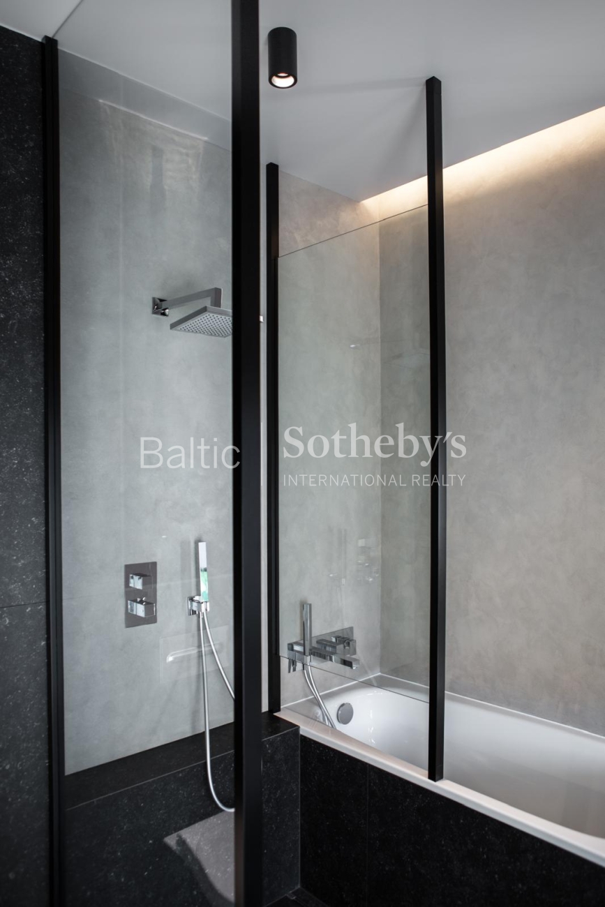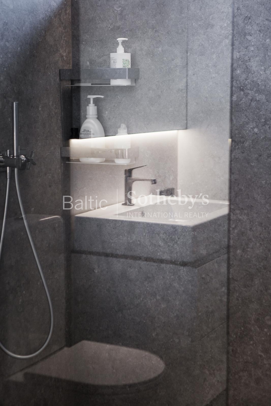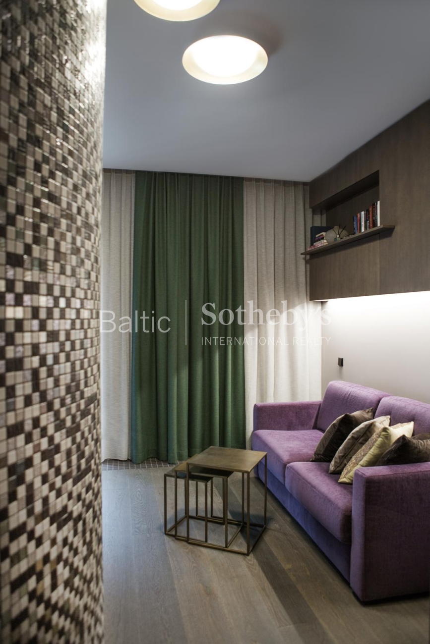 The property is sold fully furnished and ready for immediate occupancy, requiring no additional investment. The interior design concept was created by designer Justina Laurinaitytė, whose work is distinguished by timeless elegance, subtle luxury, and cohesive spatial harmony.