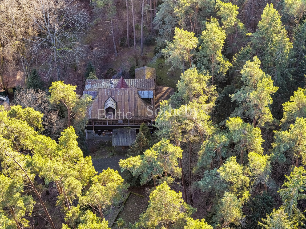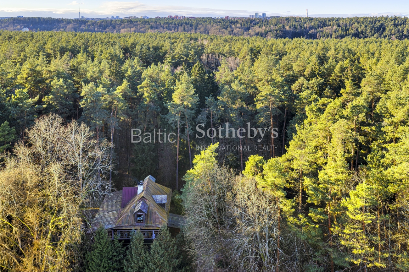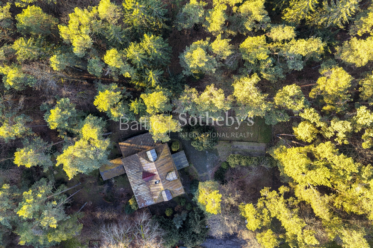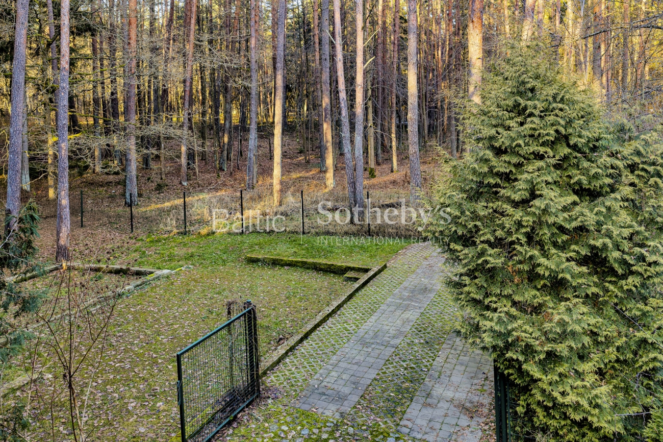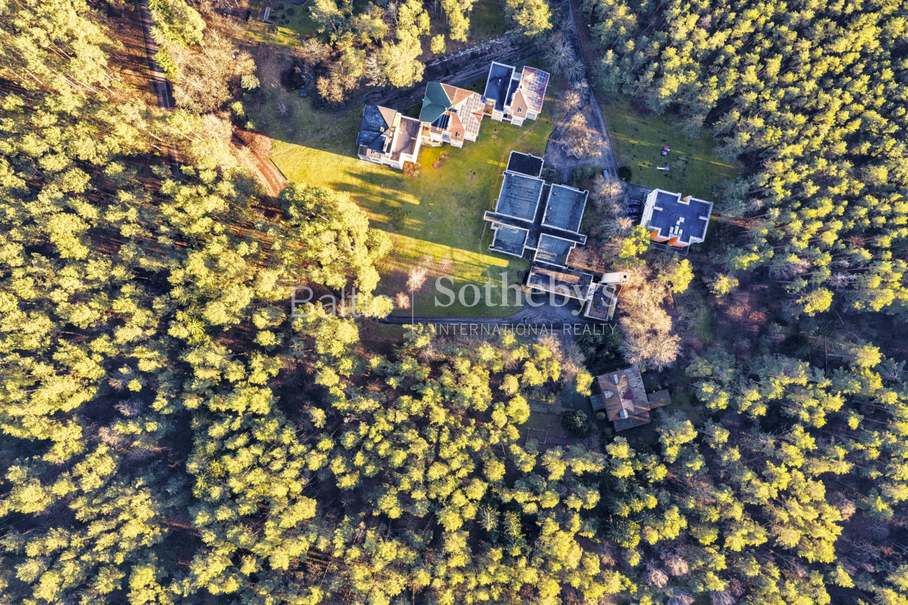 The plot is deeply embedded in the forest massif, therefore it creates a sense of space and privacy and visually looks larger. Although there is an apartment block on the access side, in the eastern part of the plot, due to the peculiarities of the terrain and dense greenery, it is not visible from the plot territory.