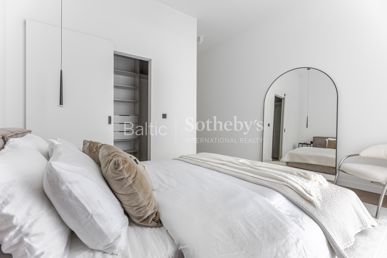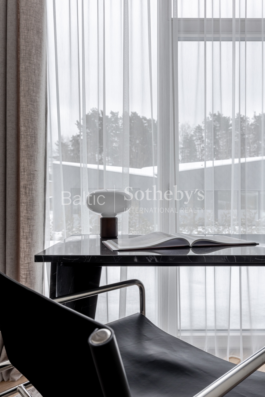 Šviesus ir jaukus interjeras, kuriame vyrauja žemiškų pastelinių spalvų paletė, natūraliai susilieja su aplinkos peizažu ir kuria subtilią ramybės atmosferą. Kiekviena erdvė kruopščiai apgalvota, siekiant maksimalaus funkcionalumo, estetikos ir gyvenimo kokybės. Namas nuomojamas su visais reikalingais baldais ir buitine technika, tad naujakuriai gali iš karto mėgautis jaukumu ir patogumu be papildomų rūpesčių.