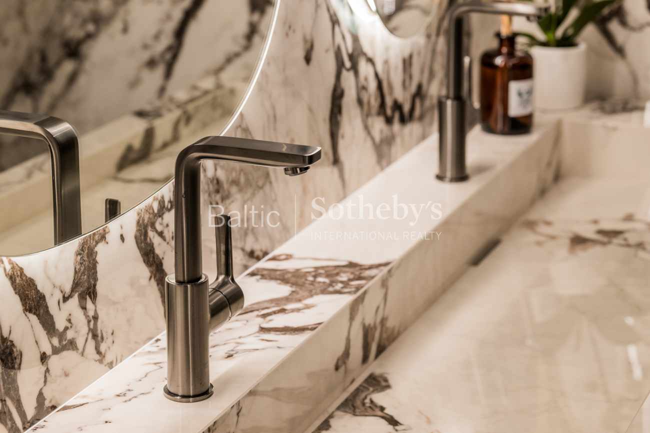 Čia buvo apgalvota kiekviena detalė: nuo modernios „Bang & Olufsen“ garso sistemos ir elektrinio židinio svetainėje iki įmontuotų spintų bei prabangios laisvai pastatomos vonios. Pagrindiniame miegamajame įrengtas paslėptas lubinis televizorius ir jaukus bioetanolio židinys maksimaliam poilsiui užtikrinti. Iš jo patenkama į įspūdingą privatų vonios kambarį su laisvai pastatoma vonia – ideali vieta atsipalaiduoti.
