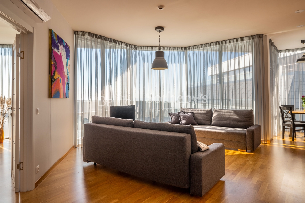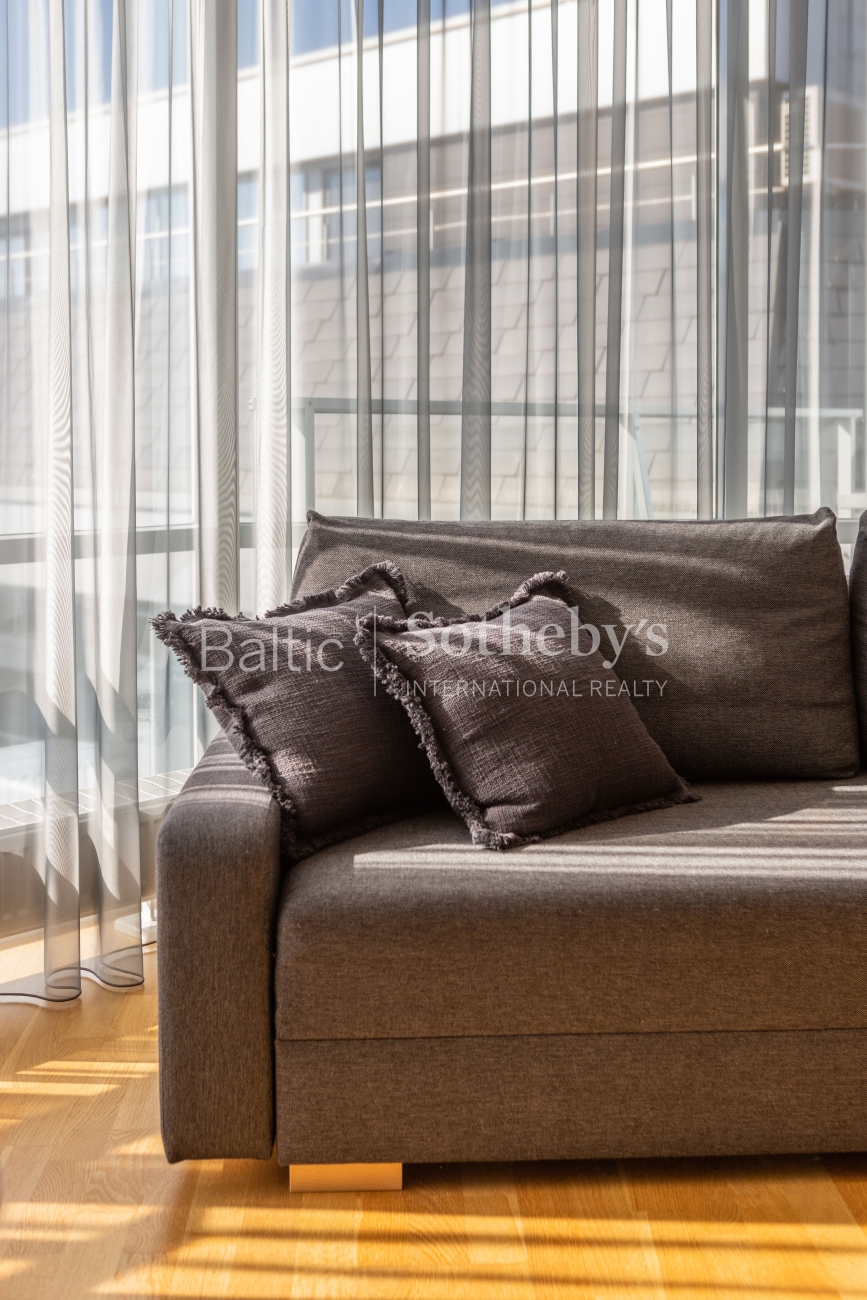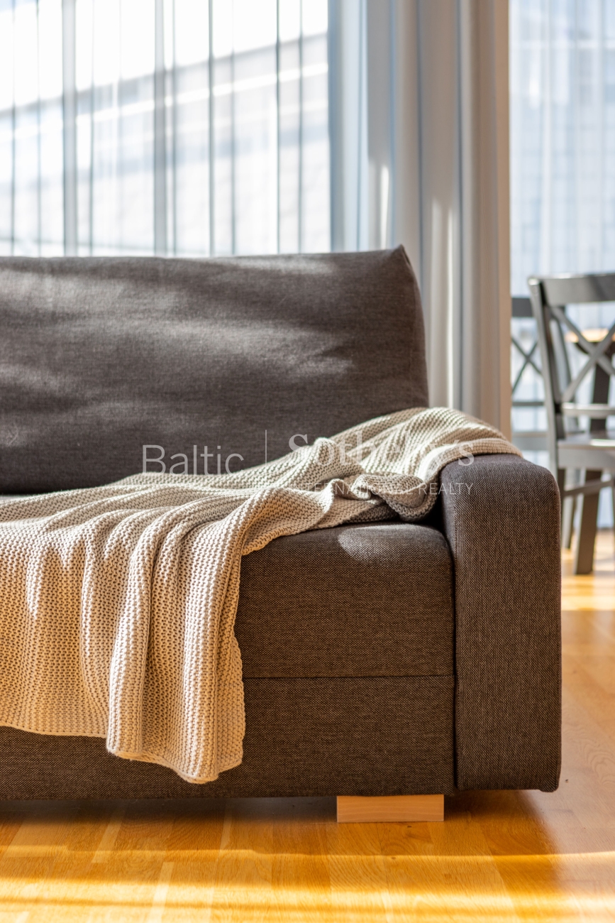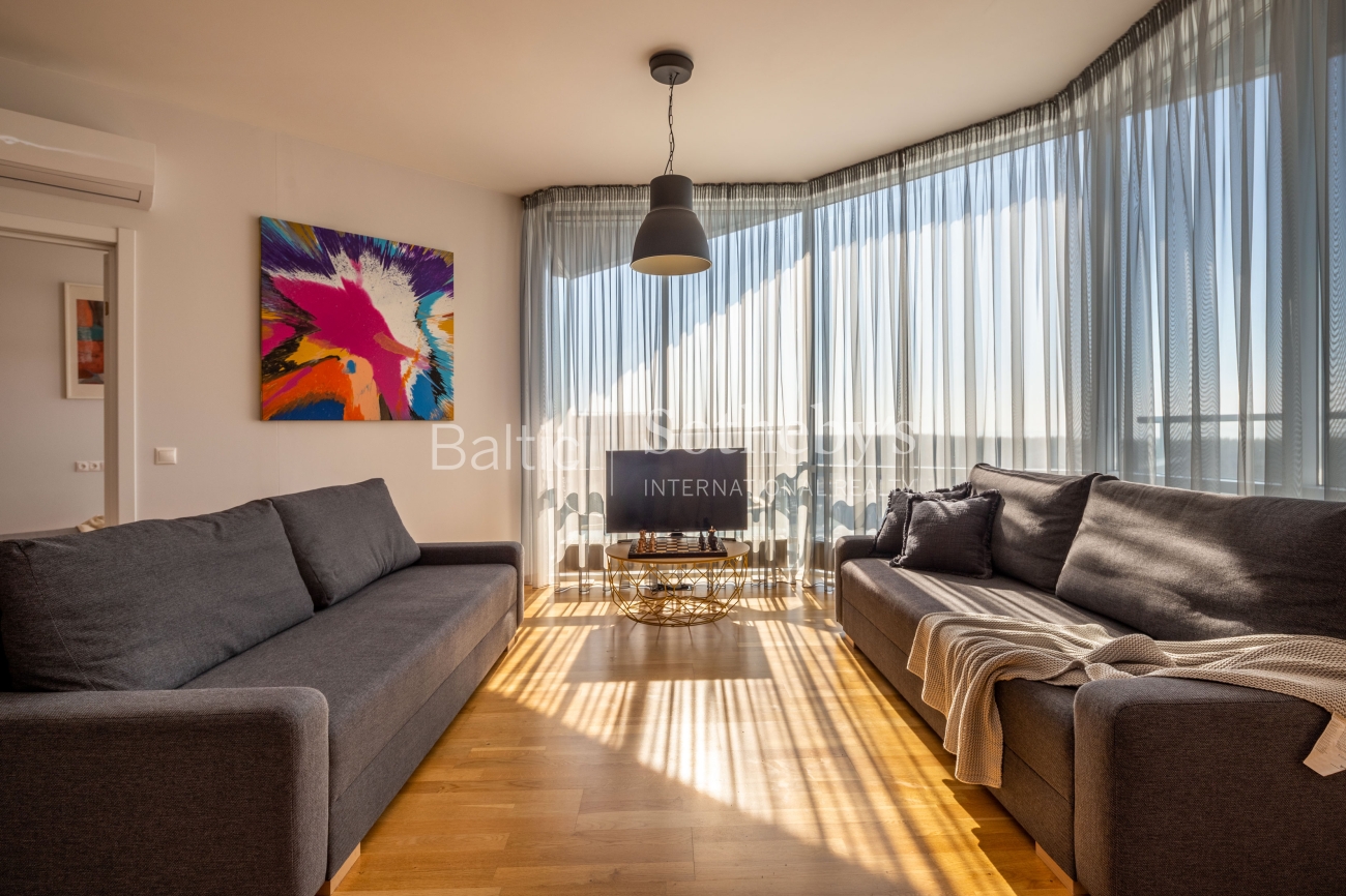 Parduodami pilnai įrengti apartamentai 8-ajame aukšte su tiesioginiais jūros vaizdais pro vitrininius langus. Butas šviesus, šiltas ir apgalvotai suplanuotas – svetainė su virtuve bei valgomojo zona, miegamasis su vaizdu į jūrą, du balkonai, erdvus vonios kambarys ir įeinamo tipo drabužinė/sandėliukas.