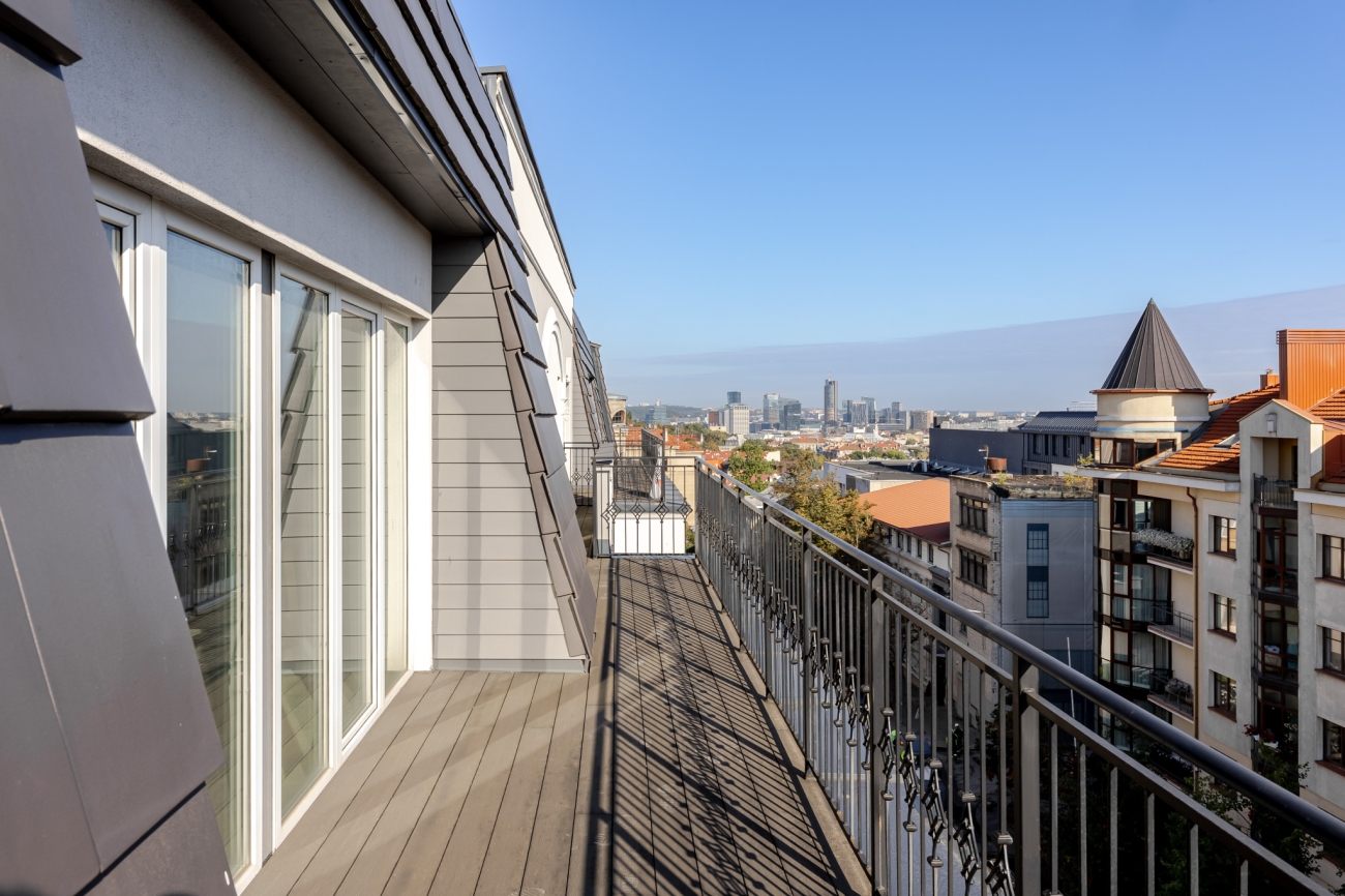 Kai pirmieji saulės spinduliai nušviečia Senamiesčio stogus, o miestas po truputį bunda po nakties tylos, Jūs pro savo namų langus ar iš 23 kv. m privačios terasos regite rytinio miesto horizontą, kuriame į vientisą vaizdą susilieja architketūrinė istorija ir modernumas.