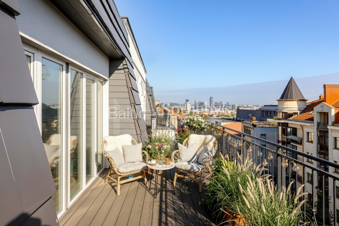 Įsivaizduokite rytą, kai pirmieji saulės spinduliai paliečia Senamiesčio stogus, o miestas po truputį bunda po nakties tylos. Iš erdvių, net 248 m² apartamentų, atsiveria įspūdinga Vilniaus panorama – miesto bokštai, raudoni stogai ir horizontas, kuriame susilieja istorija ir modernumas. Dvi erdvios terasos (23 kv. m ir 16 kv. m) kviečia sustoti akimirkai, pajusti šviesą ir miesto pulsą iš viršaus – tarsi gyvenimas virš stogų. Vakare, kai miestą apgaubia švelni šviesa, o saulė tyliai leidžiasi už upės ir medžių, pro plačius vakarų pusės langus sklinda šiluma.