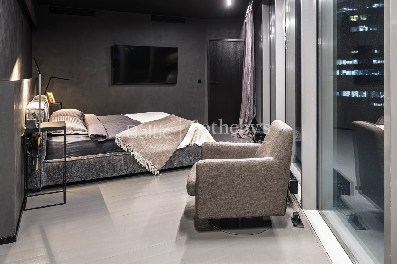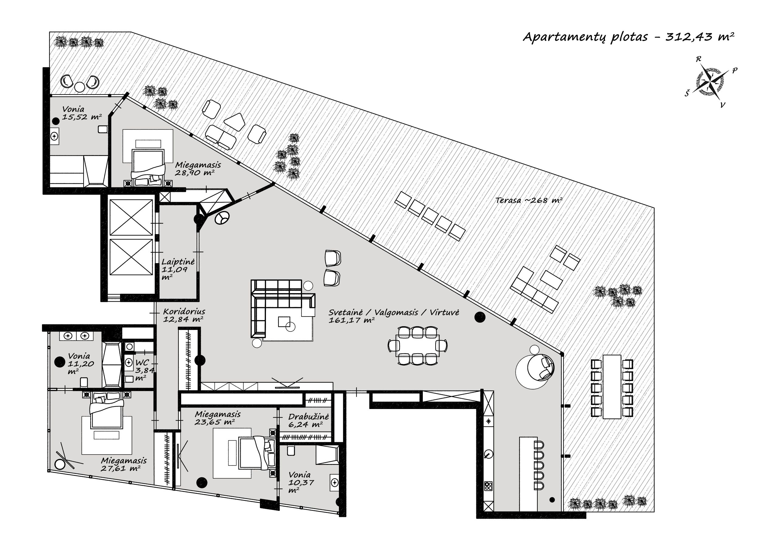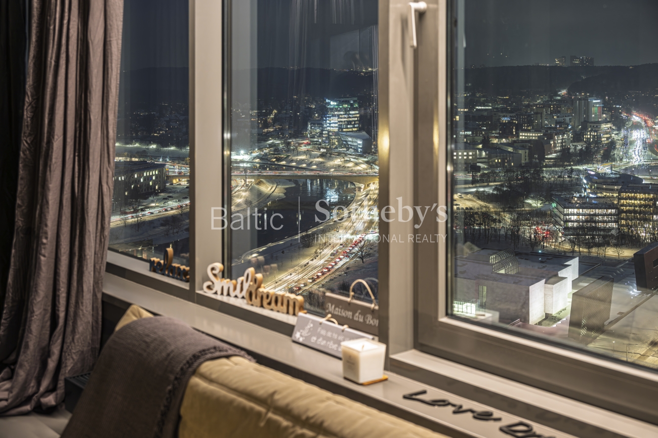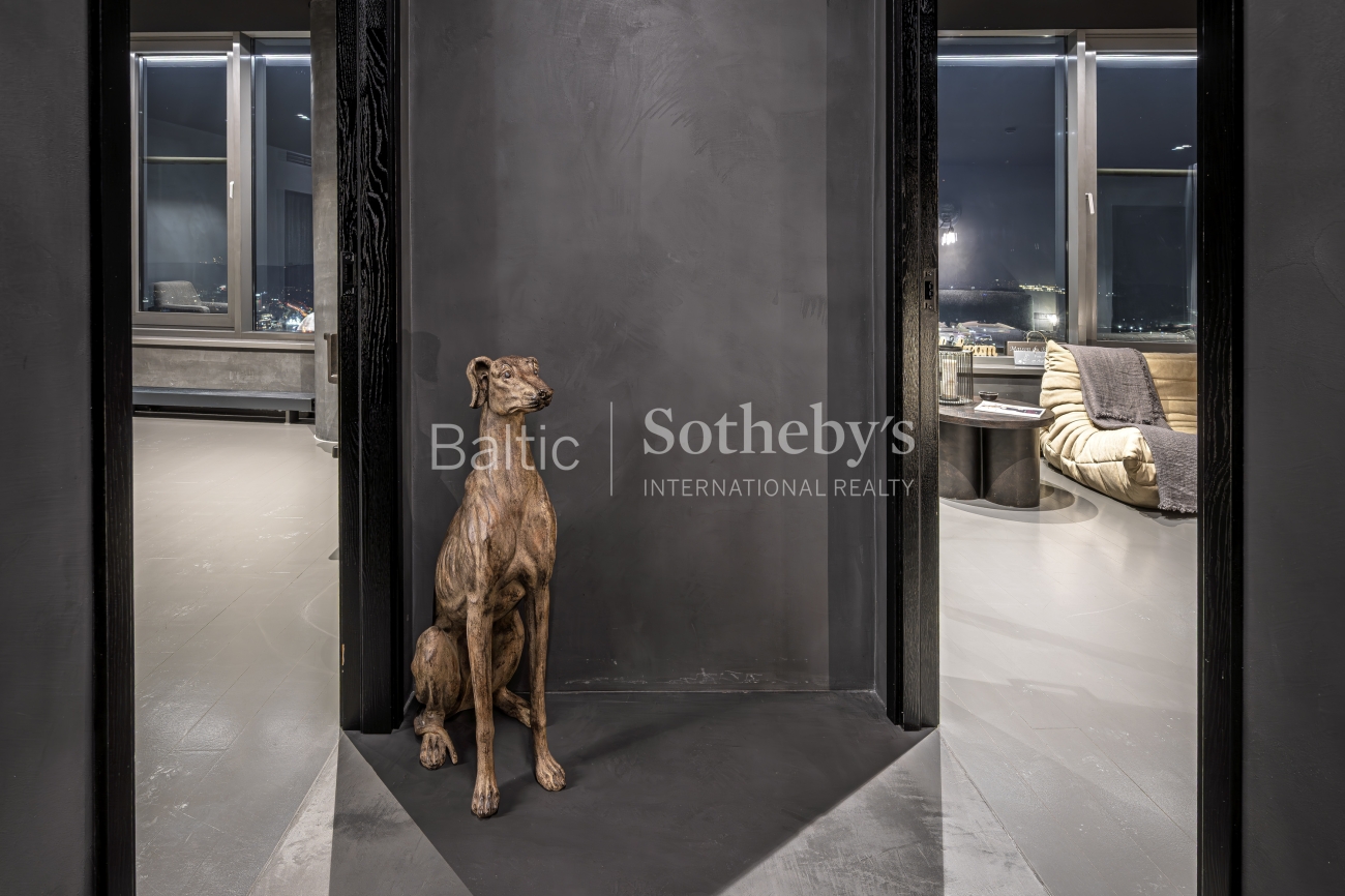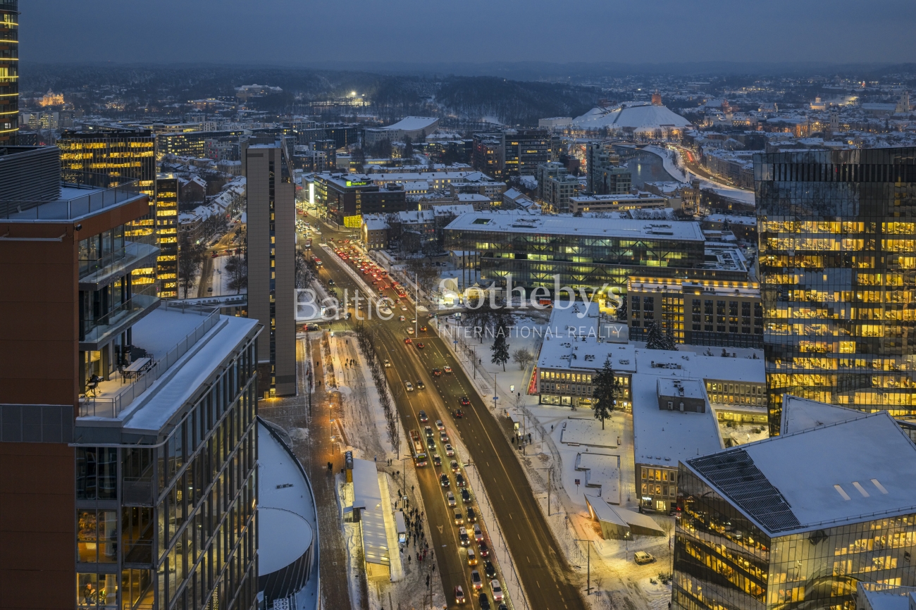 Šie išskirtiniai 312 kv.m prabangūs apartamentai su 220 kv.m terasa, atveria nepakartojamus miesto vaizdus. Čia kasdien matysite kaip kyla ir leidžiasi saulė, kaip bunda miestas ir vakare įsižiebia miesto žiburiai. Pagrindinė net 160 kv.m erdvė sujungia svetainę, valgomąjį ir virtuvę, sukurta galvojant apie modernų komfortą ir rafinuotumą. Vitrininiai langai leidžia natūraliai šviesai užtvindyti erdvę bei pabrėžia miesto grožį kiekviename apartamentų kampe.