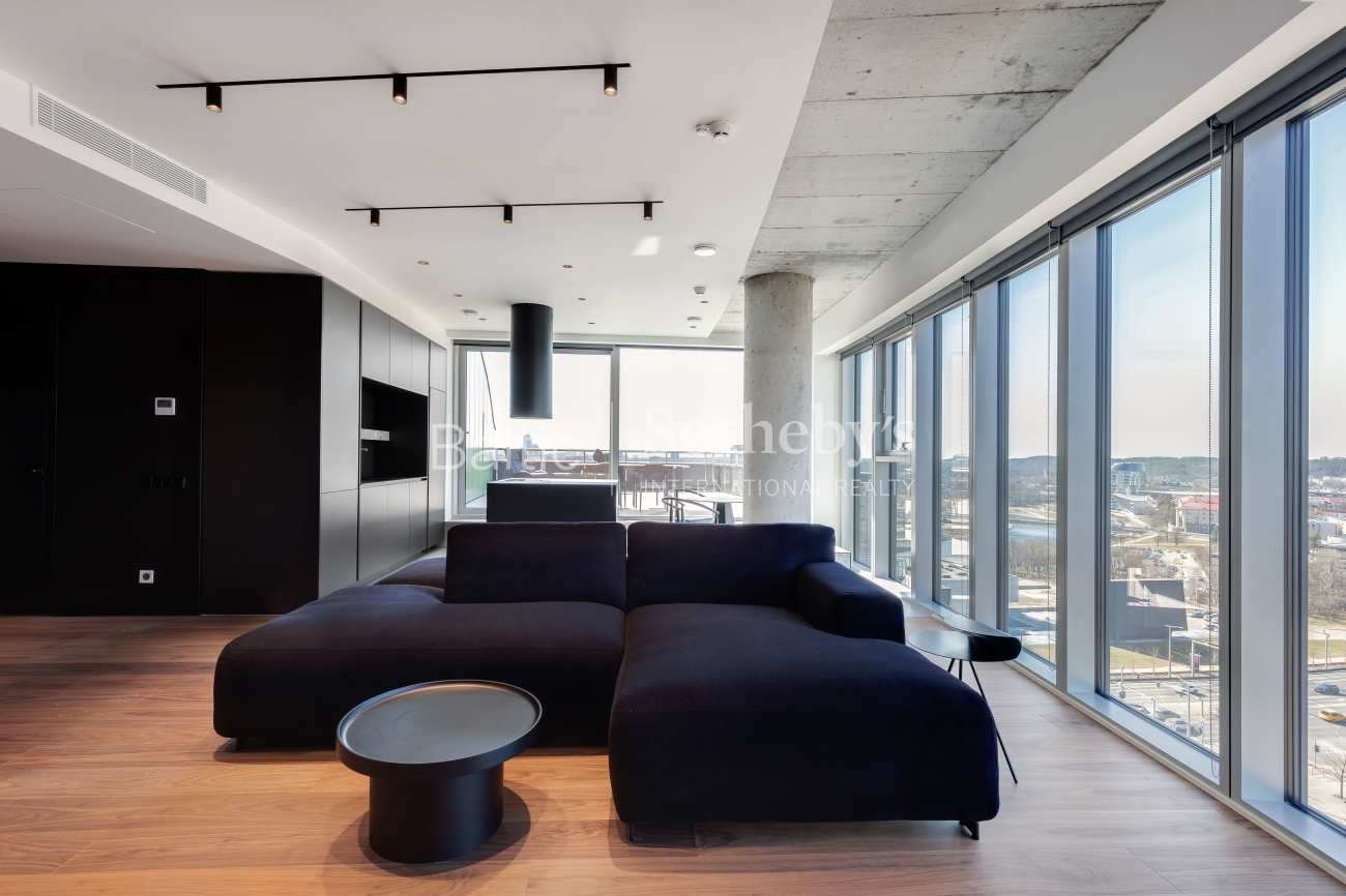 Apartamentai pasižymi dizainerių kurta estetika ir funkcionaliu trijų kambarių išplanavimu, idealiai tinkančiu erdvės mėgėjams. Svetainės, virtuvės ir valgomojo erdvės susilieja į vieną, iš kurios galėsite tiesiogiai patekti į terasą ir mėgautis vaizdais į Nerį bei Senamiestį. Butas taip pat turi slaptą darbo kambarį. Pagrindiniame miegamajame yra erdvi įeinama drabužinė, o antras miegamasis turi savo balkonėlį.