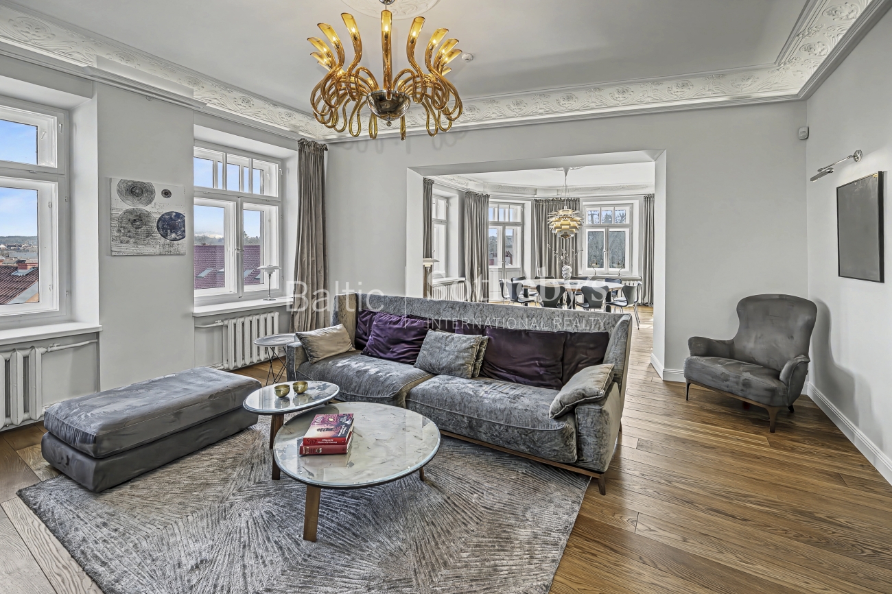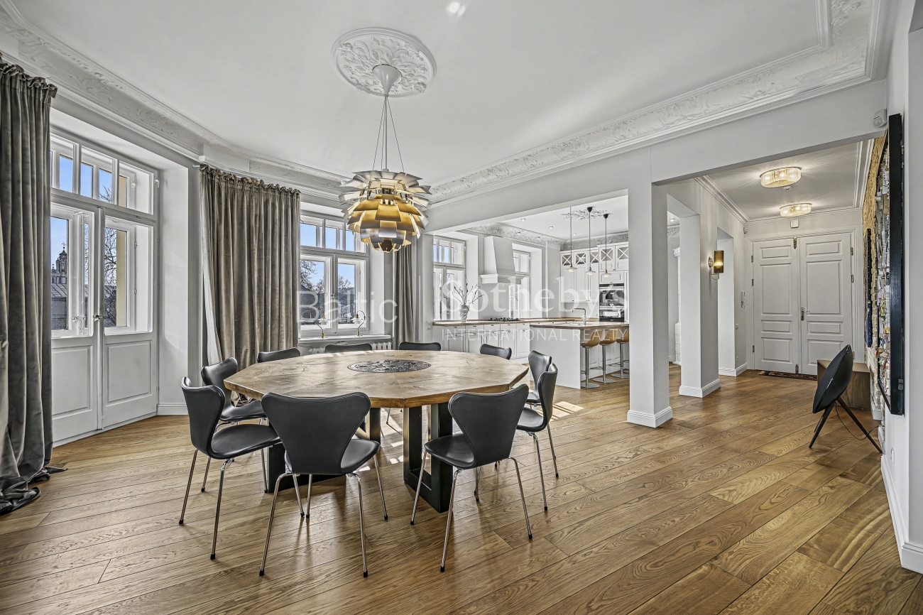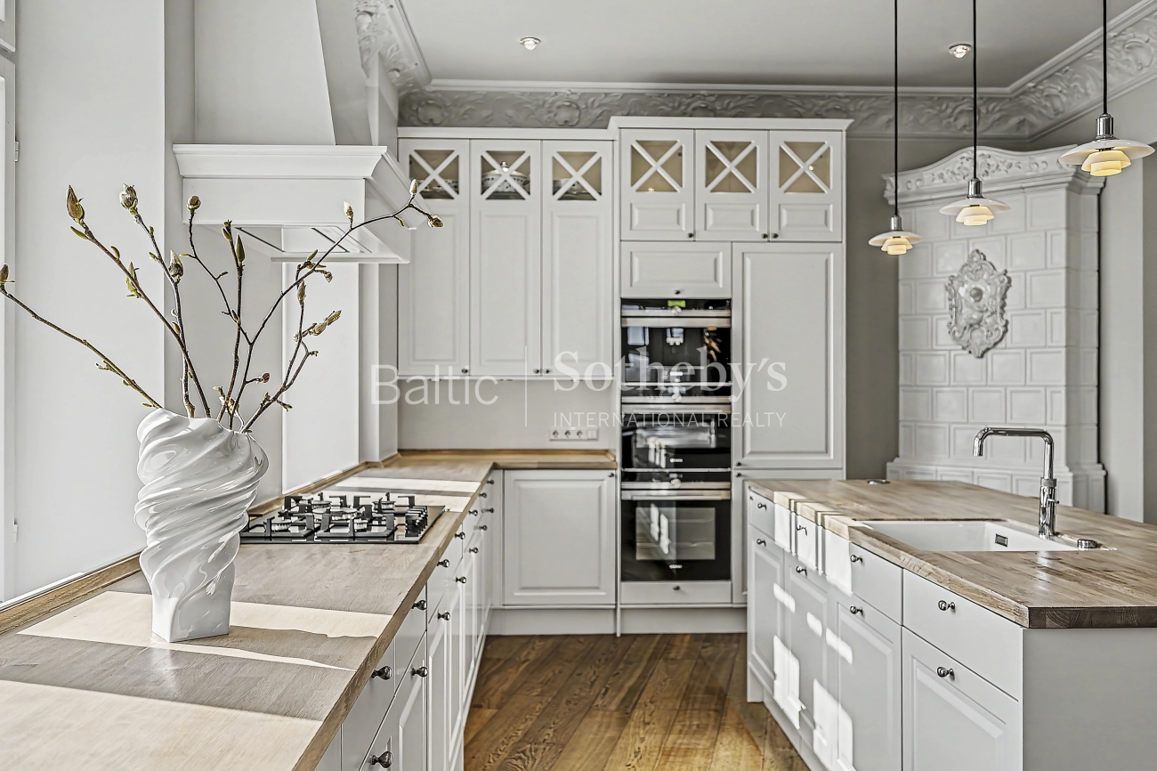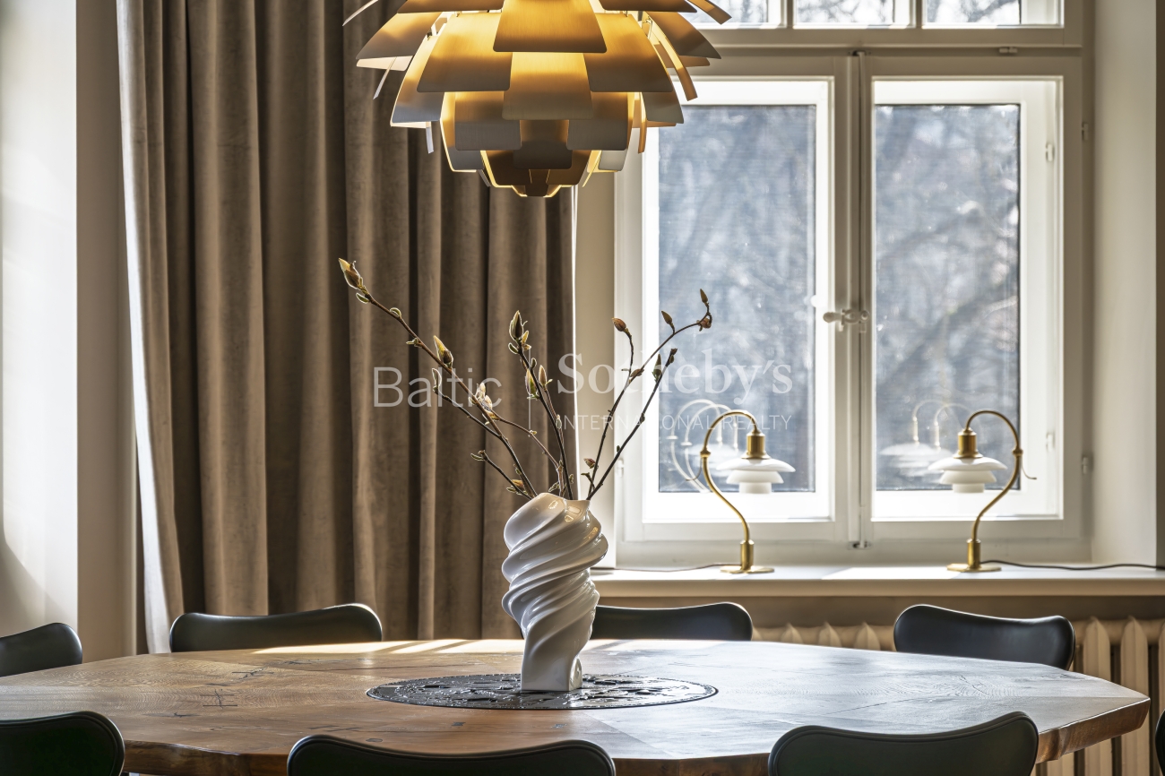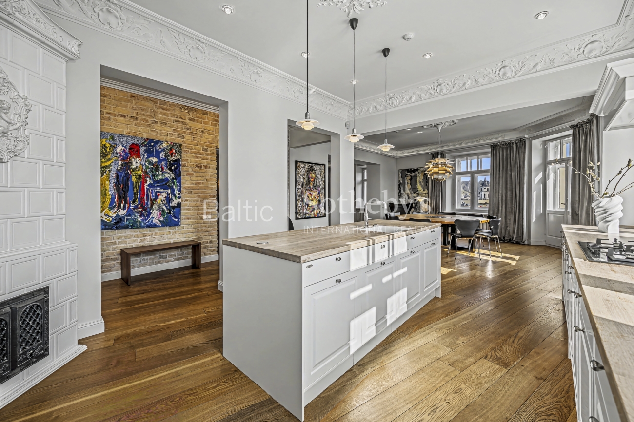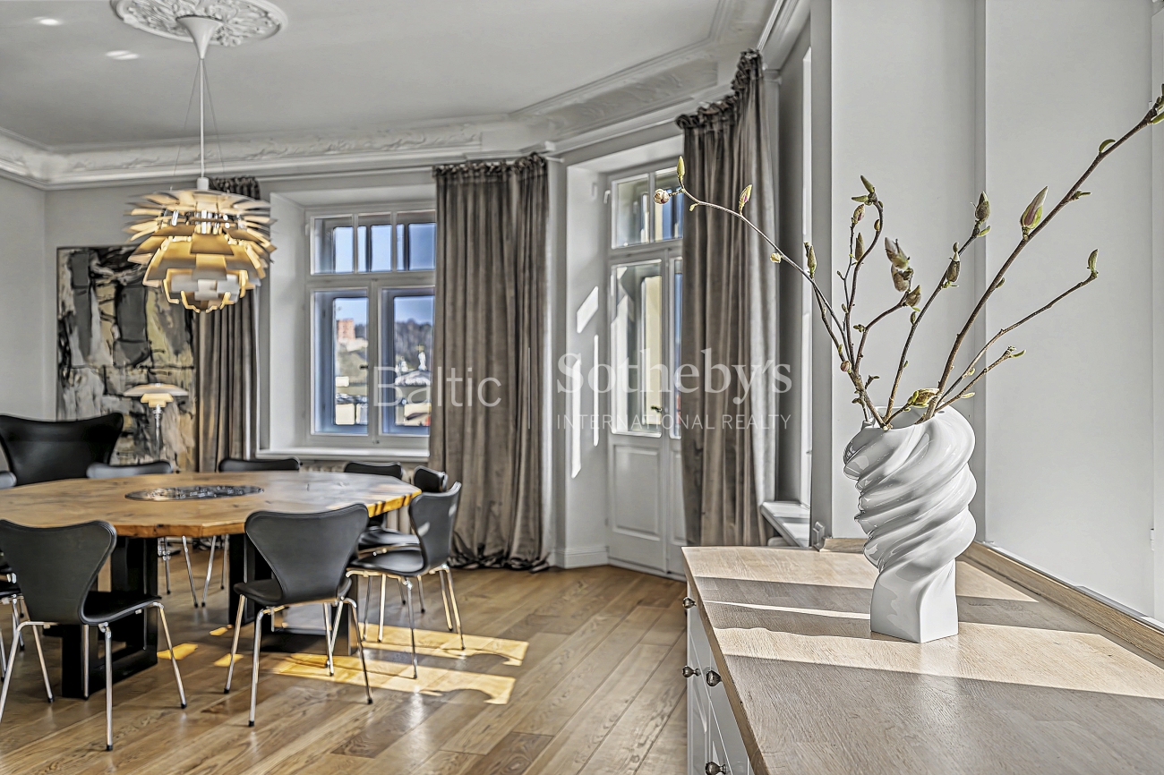 Aukštos lubos, autentiški gipso lipdiniai, plačios dvivėrės durys, židinys ir natūralaus medžio grindys išsaugo senamiesčio architektūrinį charakterį. Dideli langai pripildo erdves šviesa, o pro juos atsiveriantys miesto vaizdai – tarsi gyvas meno kūrinys.