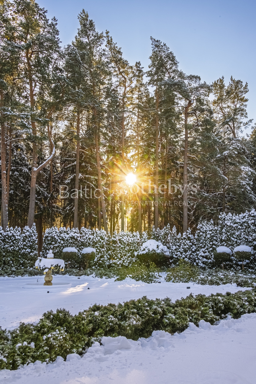 Sodas išties nuostabus, jo simetriškos linijos, tobulai žalia veja bei preciziškai nukarpomi dekoratyviniai augalai sukuria sofistikuotą ir elegantišką erdvę.