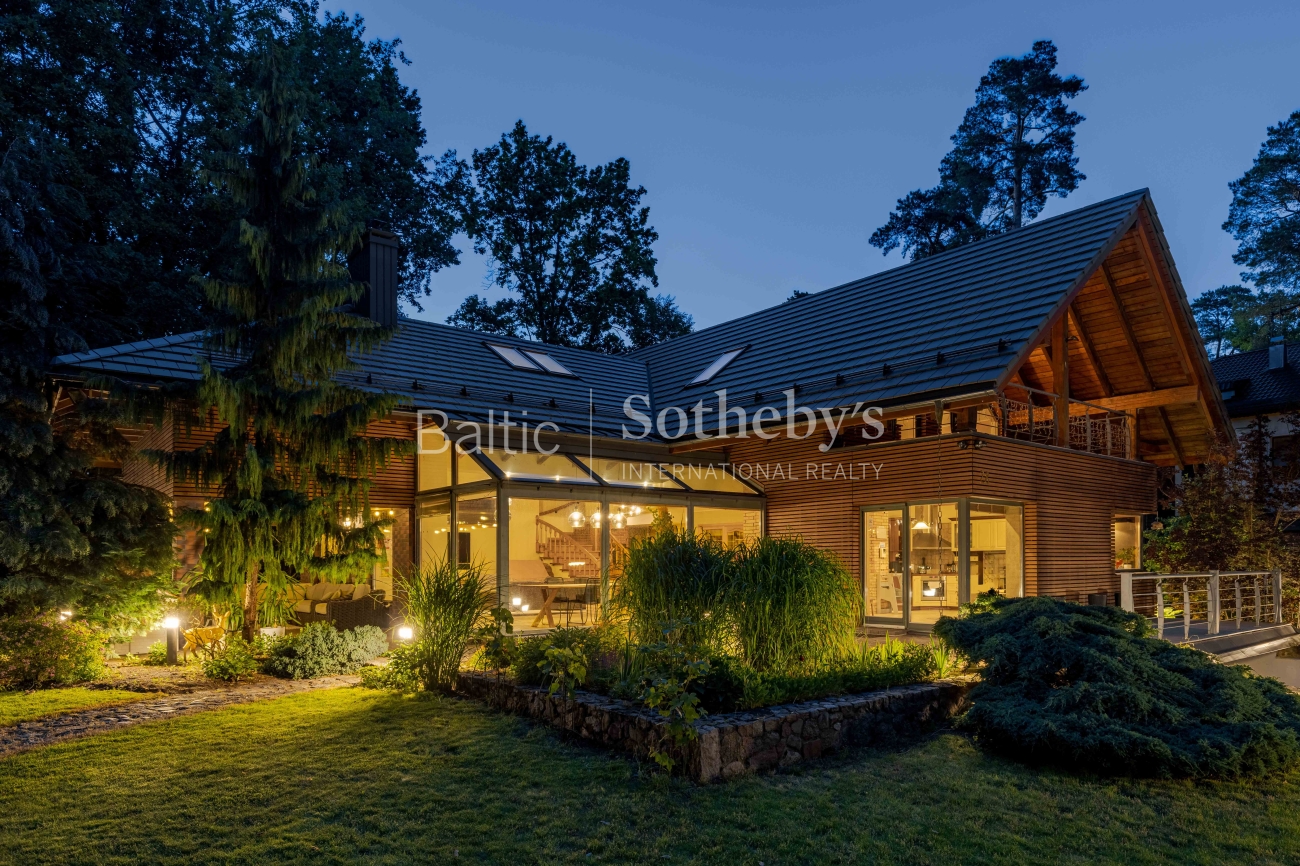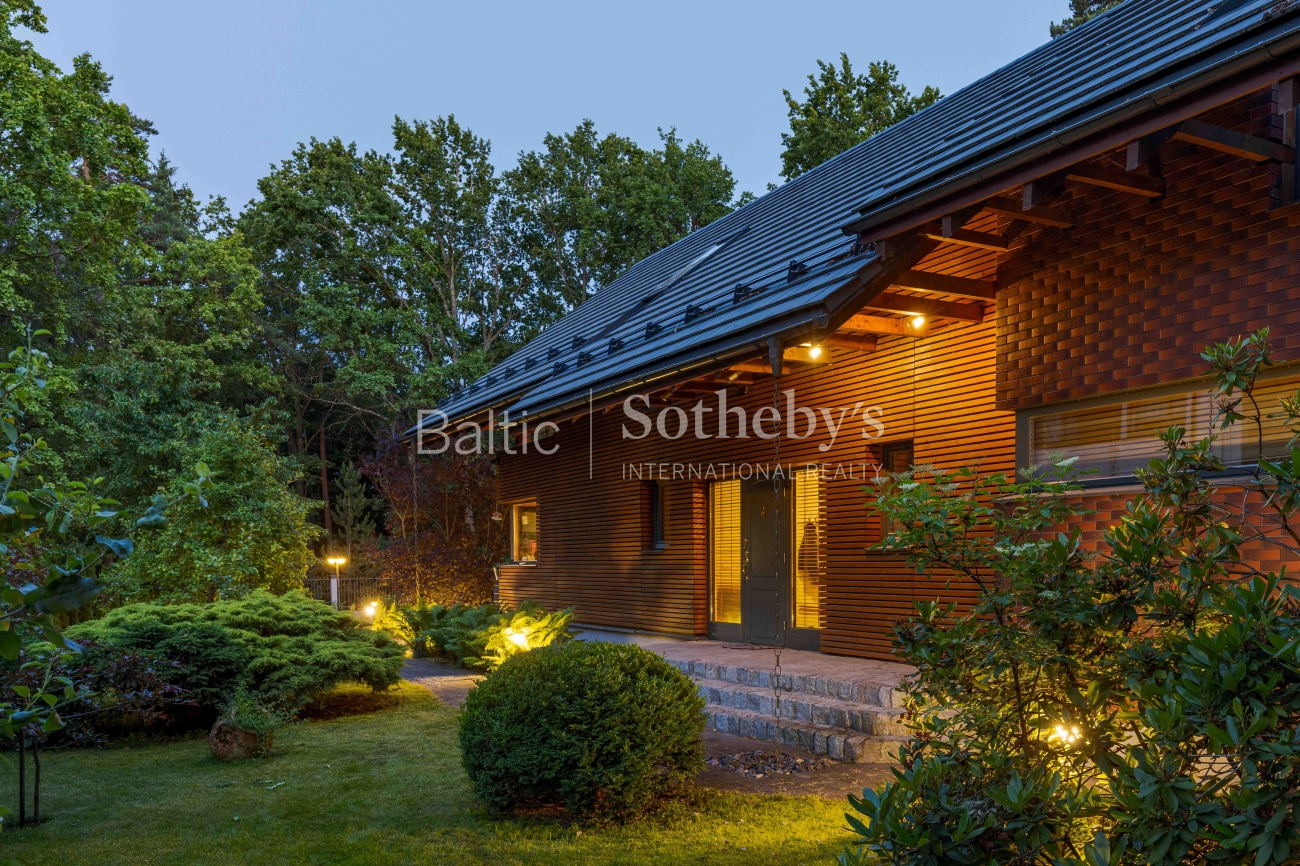 Sklypas apželdintas ir prižiūrėtas su ypatingu dėmesiu detalėms: įrengtas apšvietimas, laistymo bei vaizdo stebėjimo sistemos. Namas pastatytas naudojant ilgaamžes medžiagas – klinkerio ir maumedžio fasado apdailą, šildomus latakus, vitrinius langus iš Sibiro medienos su dvigubu stiklu, kurie užtikrina šviesą ir estetiką.