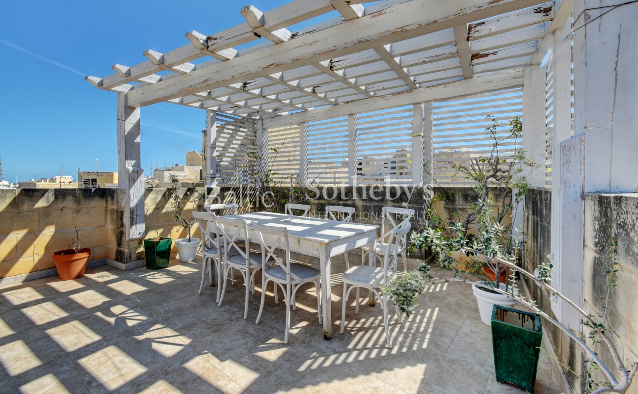 Tradiciniais maltietiškais sraigtiniais laiptais pasiekiama dviejų lygių stogo terasa, nuo kurios atsiveria kvapą gniaužianti panorama į Didįjį uostą ir įspūdingą Valetos horizontą. Tai tobula vieta vakarienei saulėlydžio metu ar tyliai rytinei kavai.