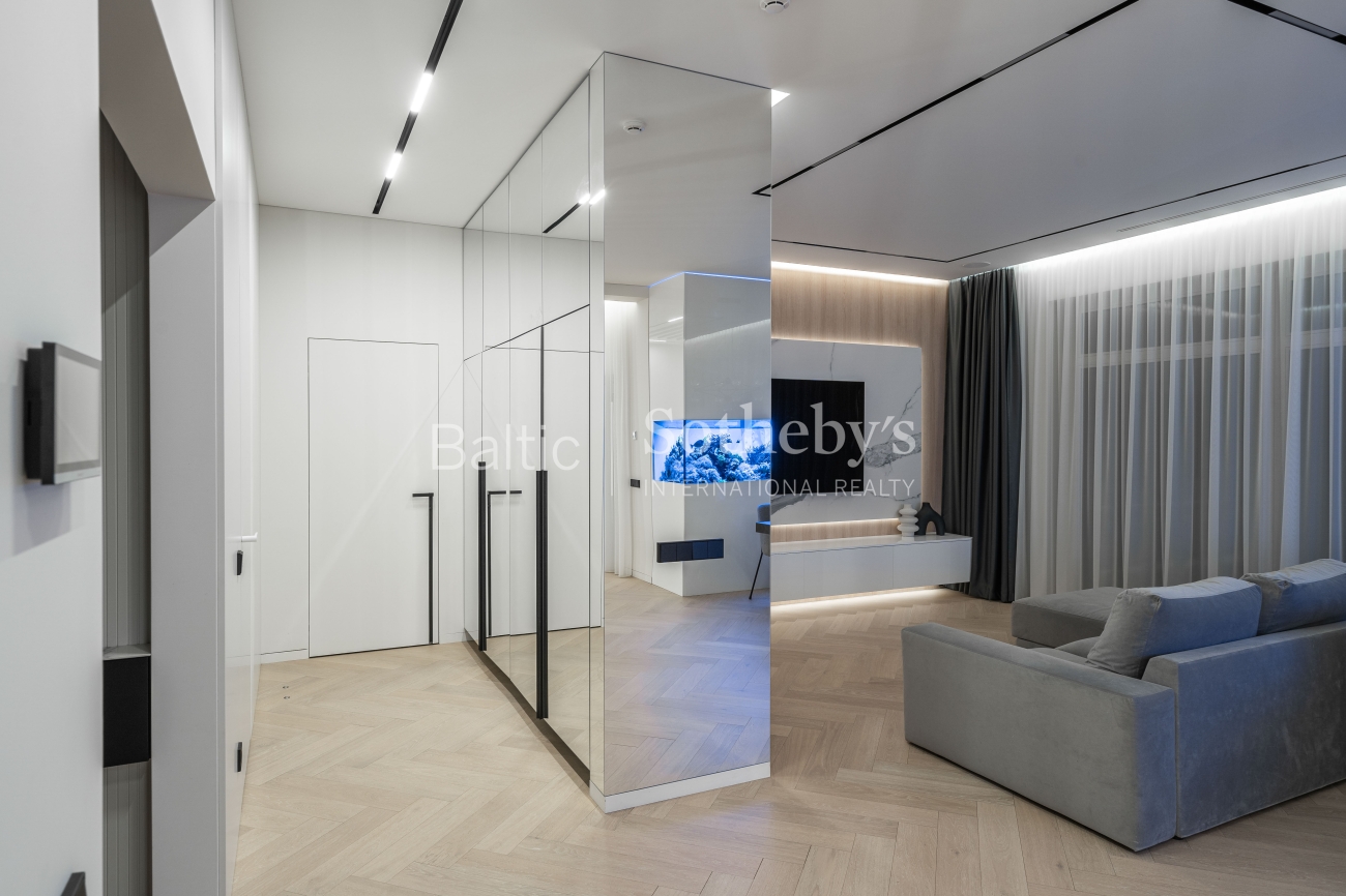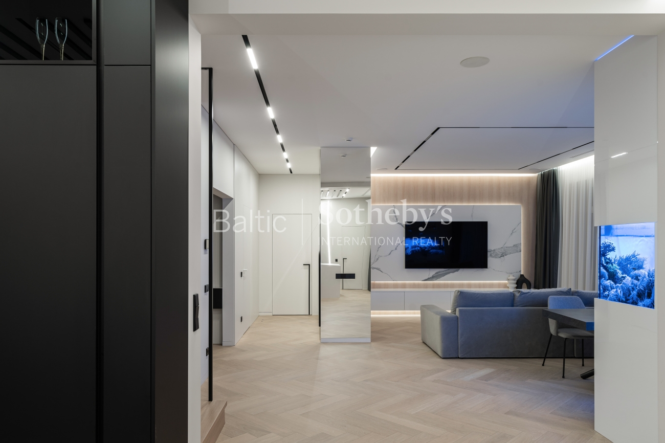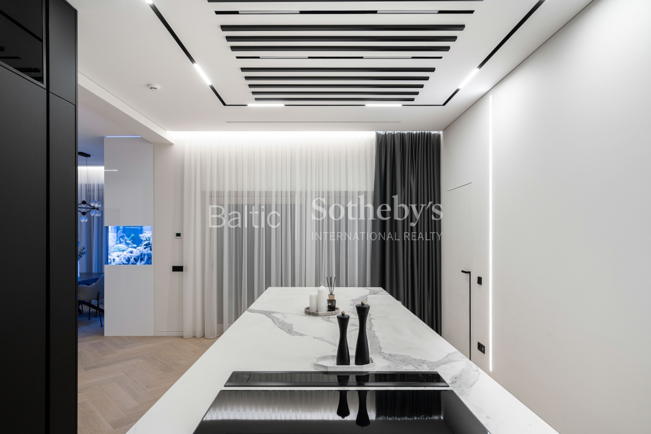 Abejingų nepalieka ir šių namų svetainės puošmena - 1100 litrų jūrinis akvariumas su įspūdingais koralais ir žuvimis bei atkartojantis Ramiojo vandenyno apšvietimą. Viso namo interjeras yra šviesus ir harmoningas, atviros erdvės užtikrina jaukią, modernią atmosferą, o dideli langai ir aukštos lubos - natūralios šviesos gausą visą dieną.