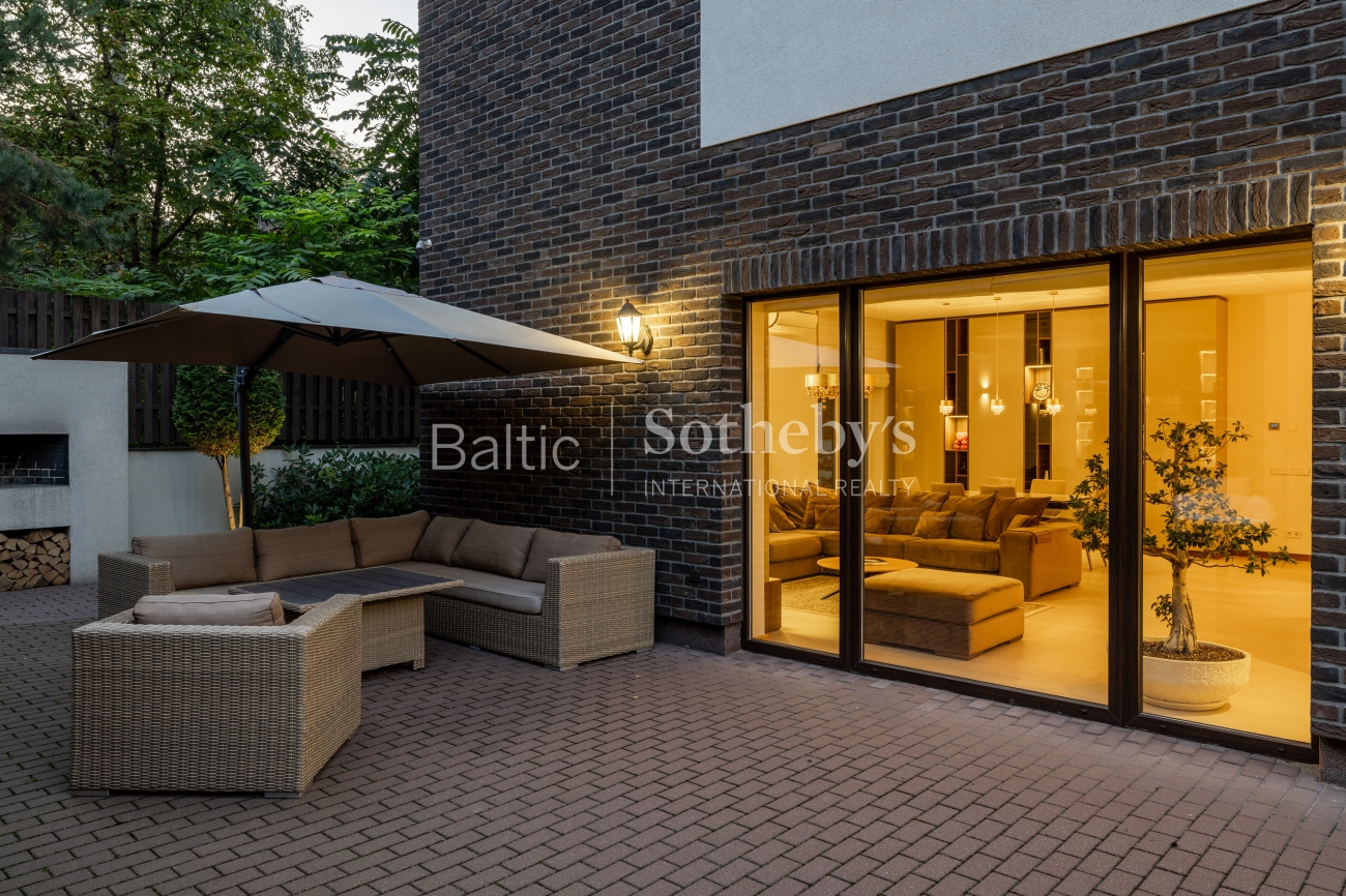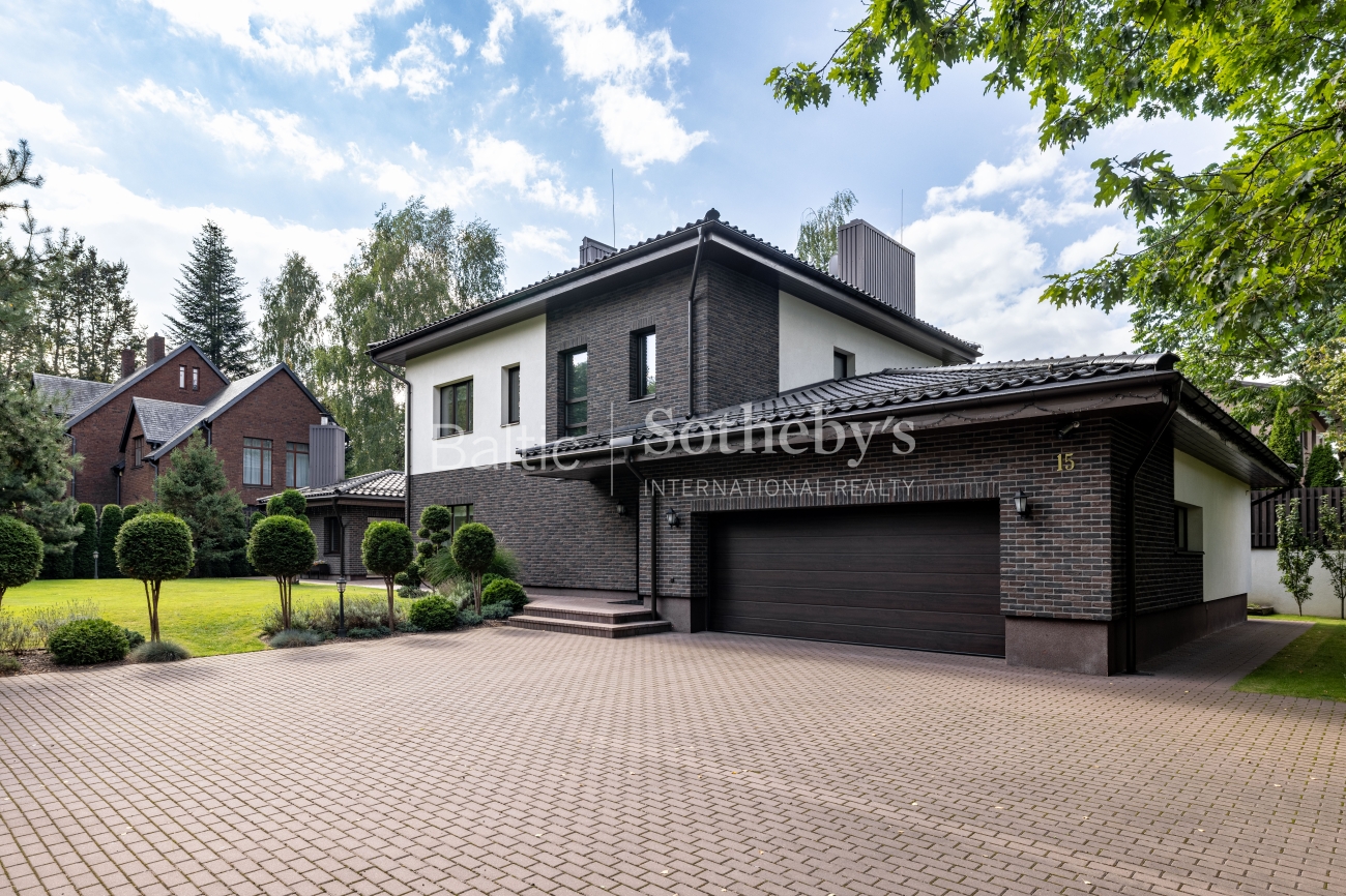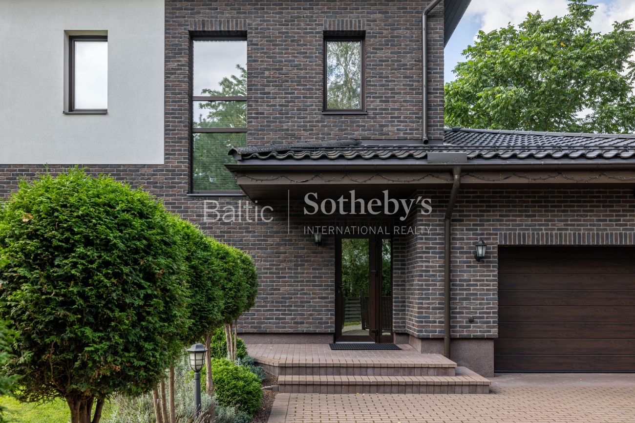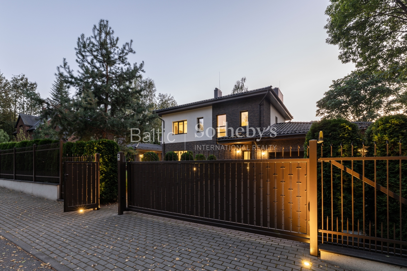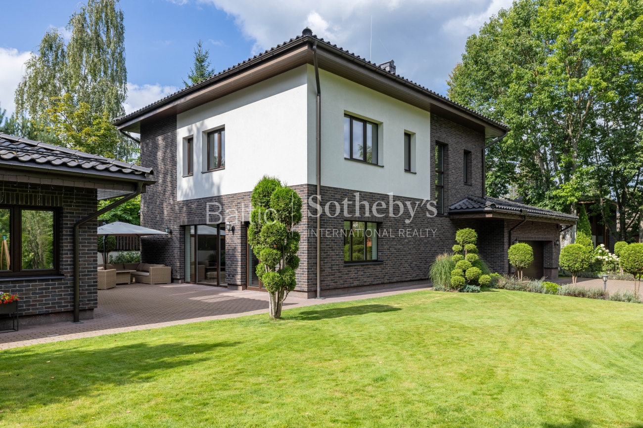 Namas išsiskiria ilgaamžiu klinkeriniu fasadu ir erdviu, landšafto dizainerio kurtu kiemu, kuriame harmoningai įkomponuoti brandūs medžiai. Kieme įrengtos klinkerio trinkelės, jauki terasa bei didelis lauko židinys, veikia automatinė laistymo sistema, sumontuotas apšvietimas ir automatiniai vartai. Pastatytas atskiras 58 kv.m pirties namukas su hidromasažine jacuzzi vonia, iš raudonojo kanadietiško kedro įrengta elektrine pirtimi, dušais, virtuvėle ir jaukiu židiniu.