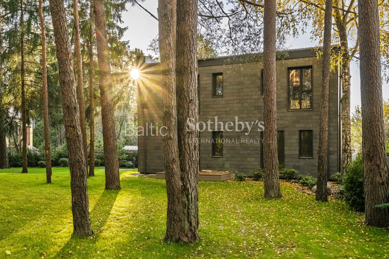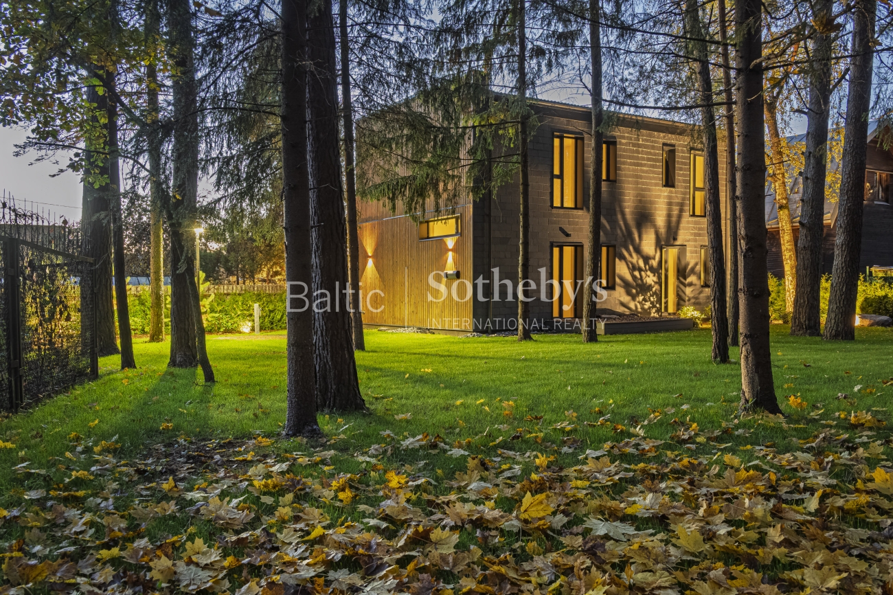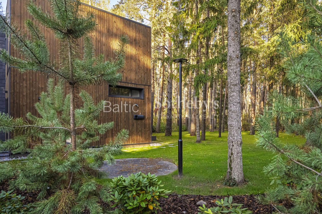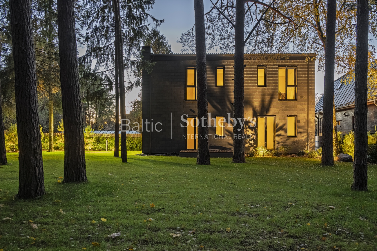 Įsivaizduokite rytą, kai jus pro vitrininius langus pažadina linguojančių pušų vaizdinys ir tylus jų šakų ošimas. Šis naujai įrengtas, dar negyventas namas – tai vieta, kurioje kiekviena diena prasideda su miško artumo pojūčiu. 181 m² dviejų aukštų namas pastatytas 6,67 arų kraštiniame sklype uždaroje bendruomenėje, į kurią patenkama tik per užkardą. Vos įvažiavus Jus pasitinka gamtos glėbys ir saugumo jausmas.
