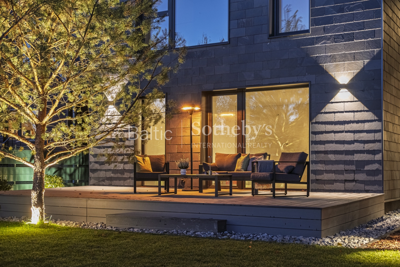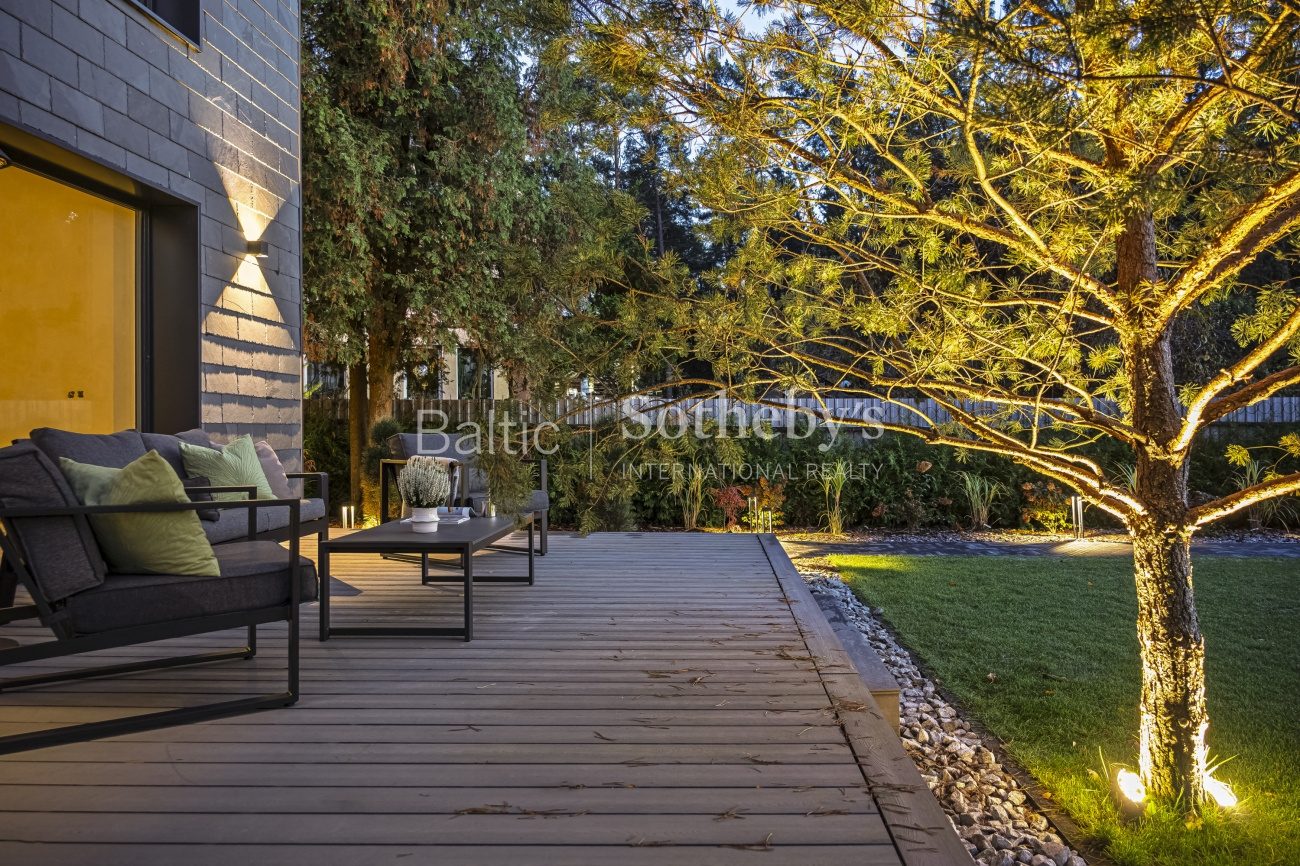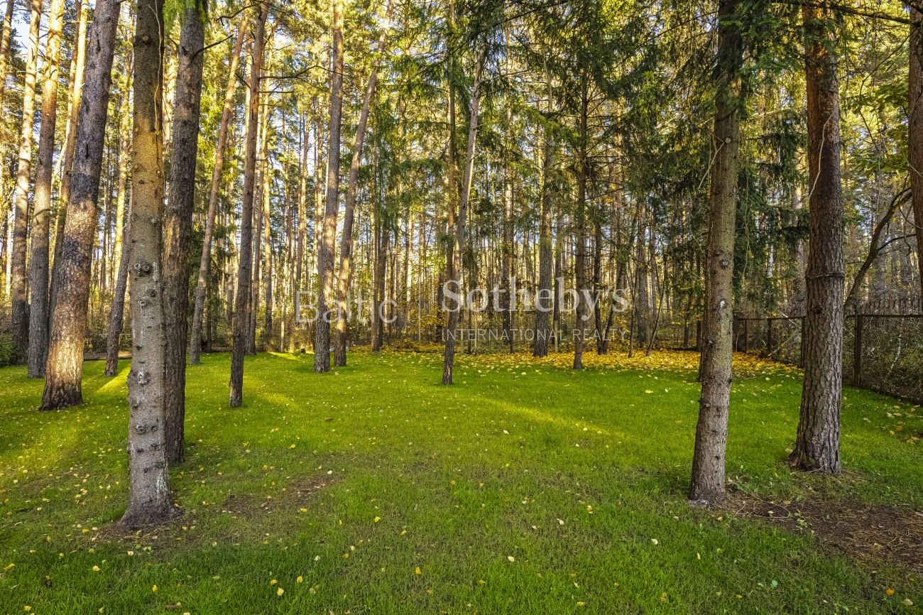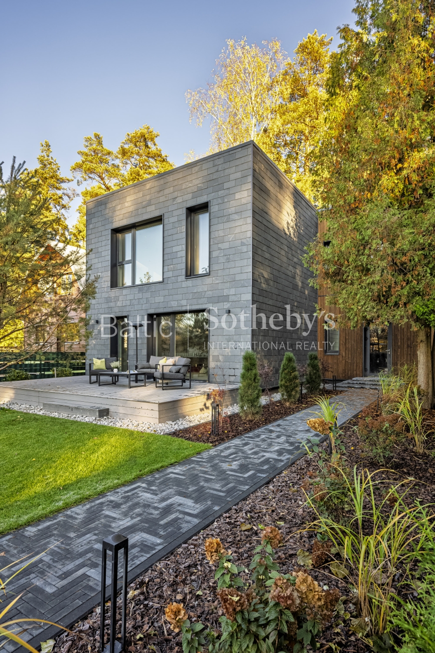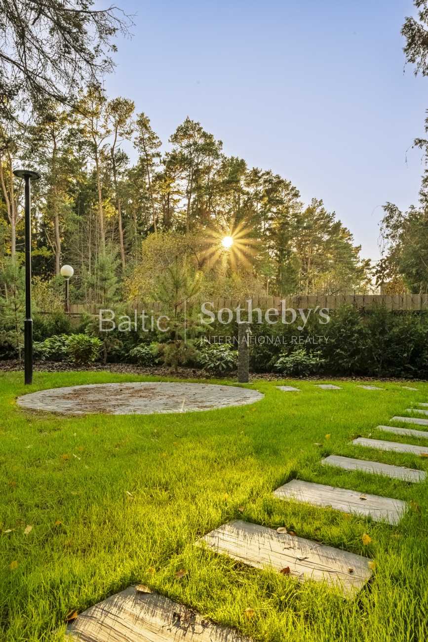 Įsivaizduokite rytą, kai jus pro vitrininius langus pažadina linguojančių pušų vaizdinys ir tylus jų šakų ošimas. Šis naujai įrengtas, dar negyventas namas – tai vieta, kurioje kiekviena diena prasideda su miško artumo pojūčiu. 181 m² dviejų aukštų namas pastatytas 6,67 arų kraštiniame sklype uždaroje bendruomenėje, į kurią patenkama tik per užkardą. Vos įvažiavus Jus pasitinka gamtos glėbys ir saugumo jausmas.