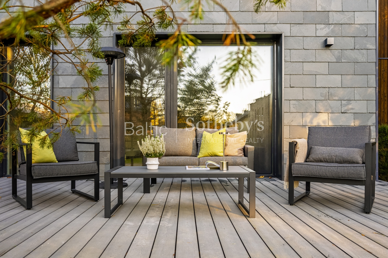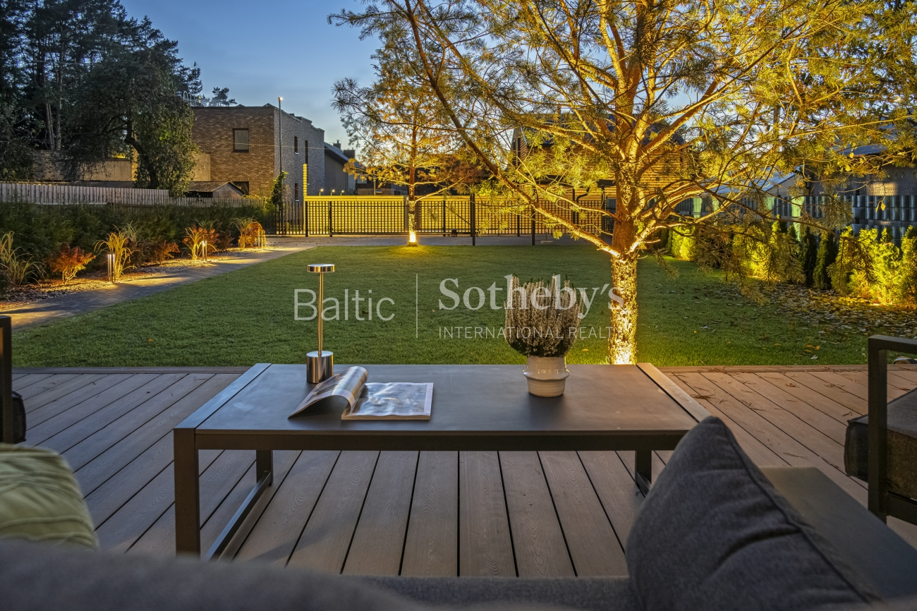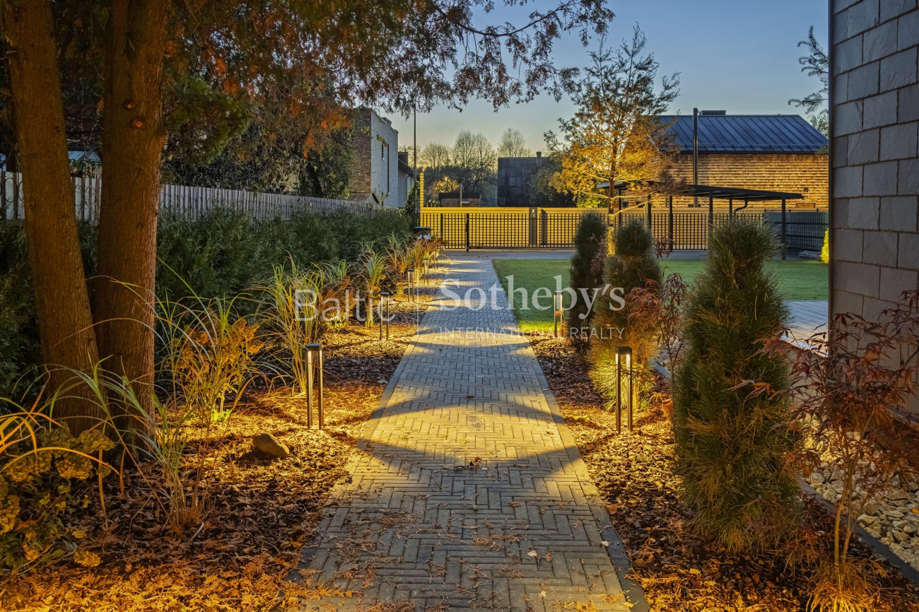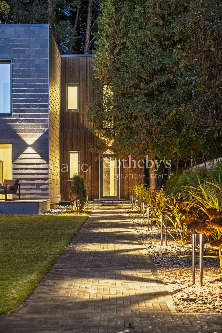 Įsivaizduokite rytą, kai jus pro vitrininius langus pažadina linguojančių pušų vaizdinys ir tylus jų šakų ošimas. Šis naujai įrengtas, dar negyventas namas – tai vieta, kurioje kiekviena diena prasideda su miško artumo pojūčiu. 181 m² dviejų aukštų namas pastatytas 6,67 arų kraštiniame sklype uždaroje bendruomenėje, į kurią patenkama tik per užkardą. Vos įvažiavus Jus pasitinka gamtos glėbys ir saugumo jausmas.