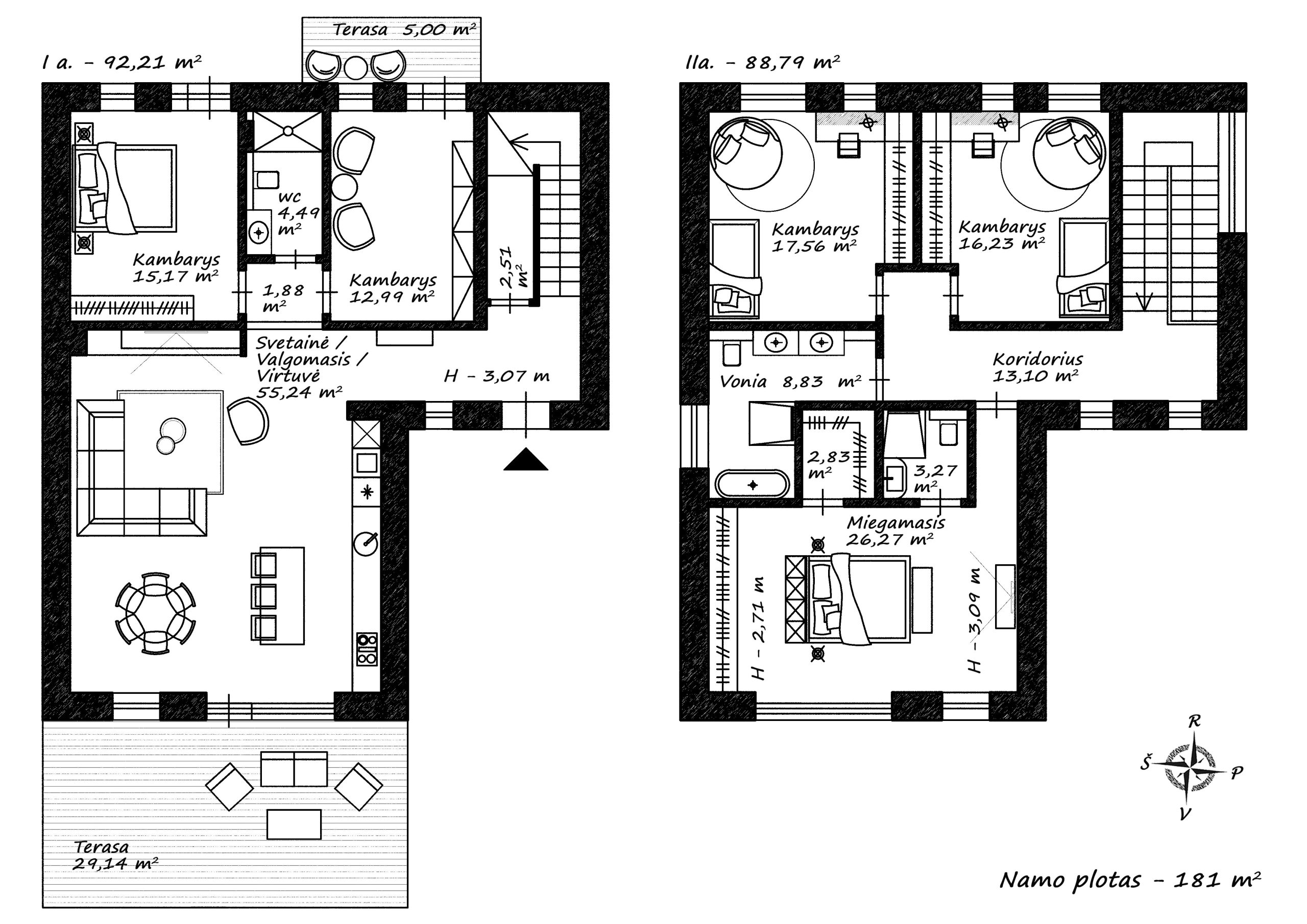 Antrajame aukšte suplanuoti keturi miegamieji ir du vonios kambariai. Pagrindinis miegamasis su drabužine tampa tikra pasakos miške erdve – vieta, kurioje rytą pasitinka žaluma už lango, o vakare užtenka užverti užuolaidas, kad pasinertumėte į tylą ir jaukumą. Švelnios spalvos, dideli langai, 2,80 m siekiančios lubos sukuria erdvės pojūtį ir pripildo kambarį lengvumo. Penki kambariai leidžia gyventojams prisitaikyti prie individualių poreikių – čia galima įrengti ne tik miegamuosius, bet ir du atskirus darbo kabinetus, užtikrinančius patogias sąlygas dirbantiems iš namų.