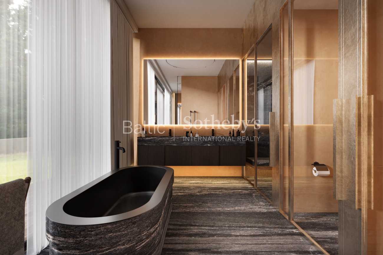 Namą puošia dideli aliuminio profilio vitrininiai langai, aukštos lubos, kurios siekia net 3,20-3,60 m, suteikiančios namams ypatingos erdvės bei šviesos. Kitas privalumas – iš IPE medienos įrengtos lauko terasos, balkonai.