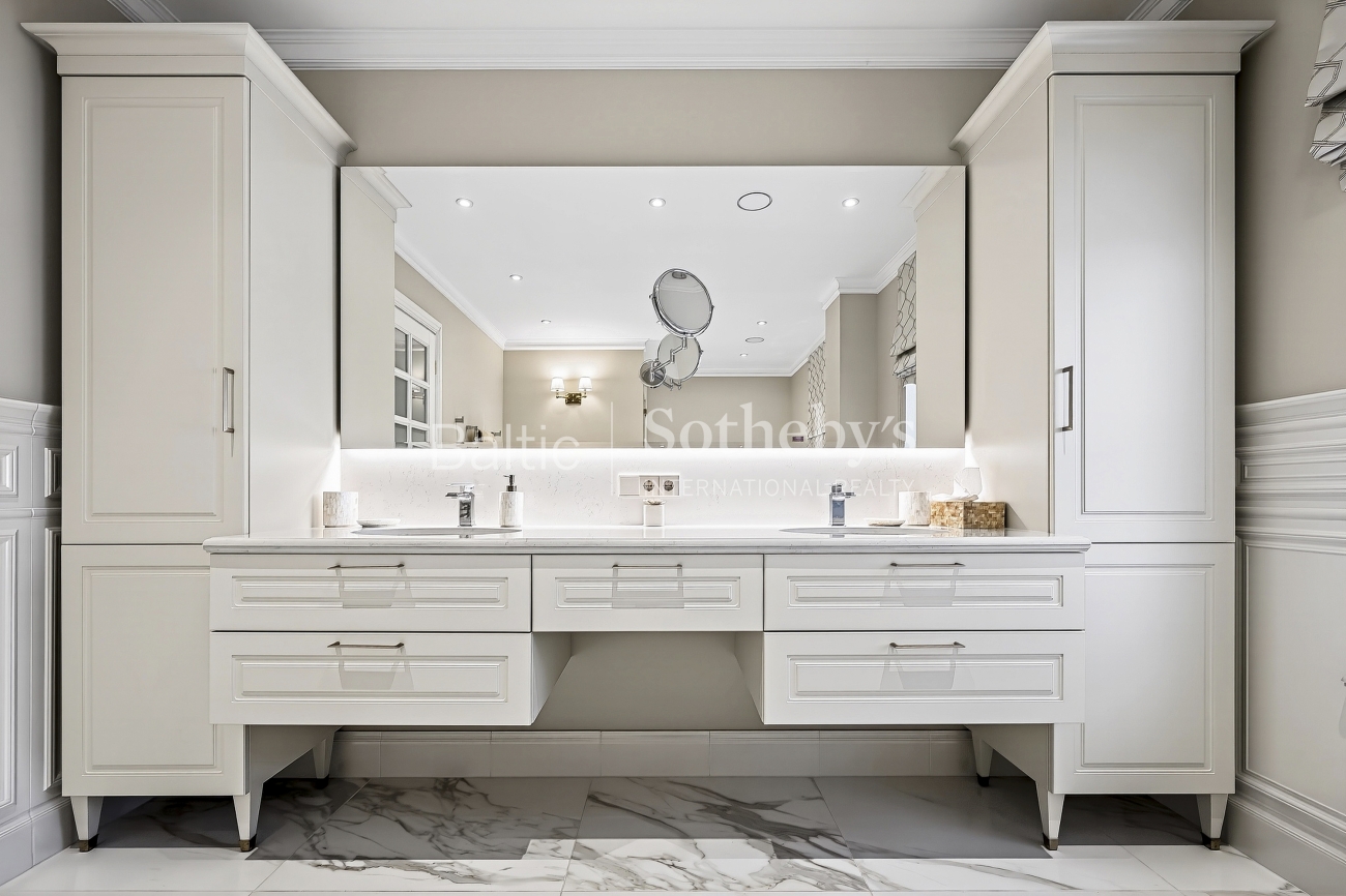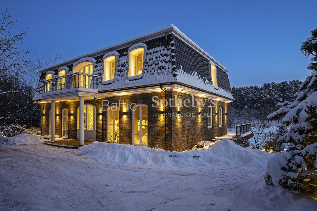 Įspūdingų erdvių namas įsikūręs ramioje Verkių seniūnijos dalyje, Neries upės pakrantėje. Vitrininiai langai orientuoti į upę, todėl namo erdvės nuolat pripildytos natūralios šviesos. Klasikinis, prabangus interjeras harmoningai dera su namo architektūra.
