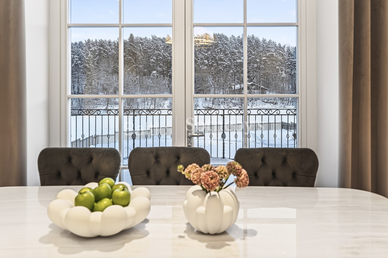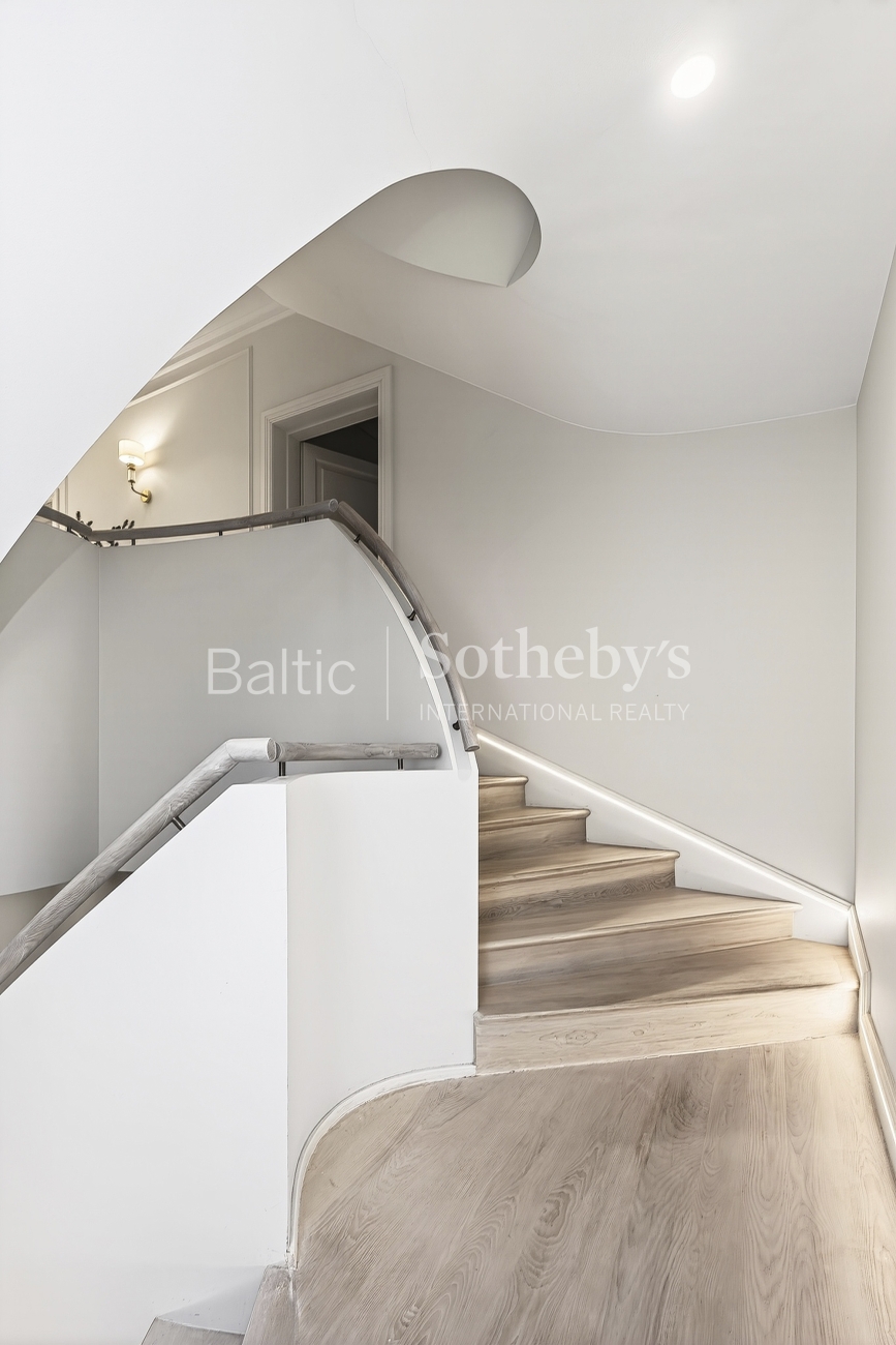 Išskirtinę emociją kuria namo aplinka: erdvi terasa, pasiekiama iš cokolinio aukšto ir Neries upės slėnis, subtiliai sąveikaujantis su klasikine namo architektūra. Šis derinys sukuria elegantišką, rafinuotą ir nepamirštamą gyvenimo erdvę.