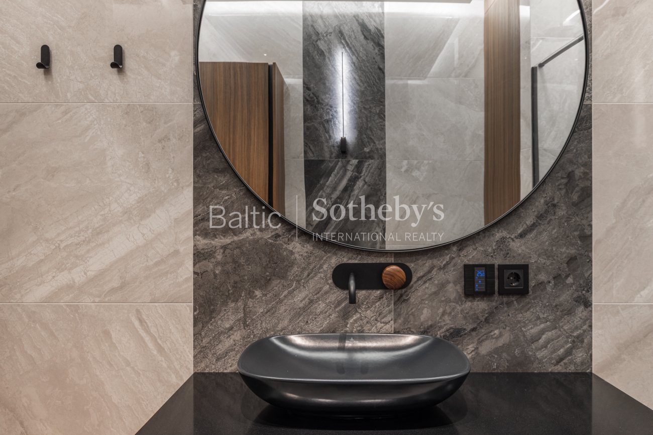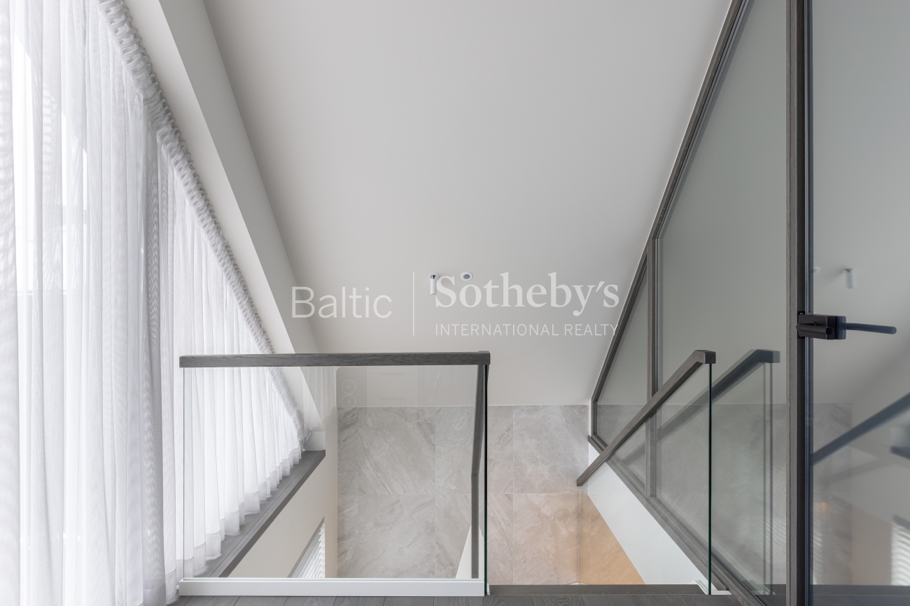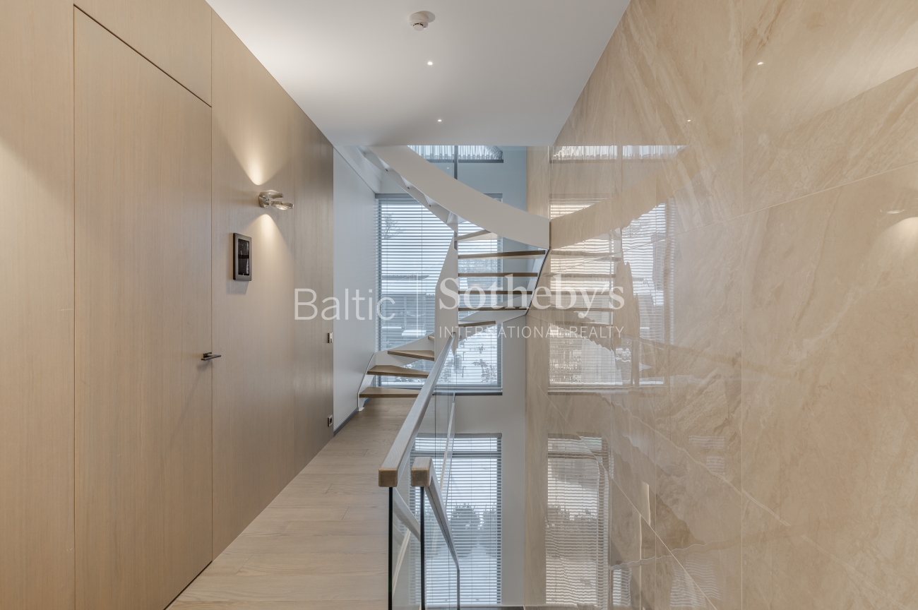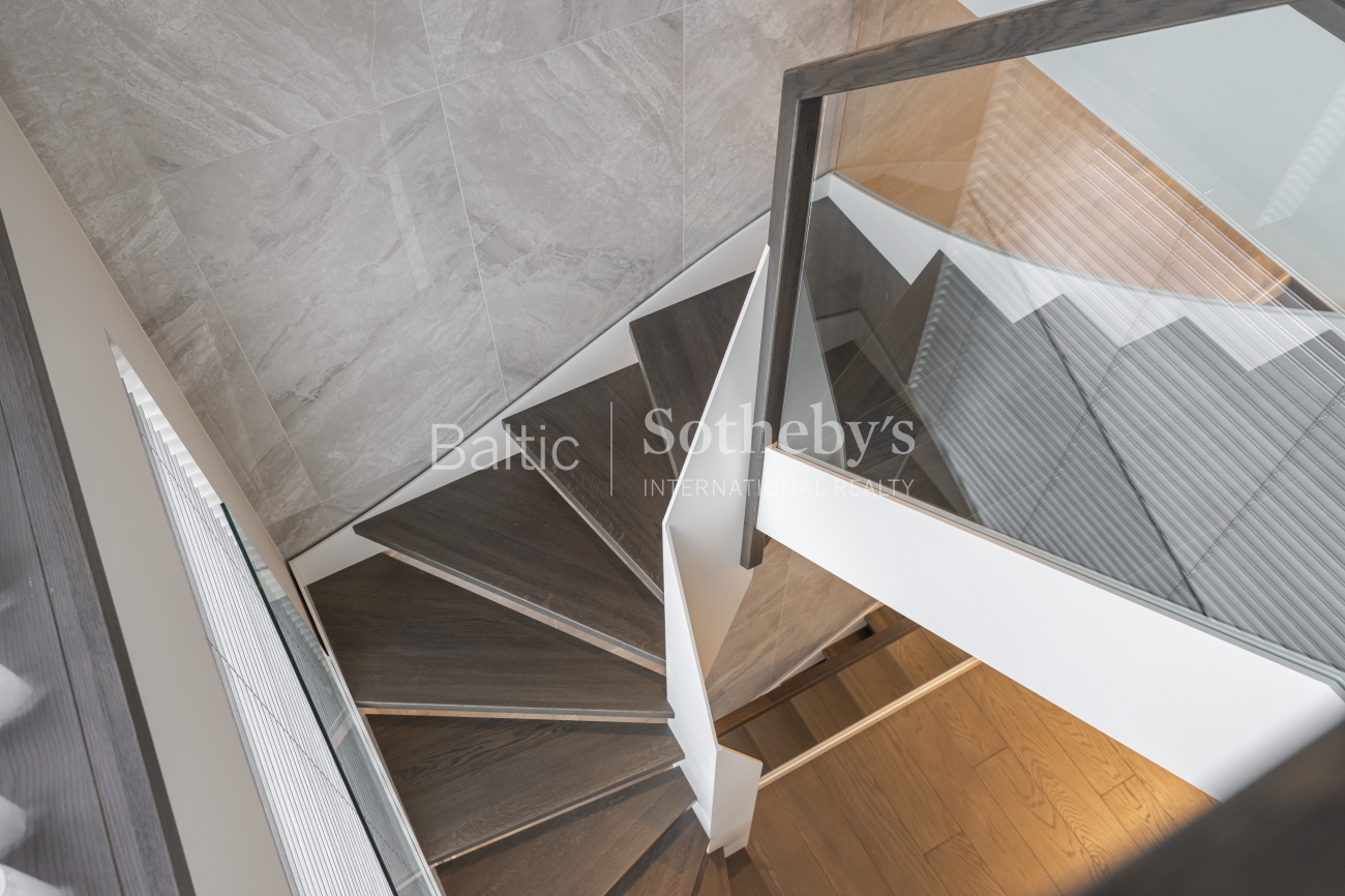 Исключительная архитектура с большими панорамными окнами, гладкими линиями фасада и деревянными элементами передает образ стилизованной старинной виллы, характерной для прибрежной архитектуры региона. Это создает идеальное сочетание с окружающей средой и природой. В строительстве использованы материалы высочайшего класса: монолитный дом с внешними стенами, утепленными слоем ваты толщиной 25 см. Фасад отделан клинкерной плиткой и термически обработанными деревянными панелями из Финляндии. Скатная крыша утеплена 30 см ваты. Окна, произведенные компанией «Rudupis», выполнены из дерева, с тройным стеклопакетом и двойной камерой.