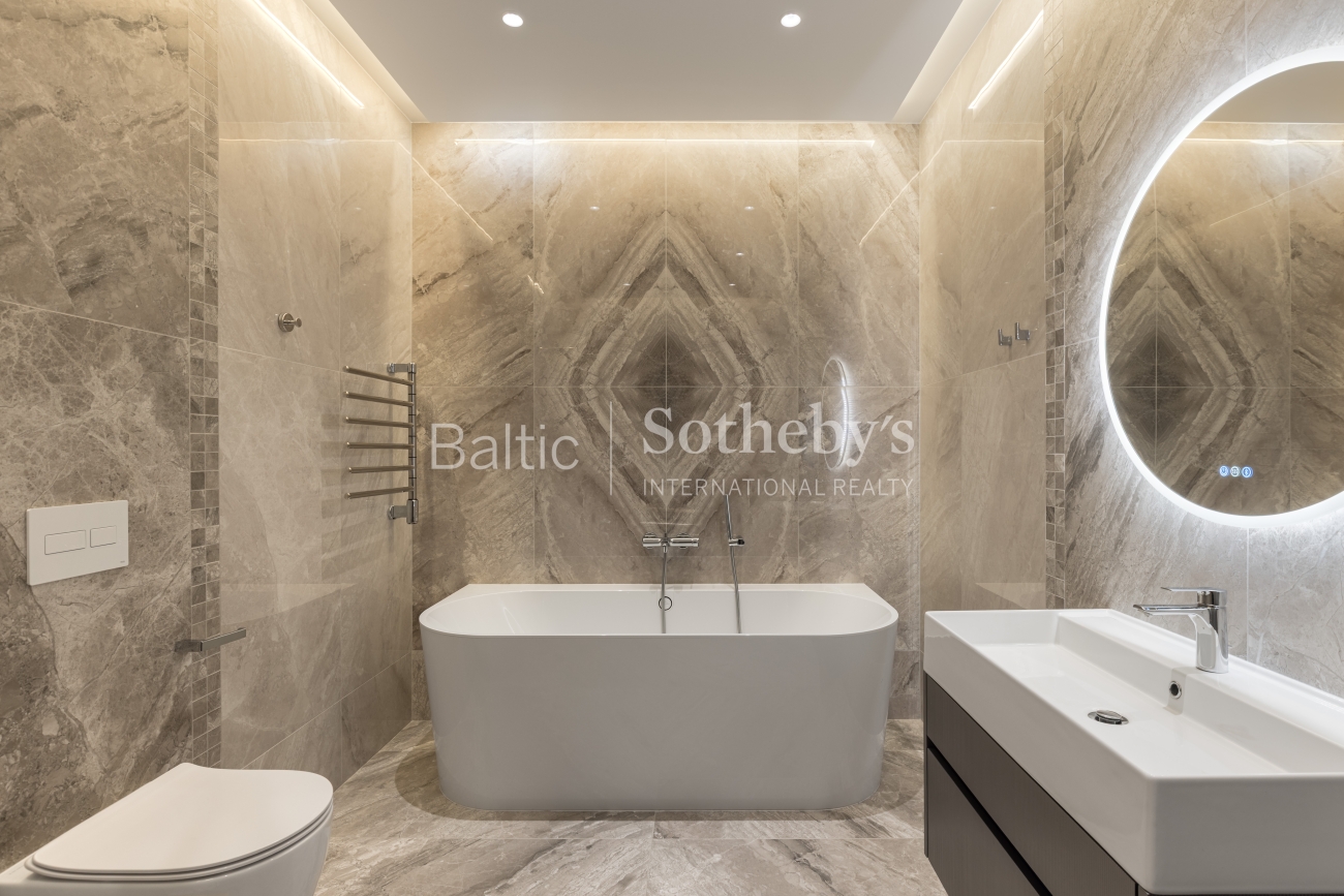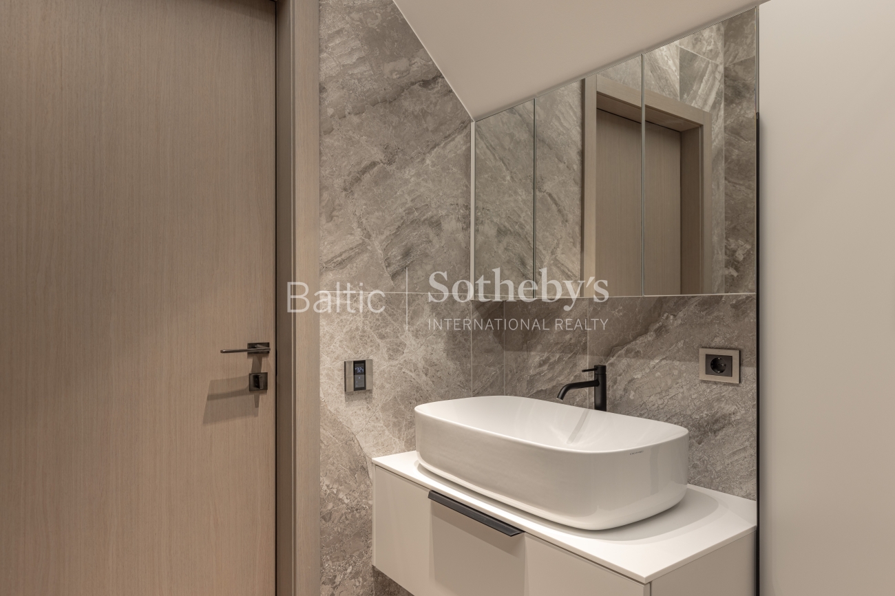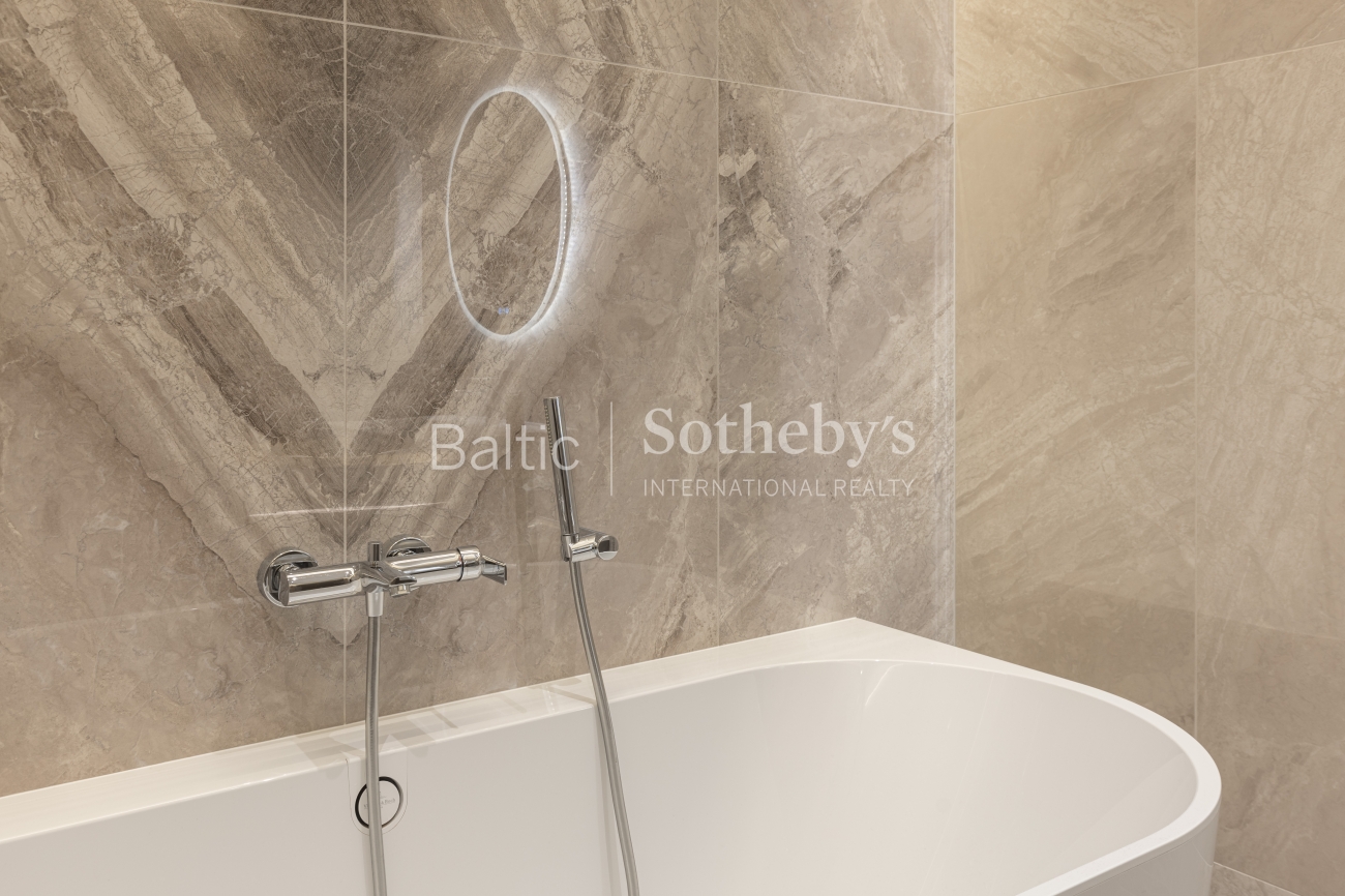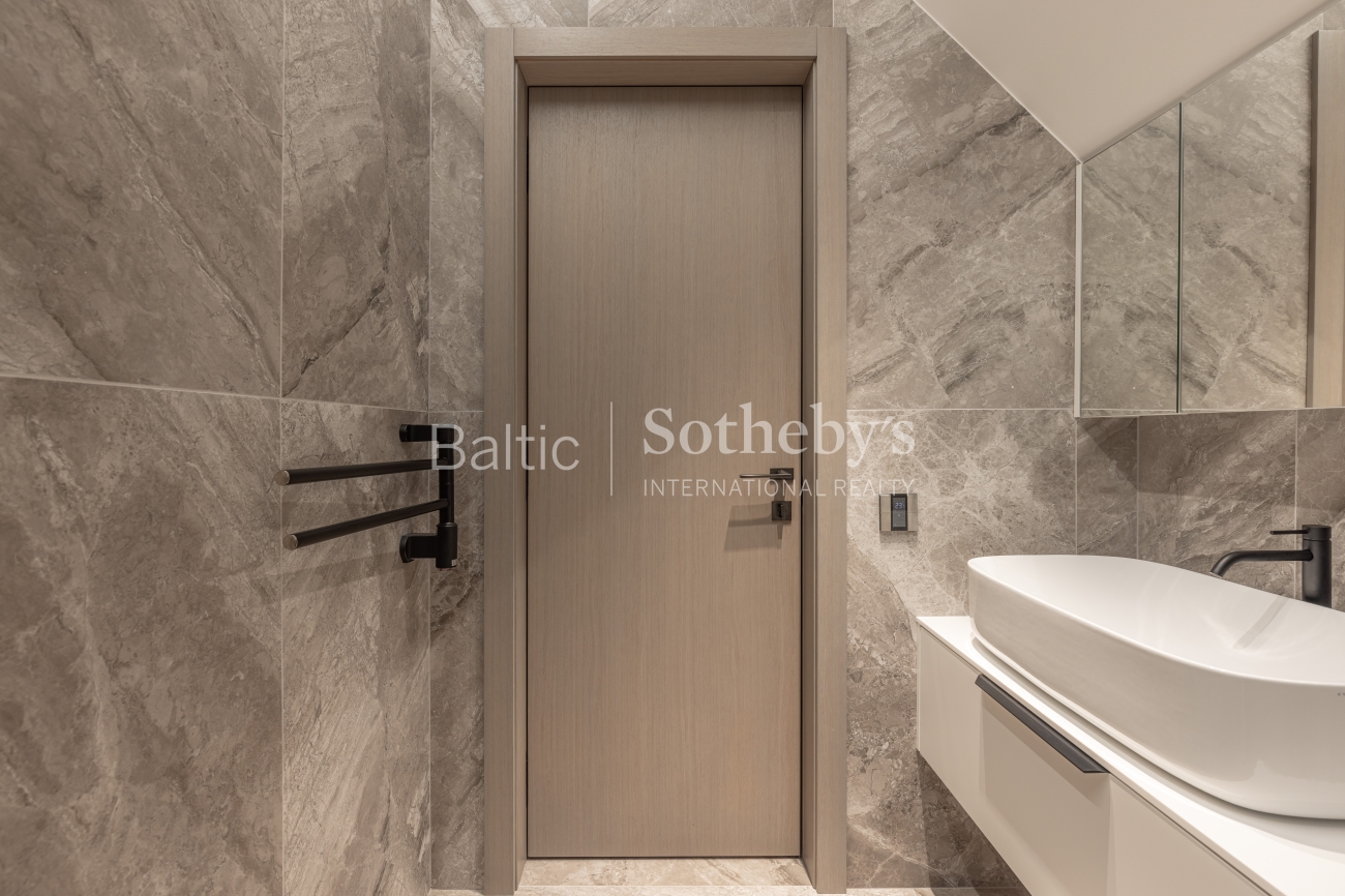 Исключительная архитектура с большими панорамными окнами, гладкими линиями фасада и деревянными элементами передает образ стилизованной старинной виллы, характерной для прибрежной архитектуры региона. Это создает идеальное сочетание с окружающей средой и природой. В строительстве использованы материалы высочайшего класса: монолитный дом с внешними стенами, утепленными слоем ваты толщиной 25 см. Фасад отделан клинкерной плиткой и термически обработанными деревянными панелями из Финляндии. Скатная крыша утеплена 30 см ваты. Окна, произведенные компанией «Rudupis», выполнены из дерева, с тройным стеклопакетом и двойной камерой.
