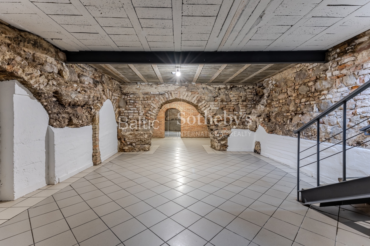 Витрины помещений выходят на улицу Старого города, а возможность разместить вывеску на фасаде обеспечивает видимость вашей идеи, поток прохожих и представительность коммерческой деятельности. Открыв фасадные двери, вы попадаете в зал площадью почти 60 кв. м с универсальной эстетикой белых стен, позволяющей легко адаптировать пространство под разные концепции бизнеса. В подвале демонстрируются фрагменты старой архитектуры — стены из красного кирпича, арки и натуральная каменная фактура, идеально подходящие для гастрономических, творческих или художественных впечатлений. Это пространство со своим ритмом и ощущением истории, где выразительная архитектура становится частью восприятия людей, находящихся внутри.