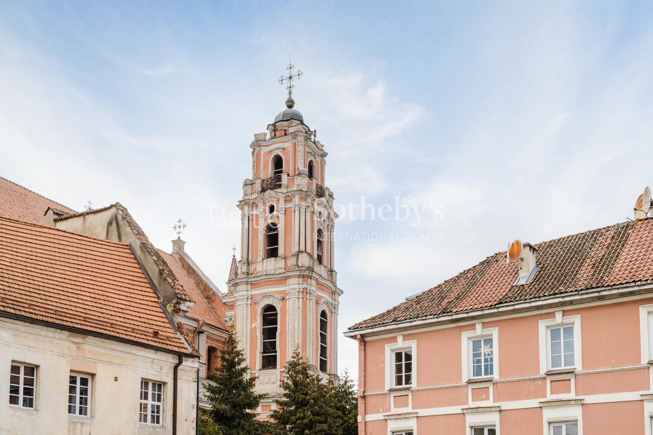 Помещения продаются в ценном историческом здании — история этих дворцов начинается в XVII веке; в 1623 году в Литовской метрике они упоминаются как важный городской жилой комплекс. На протяжении столетий они принадлежали различным поколениям горожан и аристократов, а сохранившиеся архитектурные элементы свидетельствуют о долгой истории здания, отмеченной культурными переменами. Слои архитектуры, дошедшие до наших дней, позволяют почувствовать течение времени и уникальный дух этого места. Такое наследие придаёт помещениям не только архитектурную самобытность, но и ощущение долговечной ценности, столь высоко ценимой в Старом городе Вильнюса.