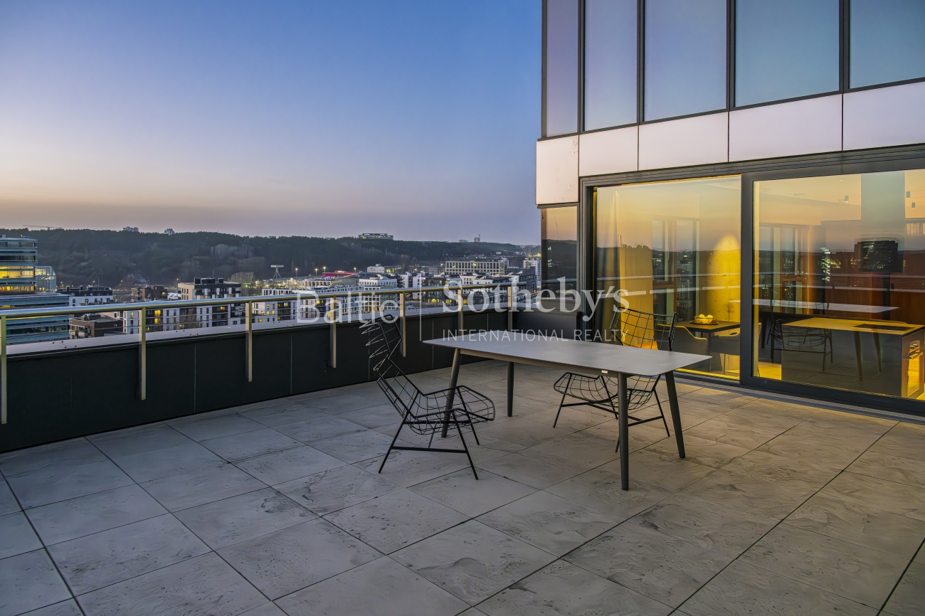 Imagine living in a place where each day is surrounded by breathtaking panoramic views of Vilnius. In the "Tower" project, we offer you an exclusive opportunity to buy a 100 square meter apartment with an impressive 40 sq.m terrace. As you step through the door, an incomparably spacious environment opens up – high ceilings and floor-to-ceiling showcase windows allow you to enjoy a wide city panorama.