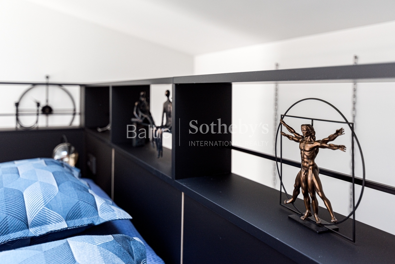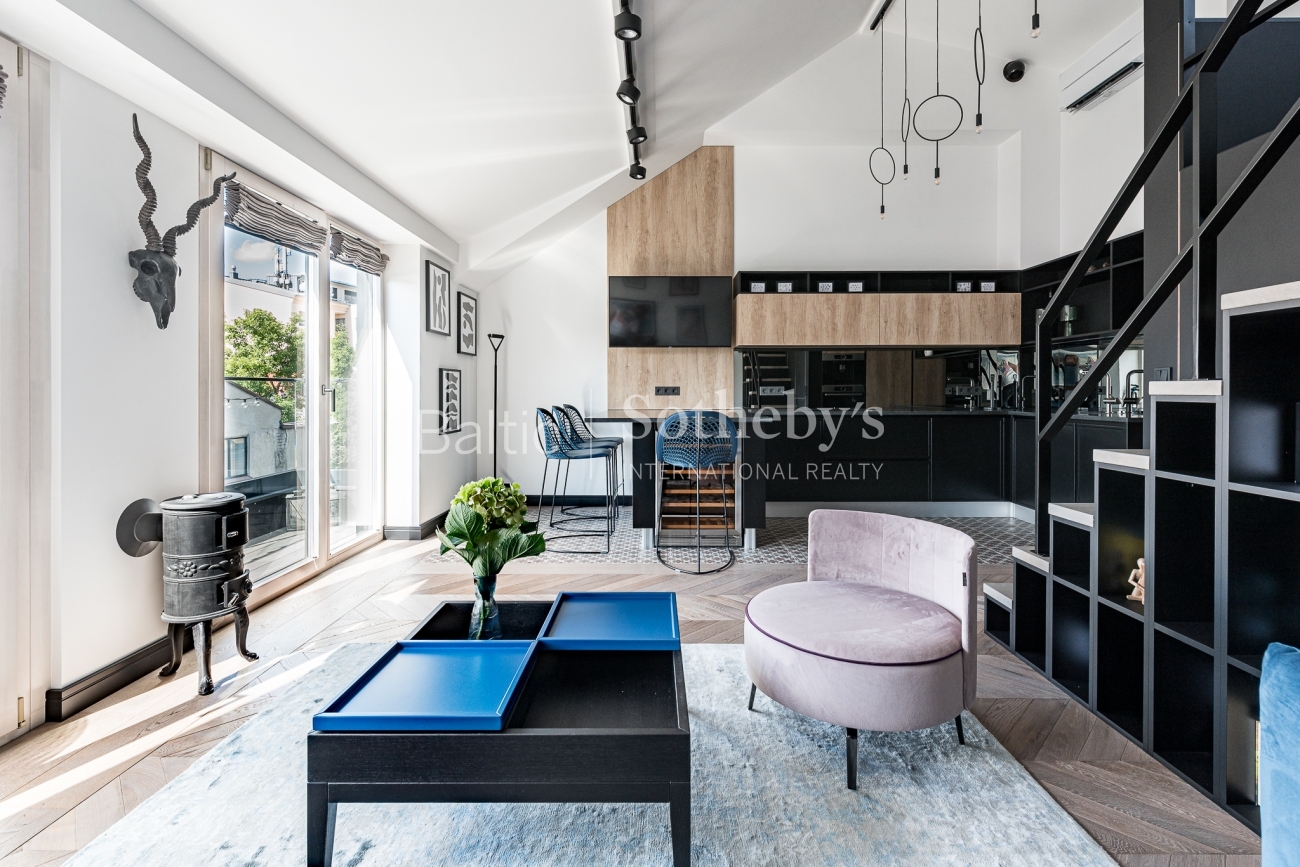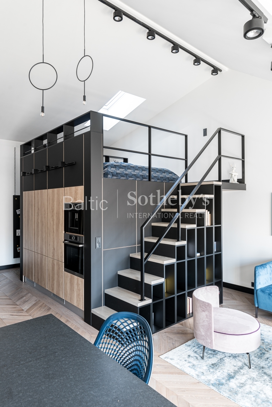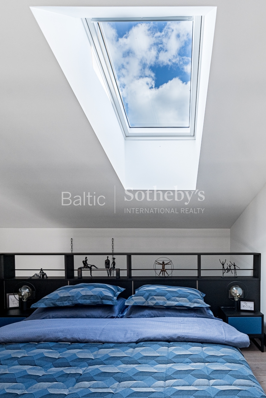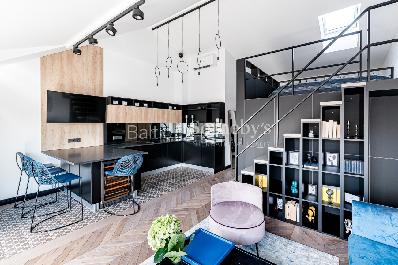 Дизайнер проживающая в столице Австрии Вене, в сердце Вильнюса создала дом, радующий своей функциональностью и чарующий качеством. В Старом городе, на последнем этаже дома 2018 года строительства дизайнер спроектировала большую кухню, полноценную зону отдыха гостиной, на антресоли – спальню с чердачным окном, из которого, лежа в кровати, можно любоваться на звезды. В прихожей, сто́ит только легко надавить на одну панель, открывается просторная и удобная гардеробная, а другая аналогичная спроектирована со стороны гостиной.