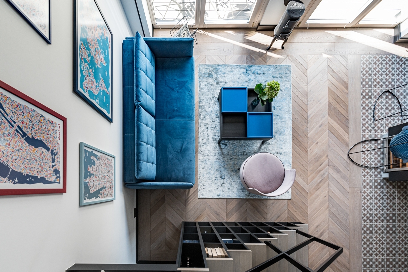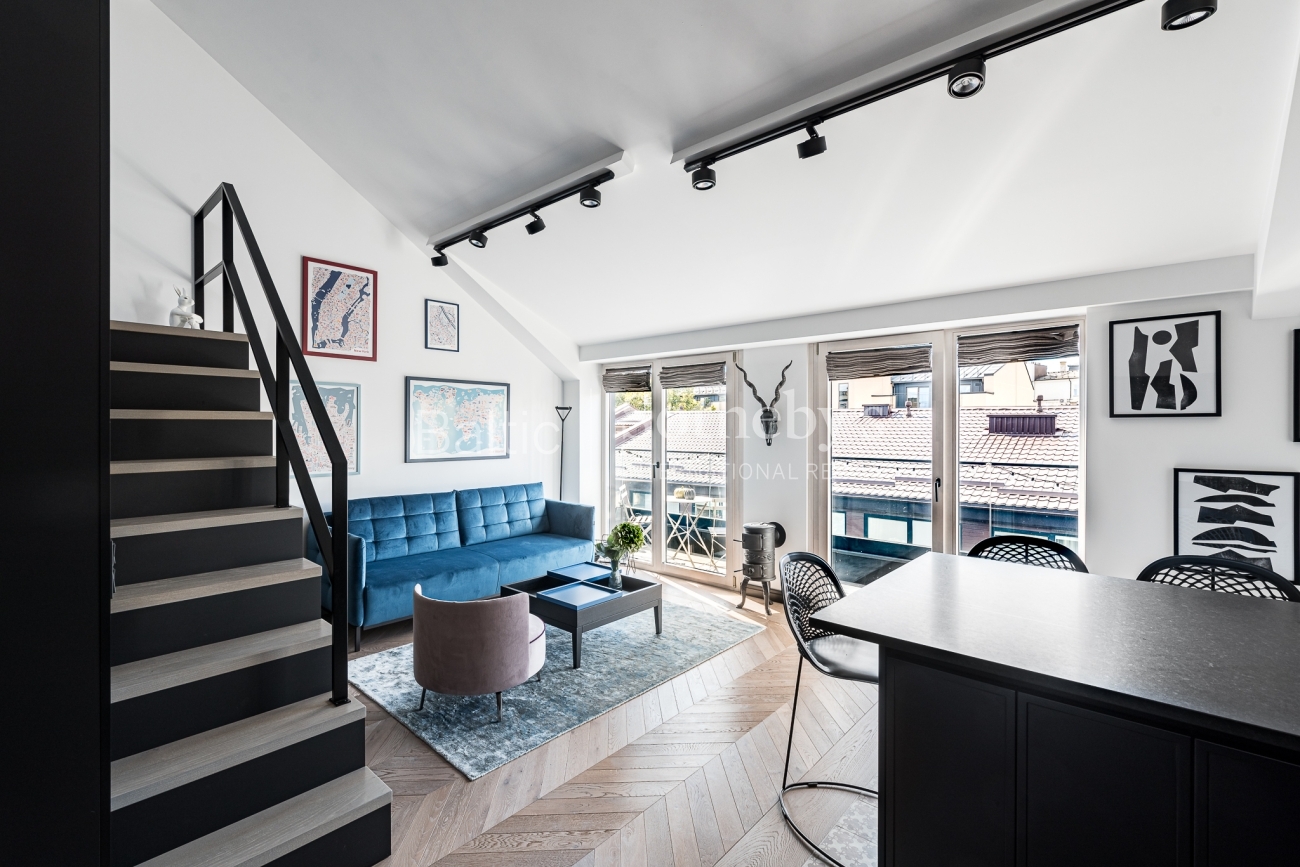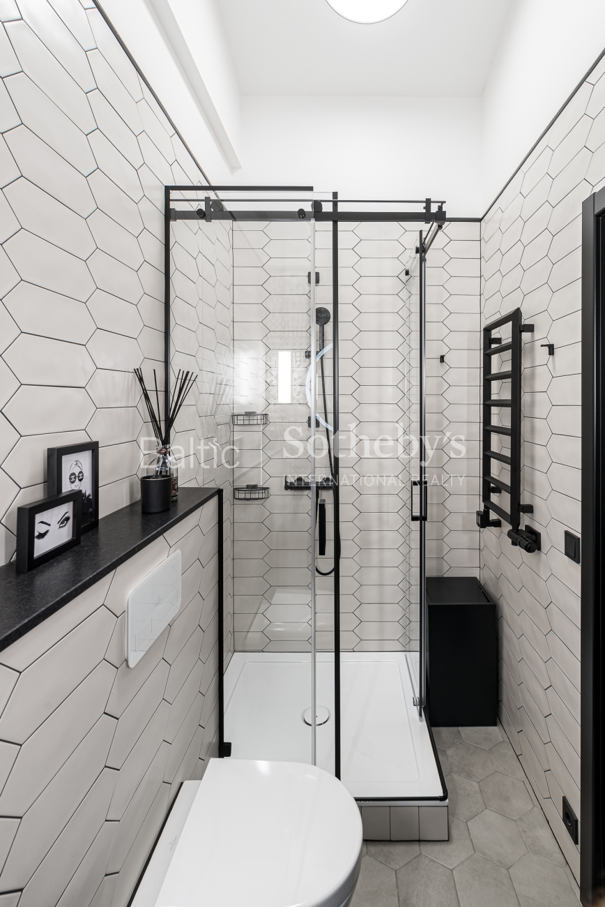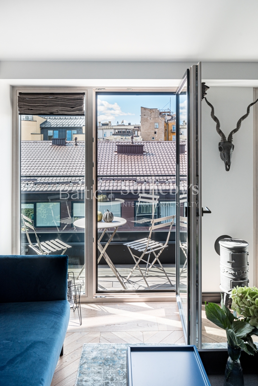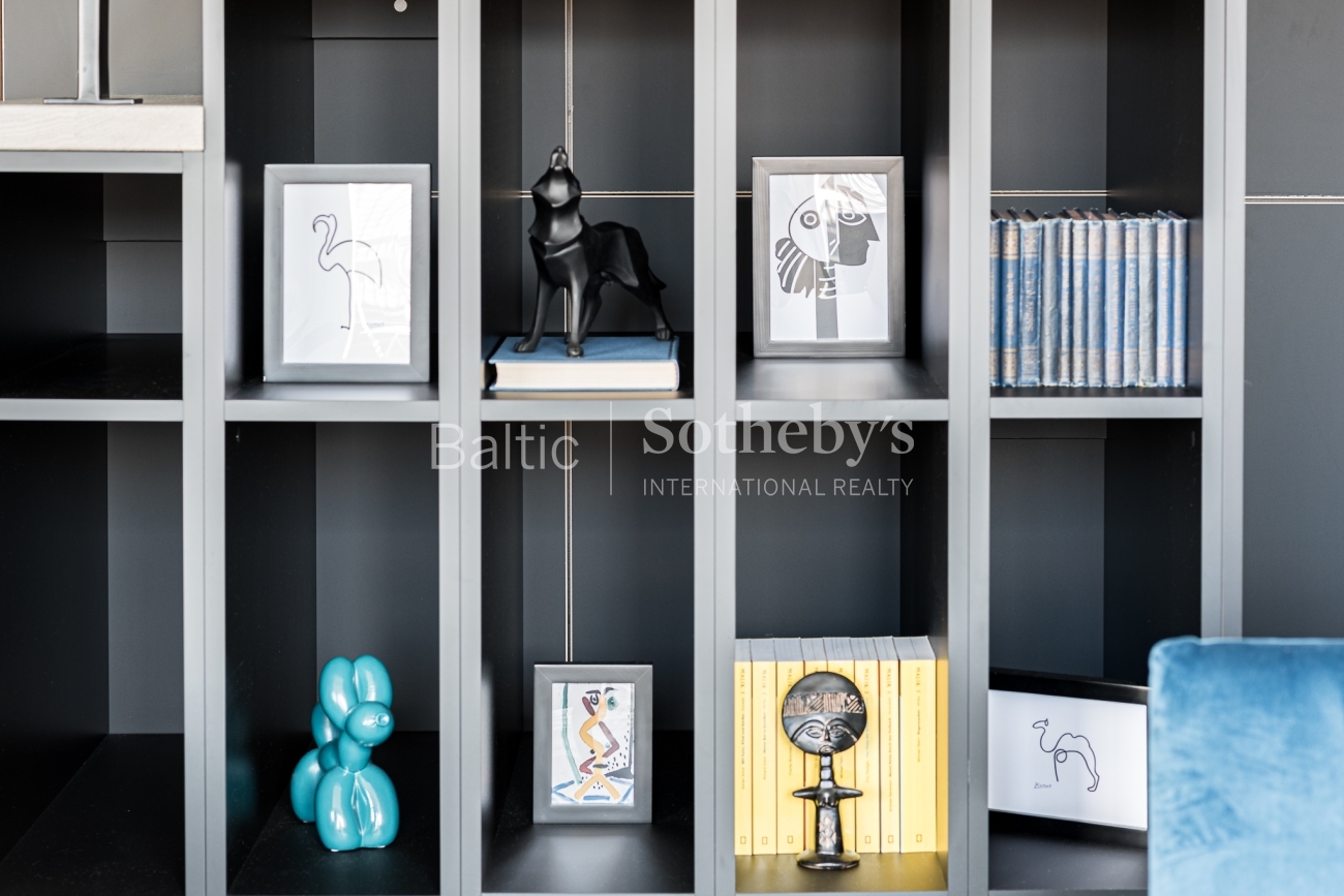 Дизайнер проживающая в столице Австрии Вене, в сердце Вильнюса создала дом, радующий своей функциональностью и чарующий качеством. В Старом городе, на последнем этаже дома 2018 года строительства дизайнер спроектировала большую кухню, полноценную зону отдыха гостиной, на антресоли – спальню с чердачным окном, из которого, лежа в кровати, можно любоваться на звезды. В прихожей, сто́ит только легко надавить на одну панель, открывается просторная и удобная гардеробная, а другая аналогичная спроектирована со стороны гостиной.