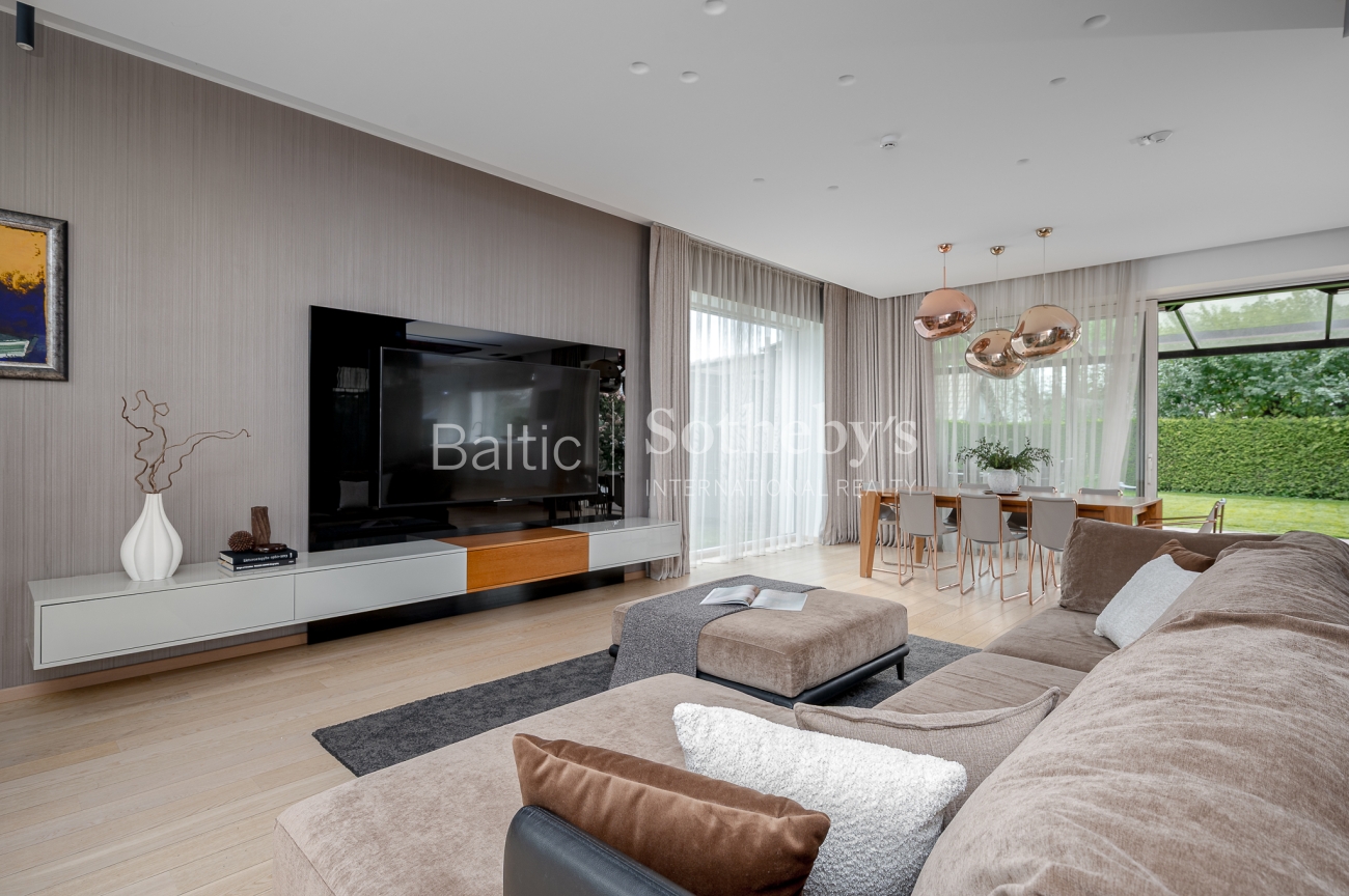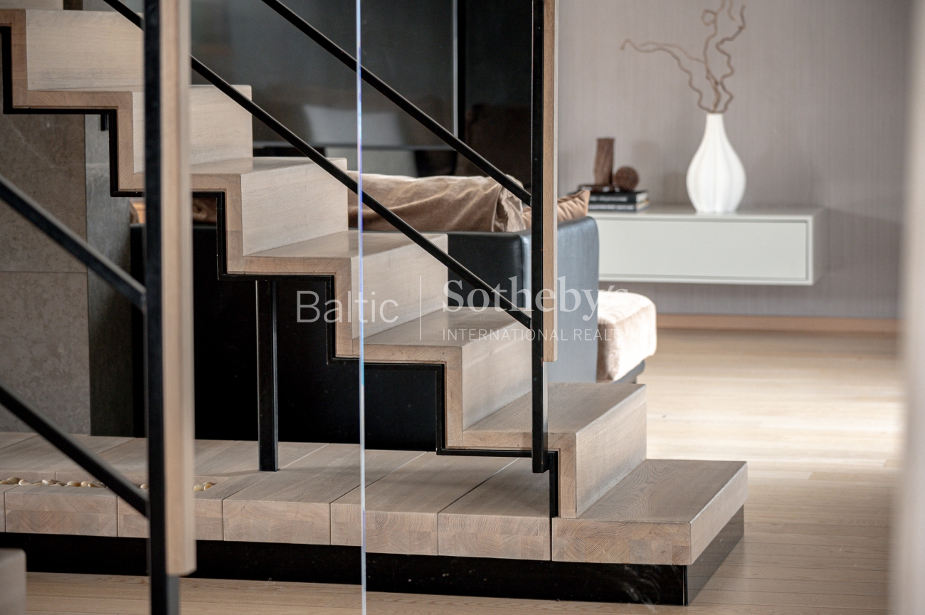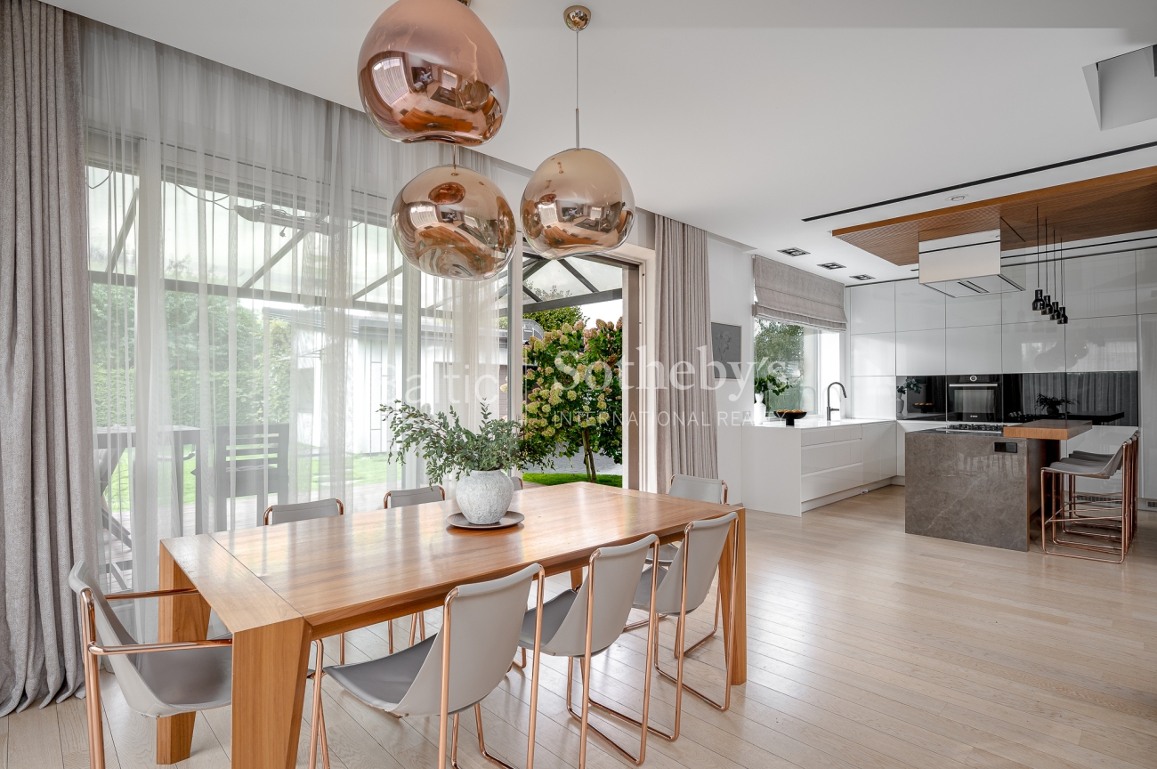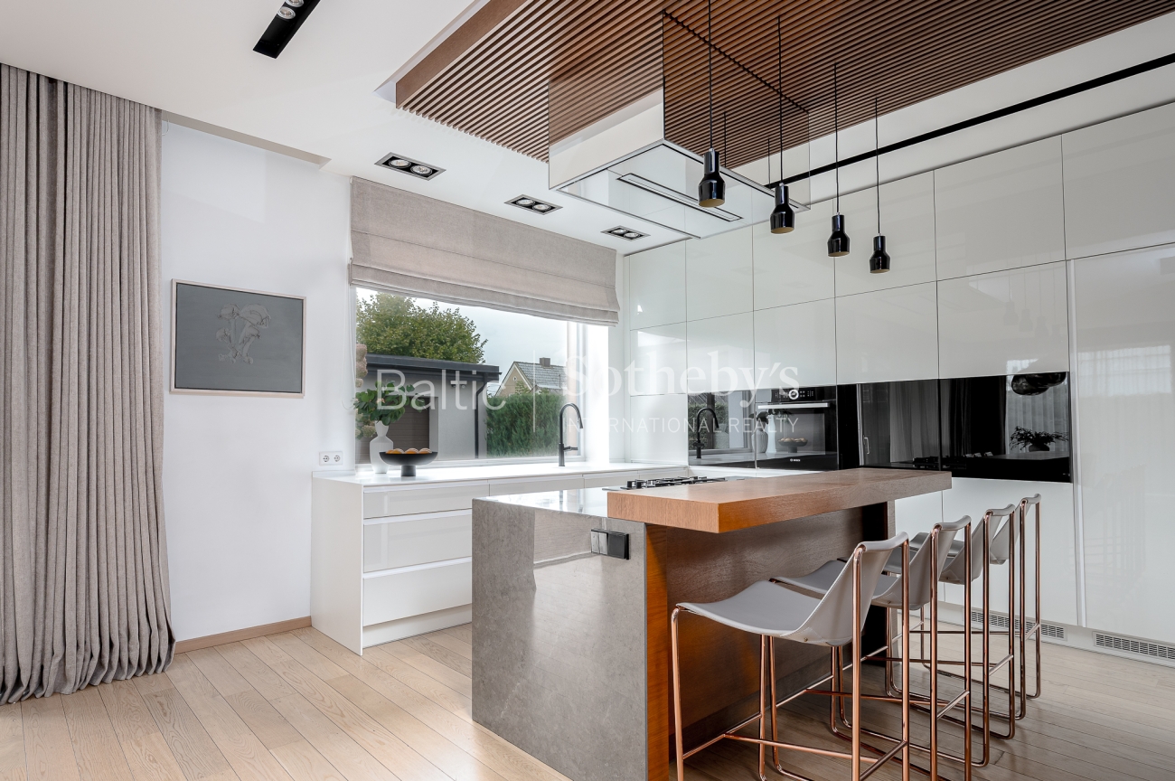 Дом выделяется высококачественными материалами и тщательно продуманной планировкой. Внутри — дубовый паркет, лестницы и двери из массива дерева, каменные столешницы, бытовая техника и инженерные системы премиум-класса. Для максимального комфорта установлены газовое напольное отопление, система кондиционирования воздуха, рекуперации и центральный пылесос.