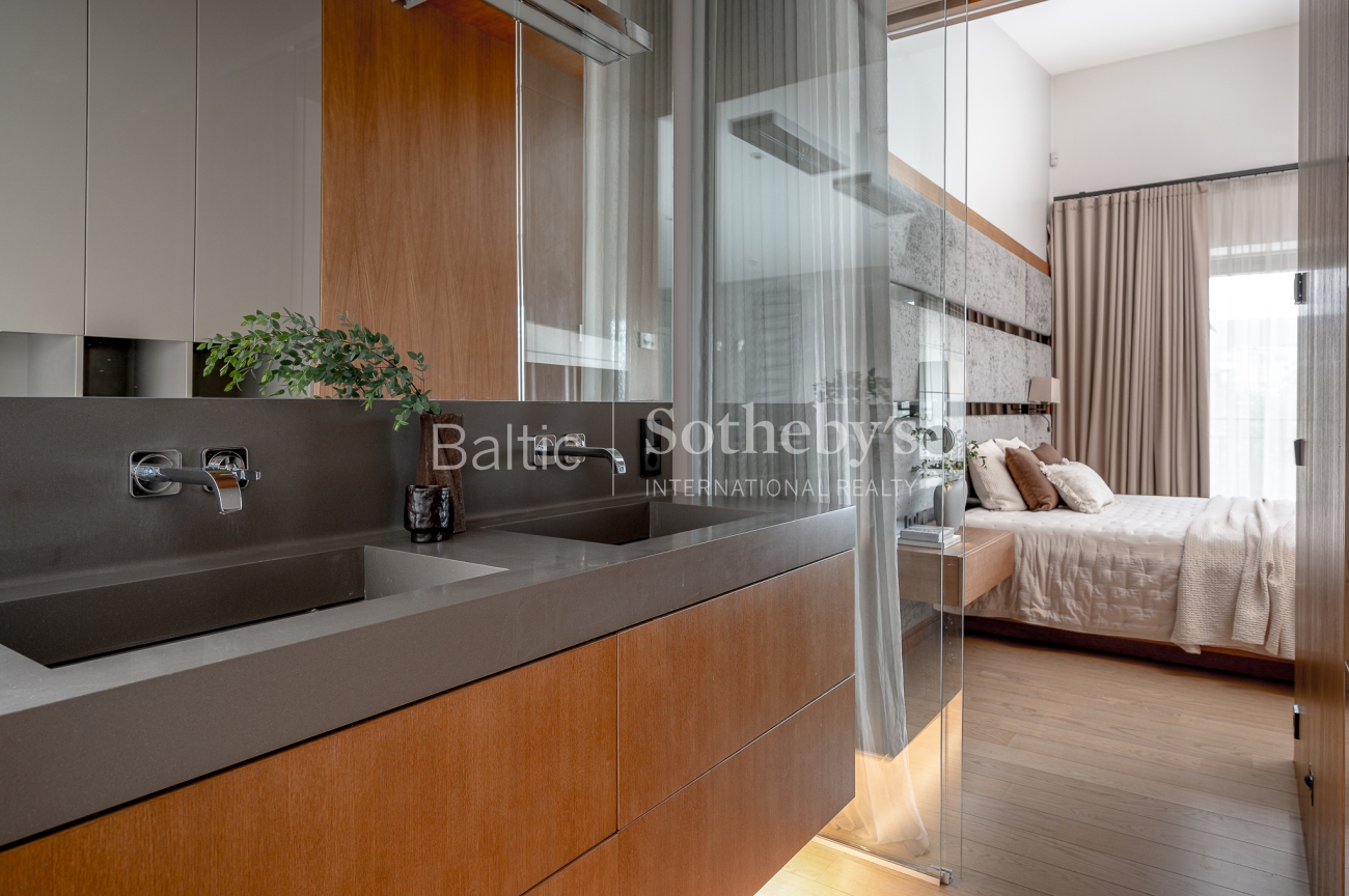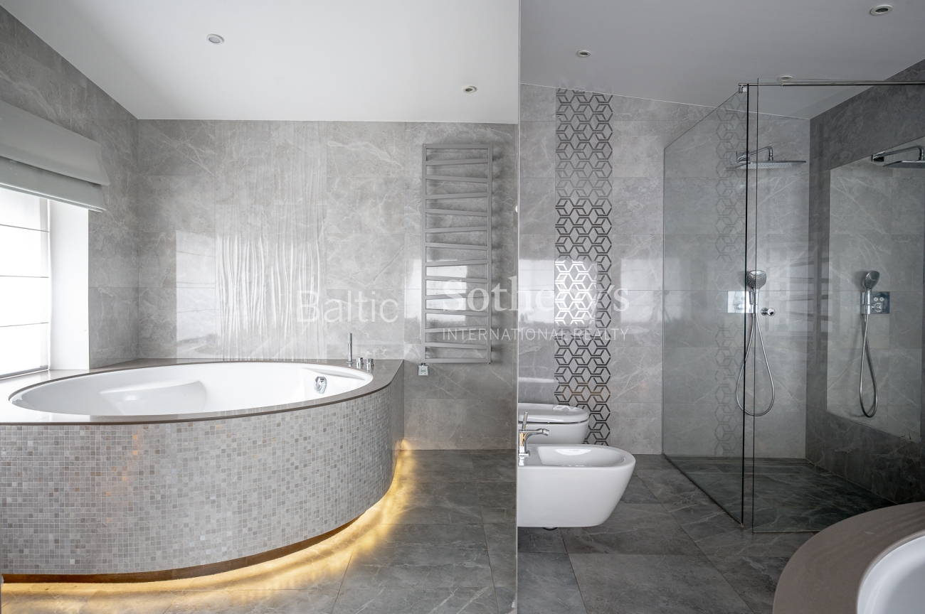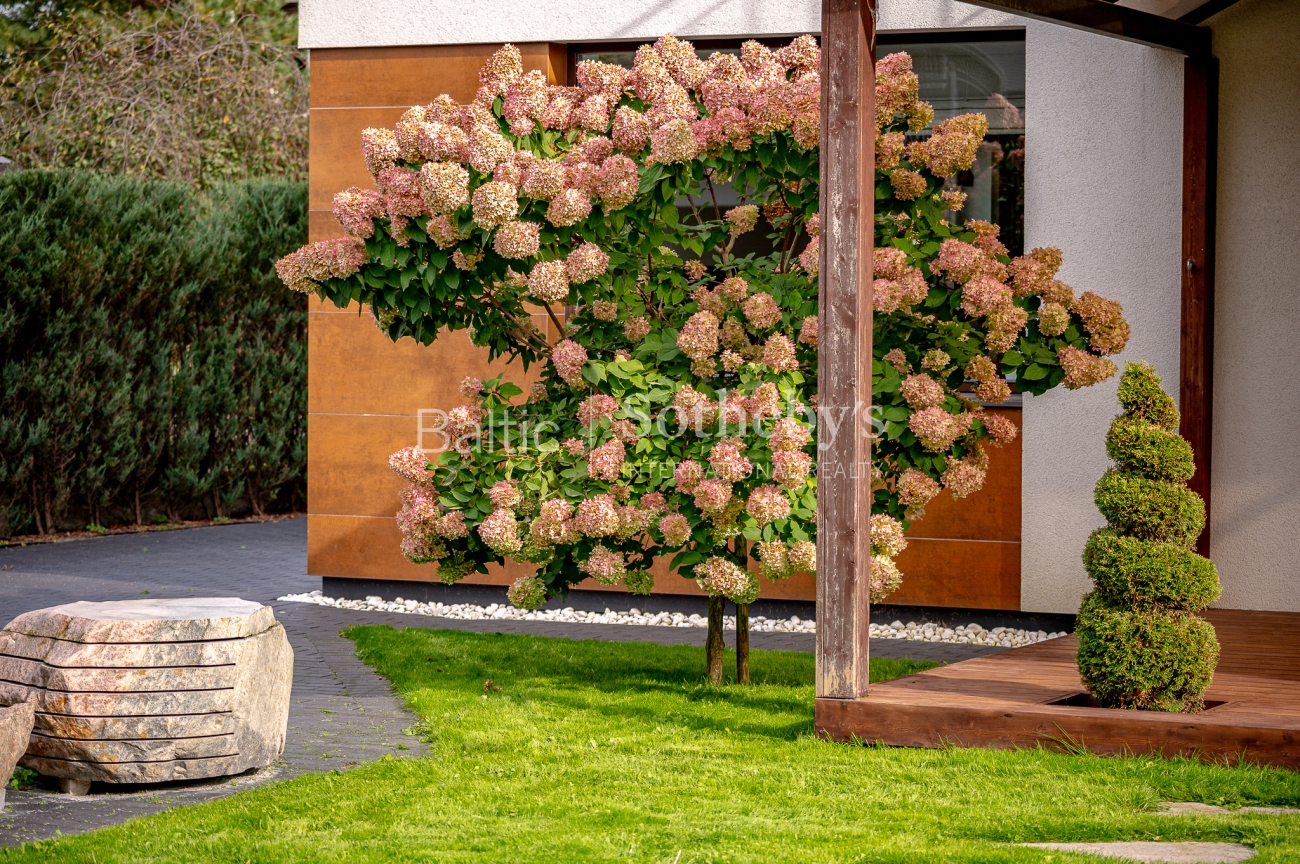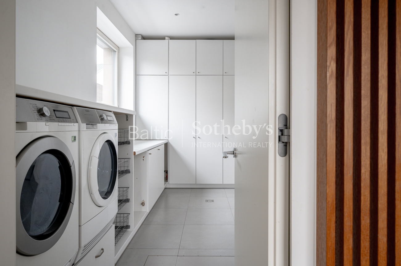 Дом выделяется высококачественными материалами и тщательно продуманной планировкой. Внутри — дубовый паркет, лестницы и двери из массива дерева, каменные столешницы, бытовая техника и инженерные системы премиум-класса. Для максимального комфорта установлены газовое напольное отопление, система кондиционирования воздуха, рекуперации и центральный пылесос.